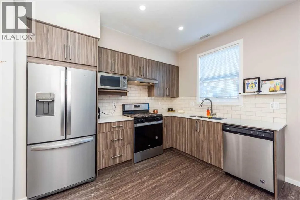 Welcome to the stylish 2-bedroom, 2.5-bath multilevel townhouse in the Jayman âGraniteâ community of Redstone, Calgary NE! This modern, open-concept residence boasts bright, airy living spaces, an efficient layout, and smart design elements throughout.Upstairs youâll find two primary suites, each with its own 4-piece ensuite, and a dedicated laundry area for added convenience. The main levelâs chef-inspired kitchen features sleek slab-style cabinetry, quartz countertops, stainless-steel appliances, and a seamless flow into the dining and living areas â perfect for entertaining or relaxing.Step out onto your private balcony and enjoy views of the communityâs landscaped greenspace. Right in front of the unit, youâll find a kidsâ playground, park space, and convenient visitor parking directly at your doorstep, making it ideal for families and guests alike.The complex offers a generous 20,000 sq ft greenspace, playground, BBQ area, and pergola for resident enjoyment. With an attached garage, private entrance, and location offering quick access to Stoney Trail, Métis Trail, Deerfoot Trail, as well as proximity to CrossIron Mills, Costco, the airport, and future LRT expansion â this home combines comfort, convenience, and value in one of Calgaryâs most desirable and growing communities.Donât miss this opportunity for lock-and-key living in a well-appointed, move-in ready property. (id:27476)