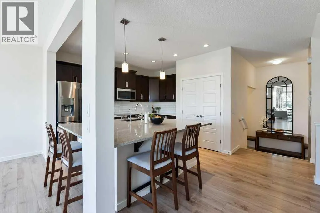Exceptional former Jayman Show Home BACKING onto tranquil GREENSPACE with no rear neighbors. In the highly sought-after LAKE COMMUNITY of Auburn Bay! Just a short walk to schools, parks, and year-round lake activities. Wall of Windows flood interior with natural light. Open Plan features a chef-inspired Kitchen with a massive island, stainless steel appliances, and a spacious pantry. The adjacent Great Room offers a cozy linear fireplace and serene views, while the Dining area provides seamless access to the deck for easy BBQing and entertaining. Stunning custom window coverings elevate this space. A discreet Powder Room completes the main level. Upstairs, the Bonus Room is perfect for relaxing with a book, watching TV, or playing games. The Primary Bedroom is a peaceful retreat overlooking the greenbelt, complete with a luxurious Ensuite featuring dual sinks, an oversized tiled shower, and a generous walk-in closet. Two additional Bedrooms and a conveniently located Laundry room round out the upper level. The fully developed Basement offers a versatile Office or Guest bedroom, a full Bathroom, and a Media/Rec Room with a Wet Bar. NUMEROUS notable upgrades include: central air conditioning, HRV system with high-efficiency furnace, On-Demand hot water, a backwater preventer for reduced insurance costs, Rough In for Radon + Central Vac, reverse osmosis water filtration, ceiling speakers, lots of built in garage storage , security system, and wall-mounted TVs. The professionally landscaped, sunny, SOUTH-WEST FACING backyard features a deck, gardens, and an automatic sprinkler system, and backs onto a scenic pathway system with access to an off-leash dog park. Enjoy all the fantastic amenities Auburn Bay has to offer, including fishing, boating, tennis, pickleball, skating, hockey, a beach splash park, paddleboarding, and more â PLUS close proximity to shopping, restaurants, and community programs. This is a rare opportunity to own a beautifully upgraded home in one of Calgaryâs most vibrant and family-friendly neighborhoods. Don't Miss it! (id:27476)