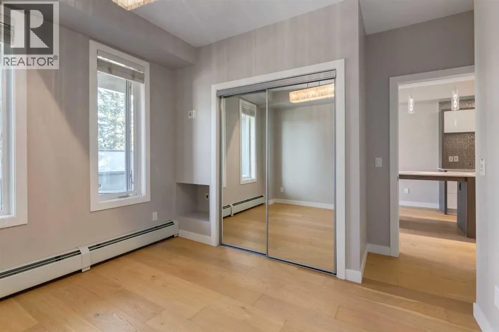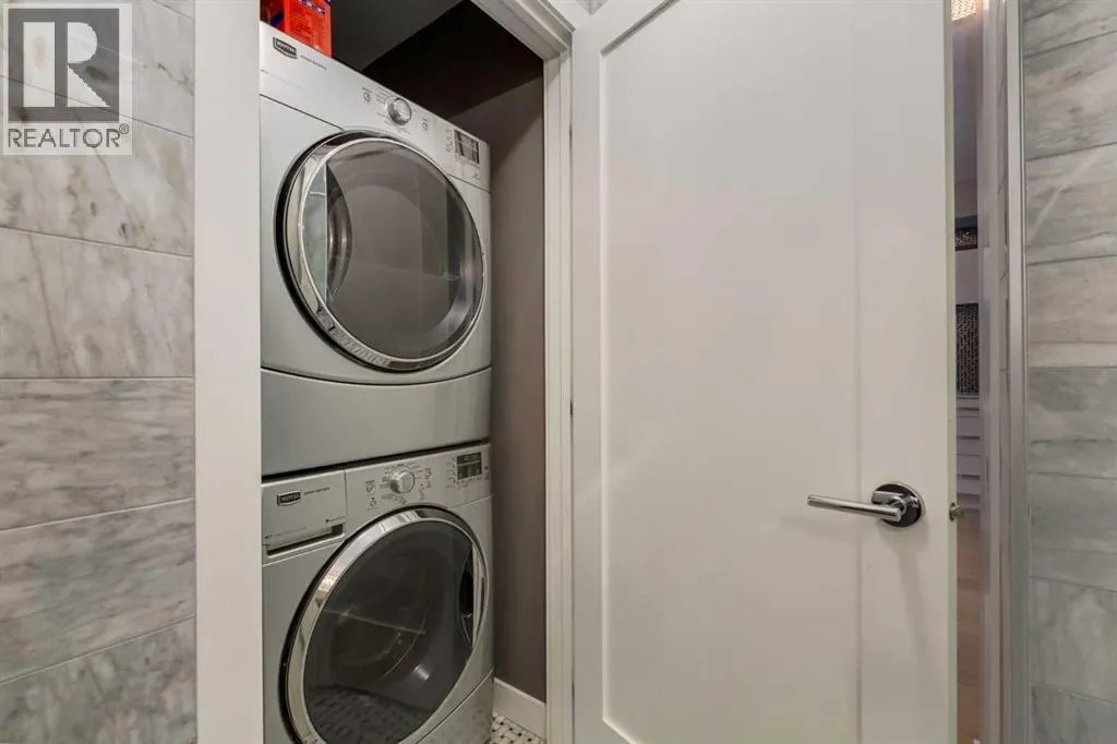 Welcome to The Savoy located in one of Calgaryâs most walkable, vibrant inner-city communities! This bright and stylish 1-bedroom, 1-bathroom condo brings together upscale finishes, smart layout, and unbeatable convenience all in one perfect package.Step inside and fall in love with the open-concept living space, soaring ceilings, and huge windows that flood the home with natural light. The chef-inspired kitchen features sleek quartz countertops, high-end stainless steel appliances, a spacious island, and plenty of storage â ideal for cooking, entertaining, or enjoying a glass of wine after work.The cozy bedroom offers a calm retreat with great closet space, while the spa-inspired bathroom showcases designer tile, modern fixtures, and a clean, elegant feel. Youâll also love the in-suite laundry, & private balcony â perfect for those sunny Calgary days!This boutique concrete building offers titled underground parking, a secure storage locker, and low-maintenance living so you can spend more time doing what you love. Step outside and explore all that West Hillhurst and Kensington have to offer â trendy coffee shops, local restaurants, river pathways, and quick access to downtown, the U of C, and Foothills Hospital.Whether youâre a first-time buyer, investor, or city-loving professional, this Savoy condo delivers the ultimate mix of style, comfort, and location. Inner-city living never looked (or felt) this good! Call your favorite realtor to book a showing today! (id:27476)