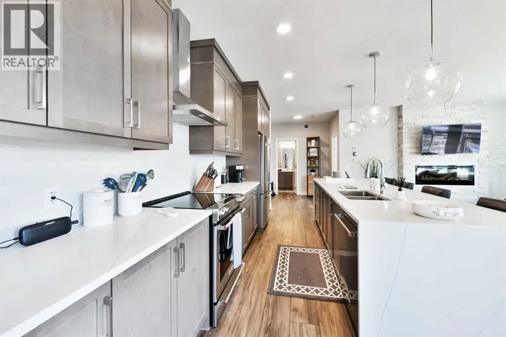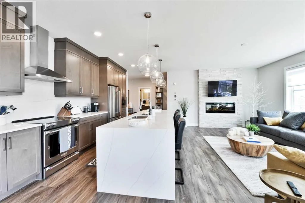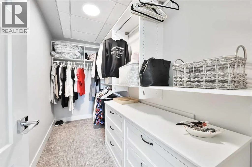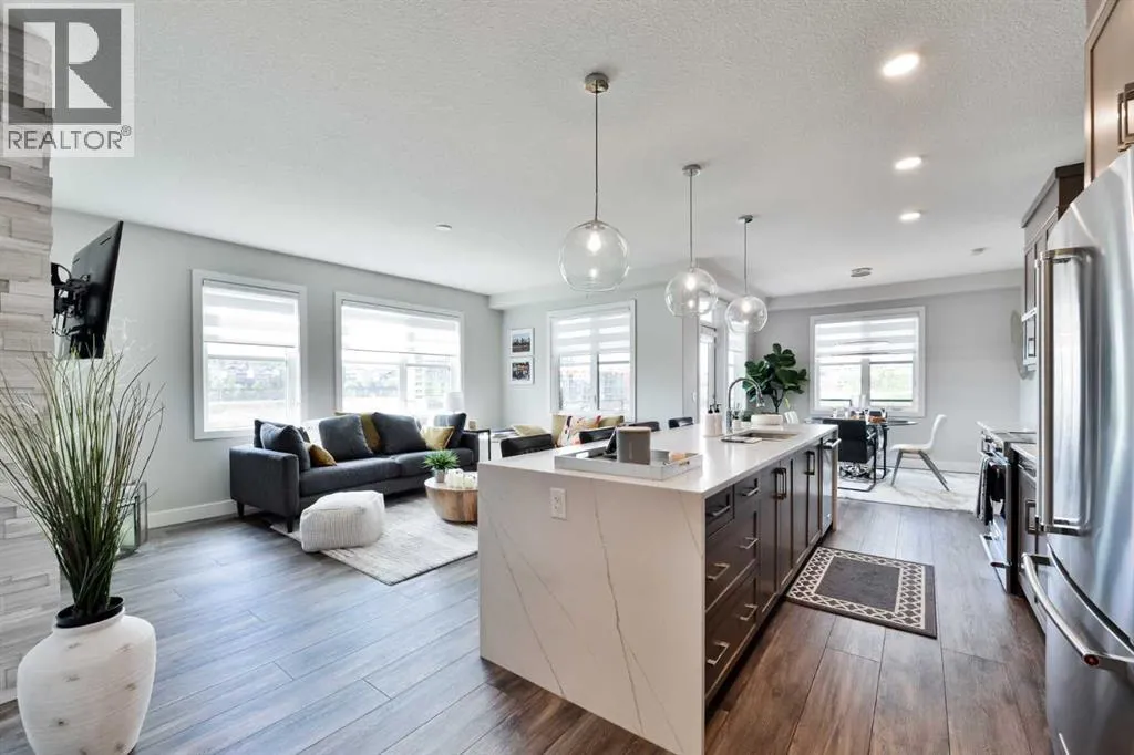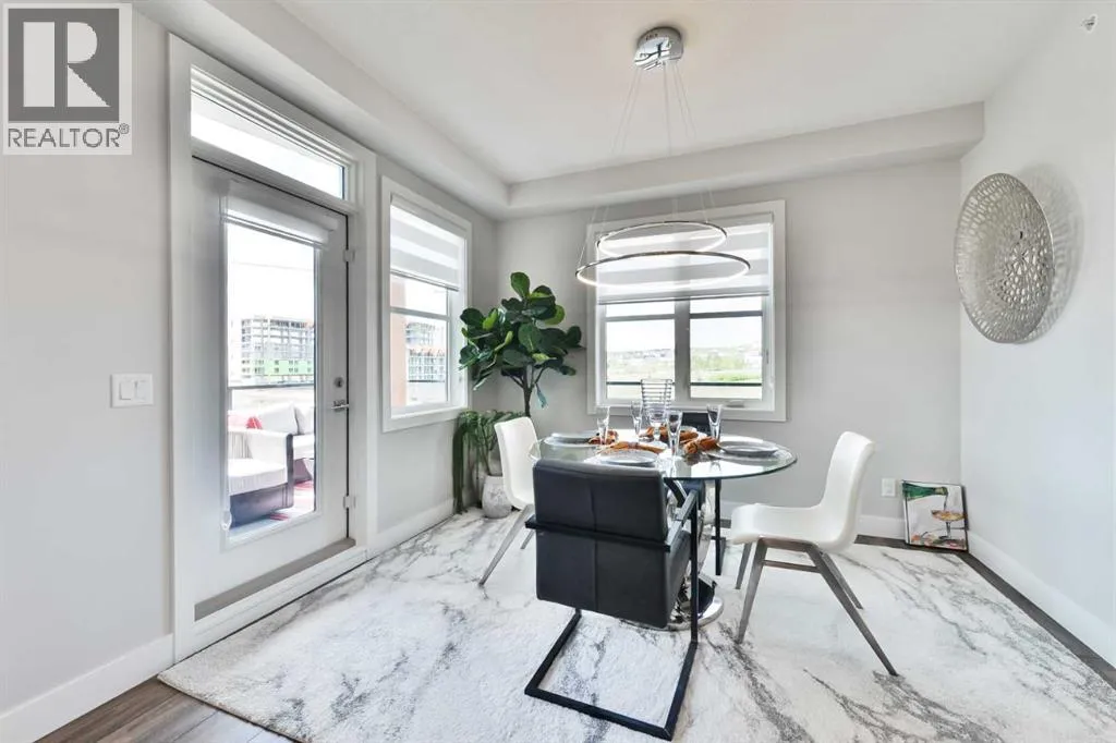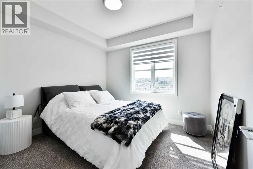 Welcome to this stunning top-floor, corner-unit condo offering over 1,100 sq ft of beautifully designed living space, featuring 2 bedrooms, 2 bathrooms, and an exceptional layout that blends comfort with functionality.From the moment you step inside, youâre greeted by an abundance of natural sunlight and a spacious front entry. To your left, a discreet laundry area and a generous flex room with double doorsâideal as a home office or additional storageâadd to the versatility of this home. The thoughtful split-bedroom layout ensures privacy, with a large secondary bedroom and full bathroom on one side, and a spacious primary suite on the other, complete with a walk-in closet and private ensuite.At the heart of the home is the open-concept great room, dining area, and gourmet kitchenâperfect for entertaining. Step outside onto the expansive wraparound balcony and take in the serene ravine and mountain views.Two conveniently located underground parking stalls (#39 & #40) are just steps from the stairwellâmaking it a breeze to run up to the unit or quickly access your vehicle.Perfectly situated just a short walk to Aspen Landingâs shops, restaurants, and amenities, and within close proximity to top-rated public and private schools. Enjoy easy access to downtown Calgary, the mountains, and the airport, along with nearby public transit and future park spaces.Whether you're downsizing, investing, or seeking a lock-and-leave lifestyle for winter travel, this impressive residence offers it all. (id:27476)