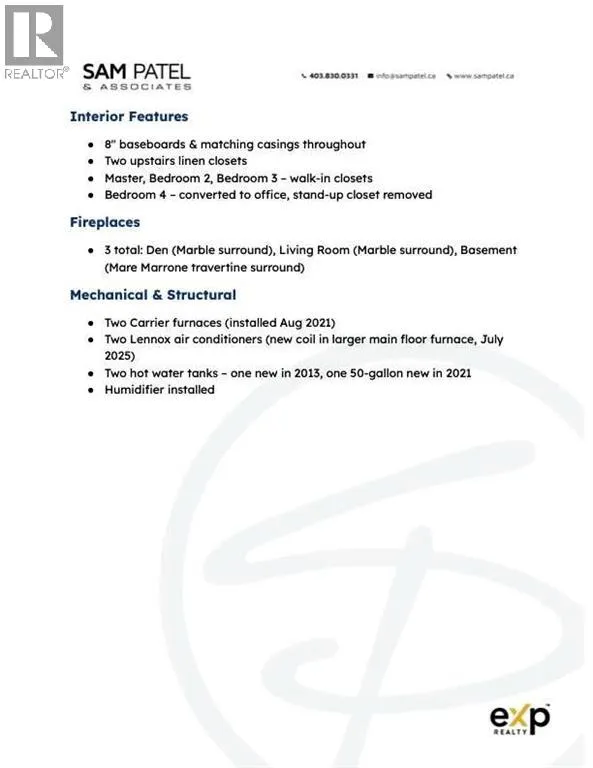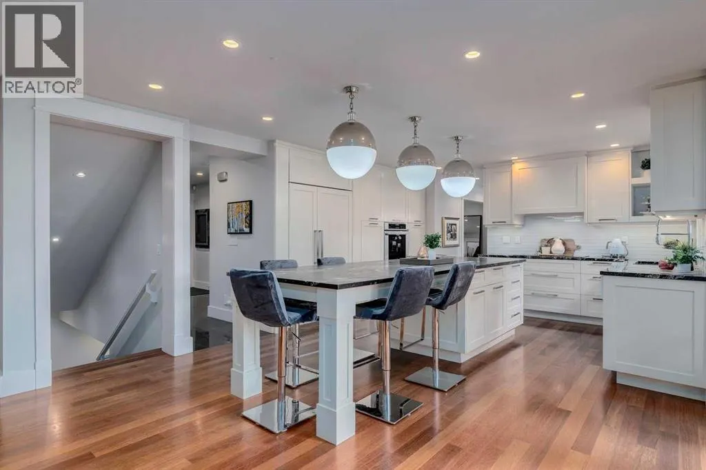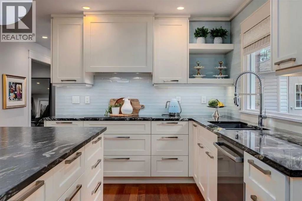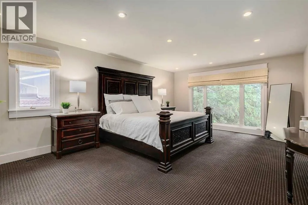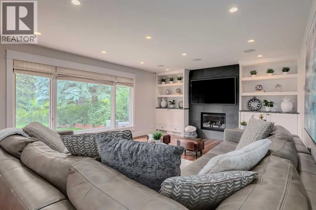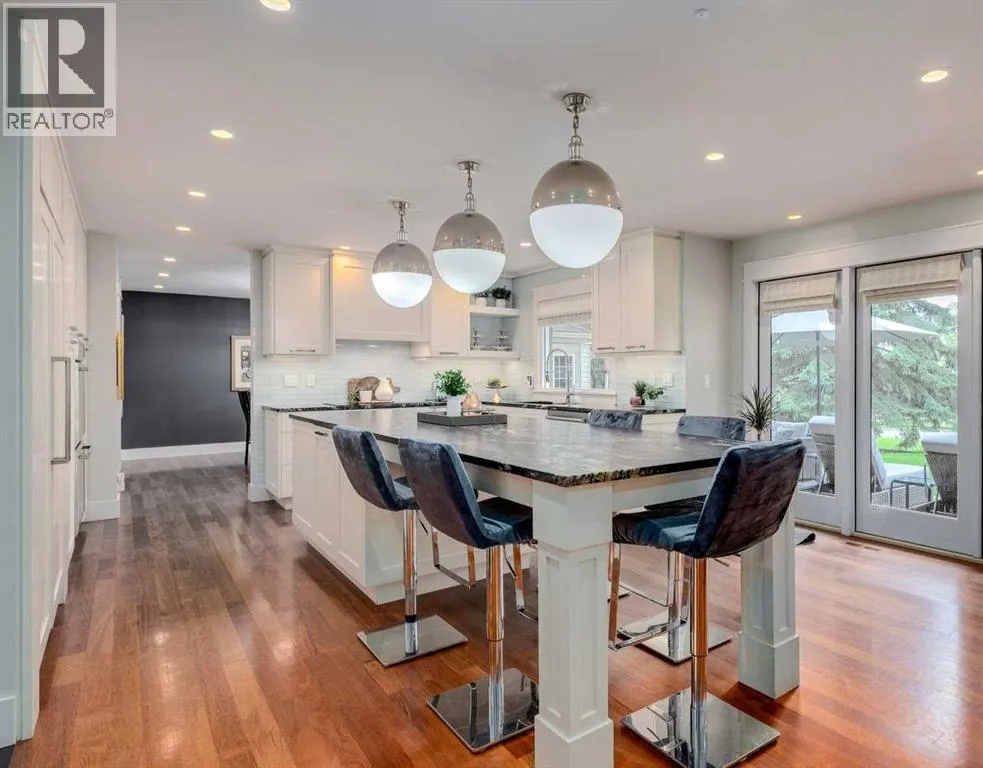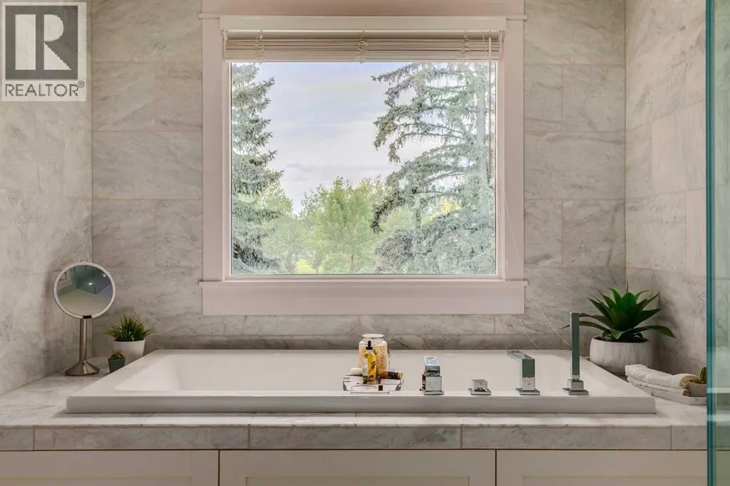 * SEE VIDEO * The ultimate outdoor lifestyle awaits! This magnificent Bayview executive home offers 4,285 sq. ft. of beautifully designed living space in one of Calgaryâs most exclusive neighbourhoods. Perfectly positioned backing directly onto the Glenmore Reservoir and South Glenmore Park, it provides private access to the cityâs extensive pathway system and unmatched recreational opportunities. Steps from the Sailing Club marina, bike pump track, and tennis and pickleball courts, this is a lifestyle of recreation, relaxation, and connection to natureâjust minutes from downtown Calgary. Families will appreciate proximity to top-rated schools including the GATE and Science programs, while Glenmore Landing offers nearby shops and restaurants, and Rockyview Hospital adds everyday convenience. The location alone makes this a rare inner-city offering. Renowned designer Sally Healy guided the redesign and curated the interior finishings, elevating the home with timeless character and thoughtful function. The exterior features classic brick and cedar, a tile roof, and a spacious stone-coated back deck overlooking the park. Inside, rich Merbau site-finished hardwood floors lead through an elegant and welcoming layout. The gourmet kitchen impresses with a paneled Sub-Zero refrigerator, Thermador induction cooktop and double ovens, Bosch dishwasher, and built-in slide-door microwave. Custom maple cabinetry, titanium granite countertops, glass-tile backsplash, and Hicks pendant lighting complete the space. Expansive windows capture tranquil park views and flood the living and dining areas with light, while marble-surround fireplaces create warm, sophisticated gathering spaces. Upstairs, four spacious bedrooms offer privacy and comfort. The primary retreat features breathtaking park views, a spa-inspired ensuite with heated marble floors, Neptune jetted tub, Grohe rain shower with multiple heads, double sinks, and a grand walk-in closet with a central makeup station and âhis and hersâ sections. A second bedroom includes its own three-piece ensuite and walk-in closetâperfect for children, guests, or extended family. The third bedroom also features a walk-in closet, while the fourth is currently styled as a home office. A five-piece main bathroom and double linen closet complete the upper level. The fully finished lower level offers a warm, versatile space with plush Shaw carpeting, a cozy fireplace, and upgraded electrical for a future home theatre or arcade setup. Custom cabinetry is already roughed in for a wet bar, offering flexibility for future customization and entertaining. With three fireplaces, dual furnaces and air conditioners, updated mechanical systems, and meticulous attention to detail, this home blends beauty, efficiency, and comfort. More than just a home in Calgaryâs most coveted location - book your showing today! (id:27476)