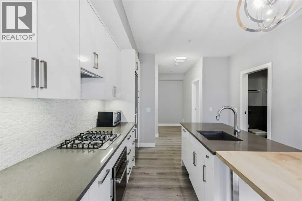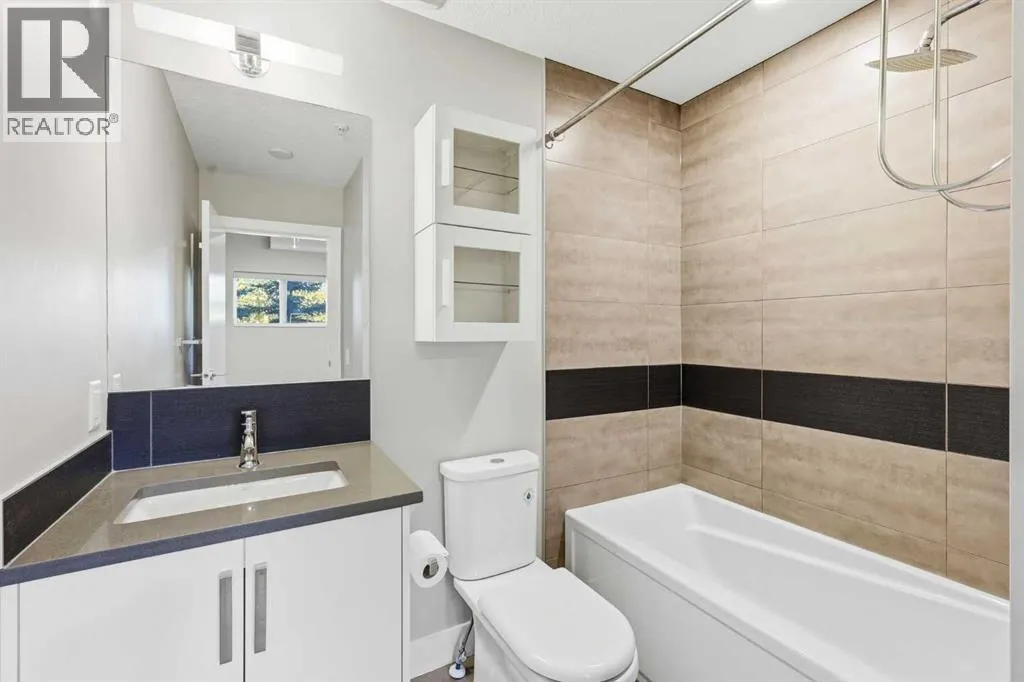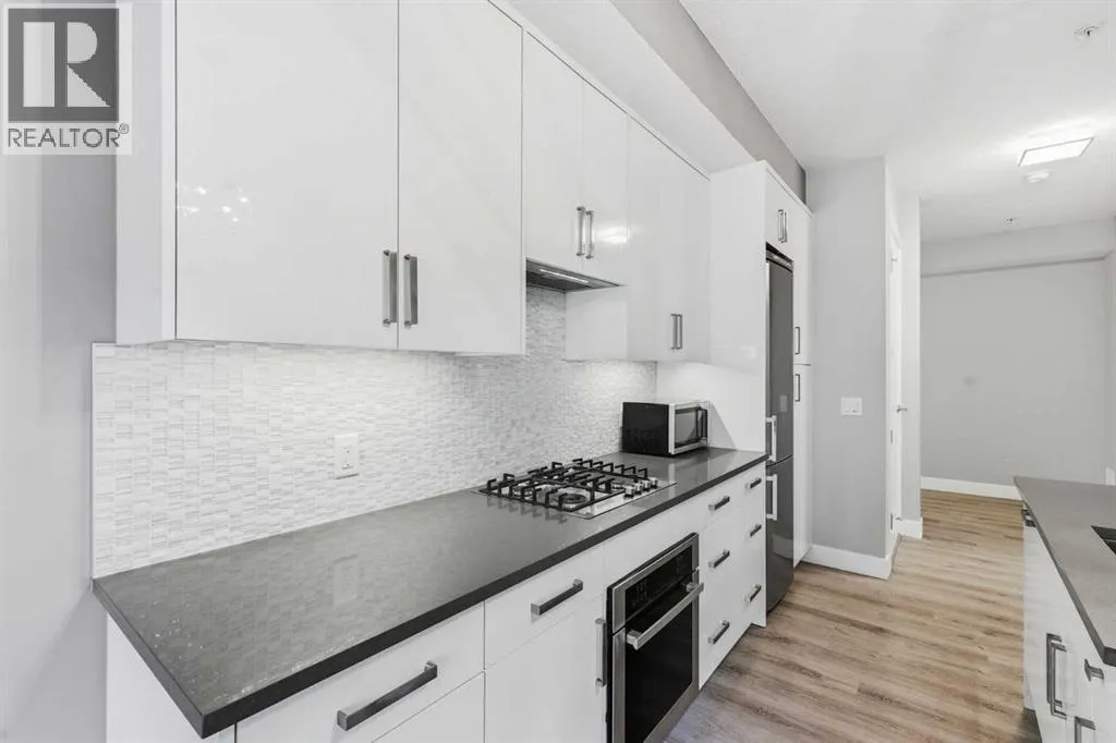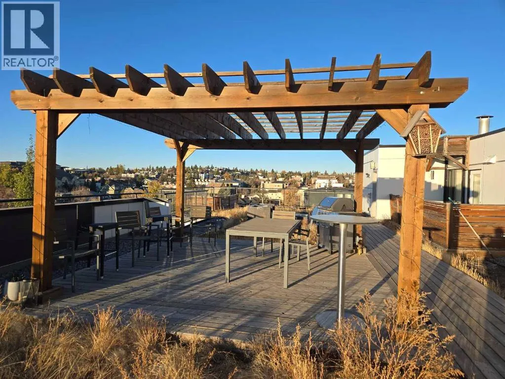 This sophisticated VERY PET FRIENDLY, two-bedroom, two-bathroom condo is situated in the prestigious Marda Loop community of South Calgary, within the exclusive Victory & Venture complex. Upon entry, residents are welcomed by a spacious foyer and ample closet space. The modern kitchen features high-quality appliances, quartz countertops, generous cabinetry, a gas cooktop, and a sizable island. Both bedrooms provide substantial space and storage, ideal for use as a home office or guest accommodation. The living room offers abundant natural light, a fireplace, and access to a large private patioâwell-suited for relaxation and hosting gatherings. Residents also enjoy access to a rooftop patio equipped with BBQ amenities and expansive city views. The property is conveniently located close to dining, retail, parks, public transportation, and additional amenities. (id:27476)