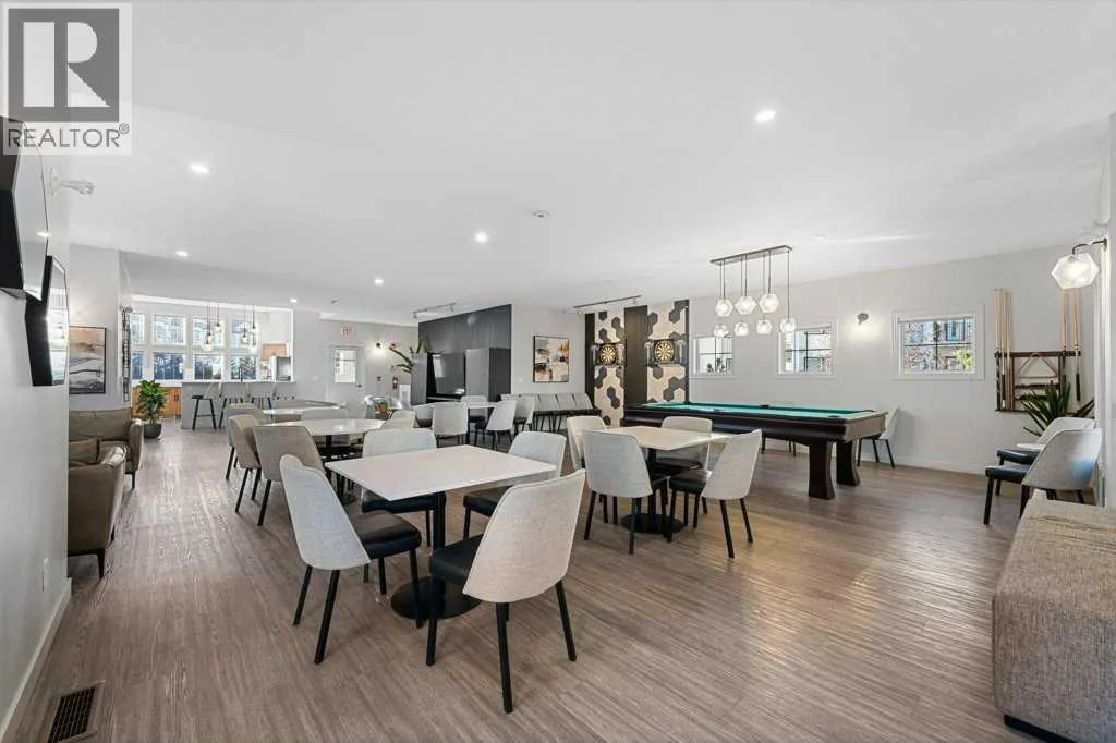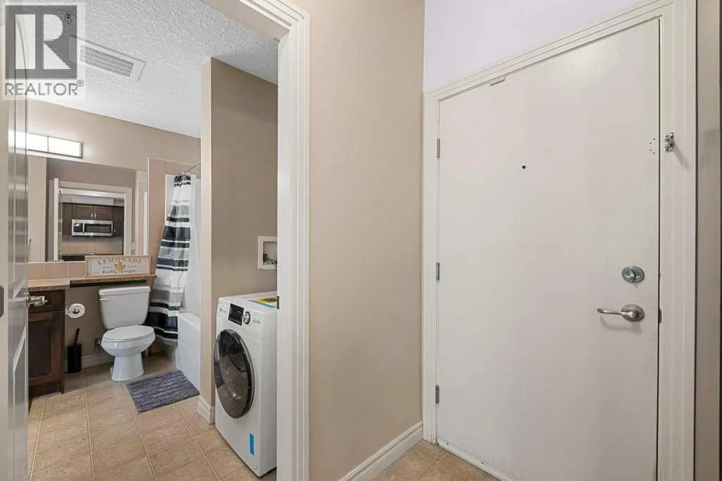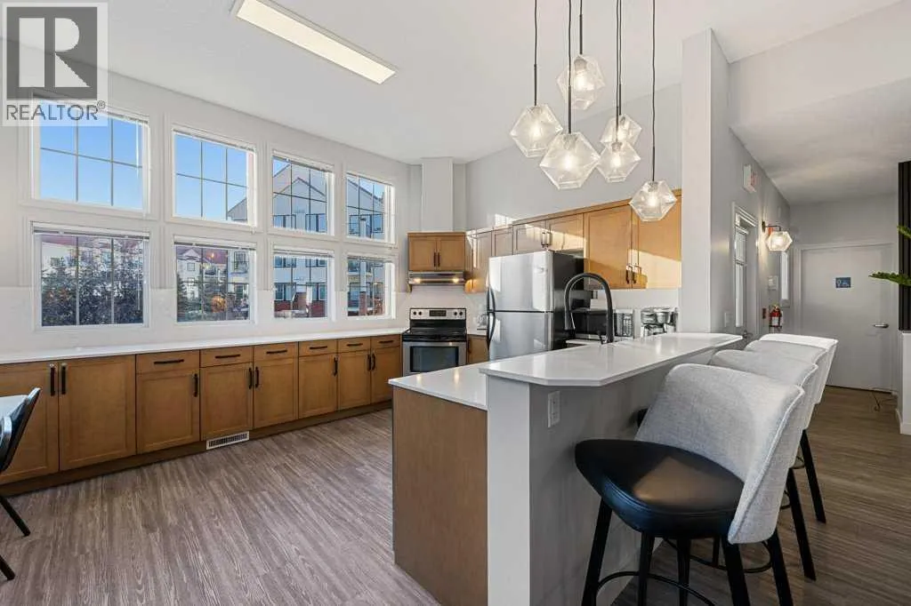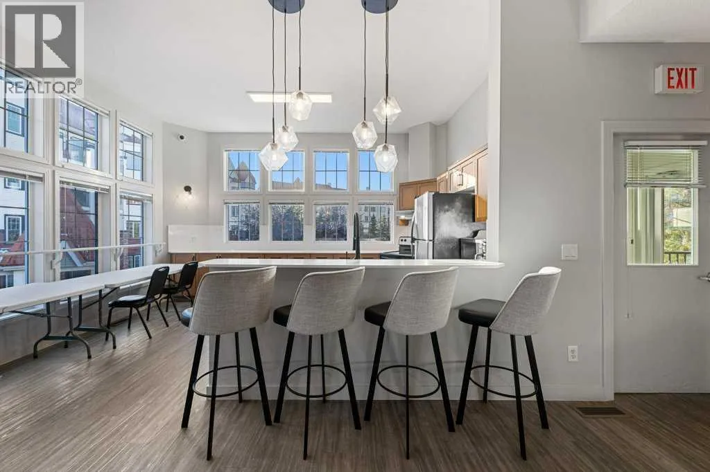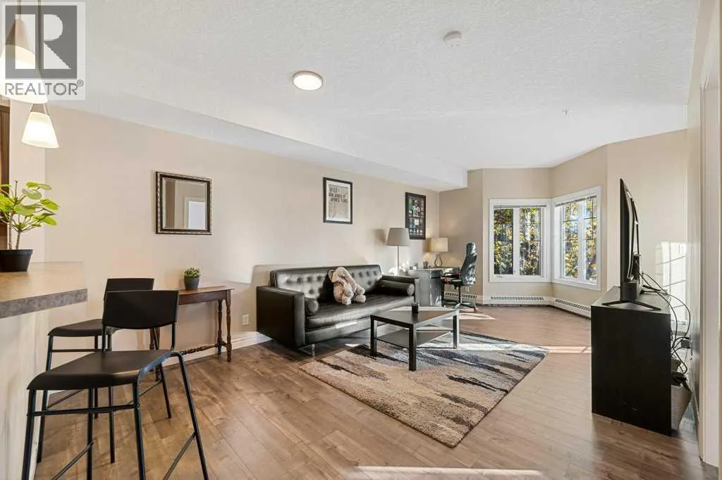 Set on the second floor of Building 60 at Red Haus, this bright, south-facing one-bedroom overlooks a beautiful courtyard and feels instantly welcoming. Laminate flooring flows through the living room and bedroom, while the kitchen shines with maple cabinetry and a raised breakfast bar. The open-concept living/dining area is flooded with natural light and includes a versatile flex nookâperfect for a desk, bookcase, or hutch. The spacious bedroom offers a walk-through closet to a 4-piece bathroom, and the in-suite laundry features a newer washer/dryer. Step out to the private balcony for morning coffee or evening downtime.Practical perks include titled, heated underground parking and a titled storage locker. Condo fees cover heat and water; only electricity and internet are extra. Residents enjoy the on-site Club Haus for fitness and social gatherings.Loved for its European-inspired design, Red Haus sits next to Royal Oak Centre (groceries, cafés, and daily essentials), with quick access to Stoney Trail and an easy bus ride to the Tuscany/Royal Oak LRT. Dont miss this great unit! (id:27476)
