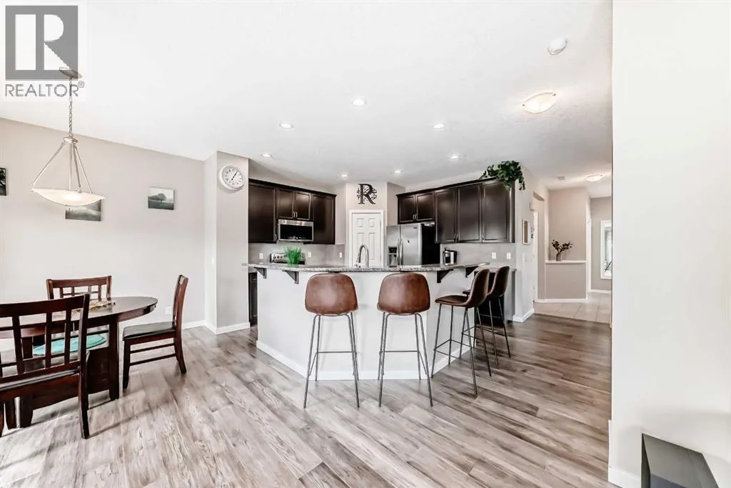 OPEN HOUSE: SUNDAY NOVEMBER 16th from 2:00-4:00PM â MOVE IN READY FOR YOU TO CALL HOME. Set on a quiet street with GREENSPACE OUT FRONT, NO NEIGHBOURS BEHIND, and a PARK AND PLAYGROUND just across the street, this two-storey home hits every mark for comfort, connection, and everyday function. With almost 2300 sq ft in this FRONT ATTACHED GARAGE home, you will find great value while it checks all the boxes. Inside, the TWO STOREY FRONT FOYER opens to a layout that gets it right from the start. The kitchen balances style and practicality with a CENTRAL ISLAND, stone counters, and a WALK-THROUGH PANTRY tucked perfectly between the mudroom and cooking space. A dedicated DINING ROOM OR FLEX SPACE beside the kitchen makes hosting effortless, while the bright rear nook turns weekend pancakes into tradition. In the living room, a GAS FIREPLACE brings warmth and a natural gathering point to the main floor.The MUDROOM is every organizerâs dreamâcomplete with a UTILITY SINK and direct access to the kitchen through that convenient pantry connection.Upstairs, the flow continues. Three bedrooms and a BONUS ROOM shape a floorplan that actually feels livable. The primary bedroom is spacious and calm, with a spacious ENSUITE that delivers on every wish: a SOAKER TUB, DUAL-SINK VANITY, and a WALK-IN CLOSET that makes mornings manageable.Downstairs, the unfinished basement offers endless POTENTIALâwhether that means a home gym, media room, or play zone down the road.But the real magic happens out back. The TWO-TIERED DECK and PERGOLA create a perfect outdoor stage for relaxing or entertaining. The yard is PRIVATE, LANDSCAPED, and ready for summer gatherings, complete with an OVERSIZED SHED for all the extras.Itâs the kind of property that feels like it belongs exactly where it isâfront and back both look toward green, with no sense of crowding. That balance of privacy and openness is rare, and itâs what makes this home stand out.Located in KINCORA, one of Northwest Calgaryâs m ost FAMILY-FRIENDLY communities, youâre surrounded by scenic pathways, parks, and every convenience nearby. Creekside and Sage Hill Shopping Centres, public transit, and Stoney Trail are all just minutes awayâmaking errands, school runs, and commutes as easy as life should be. (id:27476)