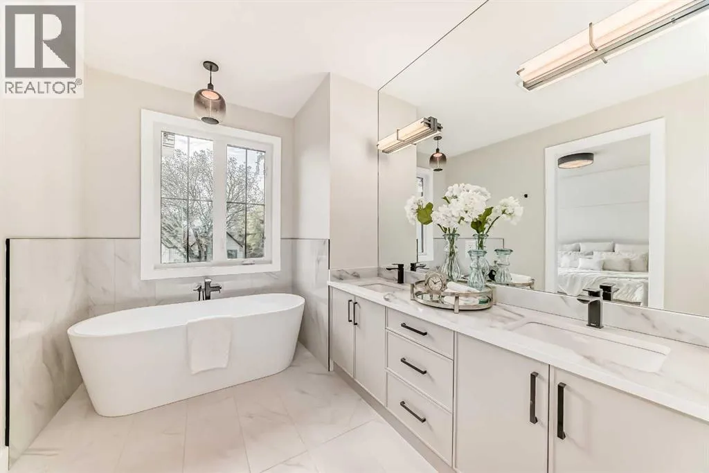** OPEN HOUSE Sunday November 16 Noon to 3 pm ** Luxury New Build in West Hillhurst | 4 Beds | 3.5 Baths | 2,192 Sq. Ft. | Double Garage | Backs Onto GreenspaceExperience elevated living in the heart of West Hillhurst with this stunning 2,192 sq. ft. luxury semi-detached home. Featuring 4 spacious bedrooms, 3.5 bathrooms, and a front attached double garage, this brand-new home blends modern design with timeless style. The open-concept main floor showcases tall ceilings, designer finishes, and a gourmet kitchen complete with high-end appliances, custom cabinetry, and a large islandâperfect for entertaining. Expansive windows frame peaceful greenspace views, filling the home with natural light.Upstairs, the elegant primary suite offers a spa-inspired ensuite and walk-in closet, joined by two additional bedrooms and convenient laundry. The finished lower level includes a spacious rec room, fourth bedroom, and full bath. Backed by nature and steps from parks, schools, and the Bow River pathways, this West Hillhurst gem delivers the perfect balance of luxury and lifestyle. (id:27476)