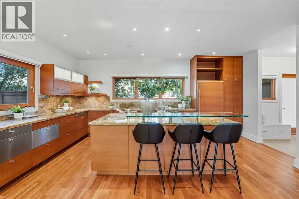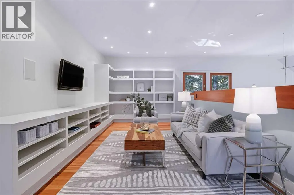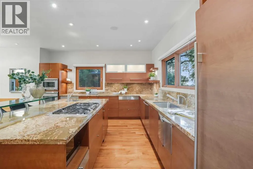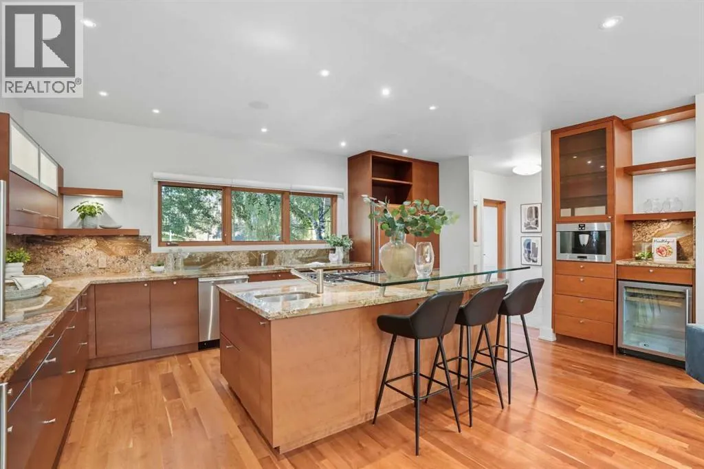 Are you looking to live in the exclusive, prestigious community of Bel-Aire? This is your chance to experience this amazing community of tree lined streets, luxury homes. This home is steps away from the Glenmore Reservoir and Calgary County Club. Situated on a massive over 12,000 sq/ft corner lot in a quiet cul-de-sac, this home offers over 5,800 sq/ft of TOTAL LIVING SPACE. As soon as you step inside the warm interior, you will feel at home.The front foyer is bathed in natural sunlight, and connects you with every corner of the house. The custom kitchen boasts double-stacked granite counter-tops, stainless steel appliances, and a paneled Sub-Zero fridge, blending seamlessly with the outdoor living space â perfect for entertaining. Have casual meals with your family via the custom eating nook or bar area, or entertain your guests in the private dining room and massive outdoor patio.The heart of the home is the BREATHTAKING GREAT ROOM â a stunning space with SOARING OVER 20-FOOT CEILINGS that create a grand sense of scale. TOWERING WINDOWS flood the room with natural light, while custom-built bookcases add warmth and character. A STRIKING FIREPLACE serves as the roomâs focal point, with hand-cut stonework meticulously designed to complement the space. A HIDDEN STAIRCASE adds a touch of intrigue, blending functionality with sophisticated design. This remarkable room offers an inviting yet luxurious ambiance, perfect for quiet moments of relaxation or entertaining on a grand scale. This serene space is ideal for relaxation and gathering with loved ones.Upstairs, youâll find three spacious bedrooms, each with their own ensuite and walk-in closet. The primary suite features a SPA-INSPIRED ENSUITE, a MASSIVE WALK-IN CLOSET, and access to the south-facing windows. Thoughtful touches can be found throughout the bedrooms, like a custom window bench, built-in office space, and Swarovski crystal-accented wallpaper elevate the design.The upper floor also includes a vers atile area ideal as an office, family room, or reading nook. The upstairs laundry room is bright and cozy due to the light from the corner windows. The fully developed basement features 10' ceilings, a guest bedroom with ensuite, and an open layout ready to suit your lifestyle.This EXCEPTIONAL HOME blends TIMELESS DESIGN with IMPECCABLE CRAFTSMANSHIP â a rare opportunity in one of Calgary's most sought-after communities. This home has been meticulously maintained by its owners, and it shows. Don't miss out on this extraordinary property. (id:27476)