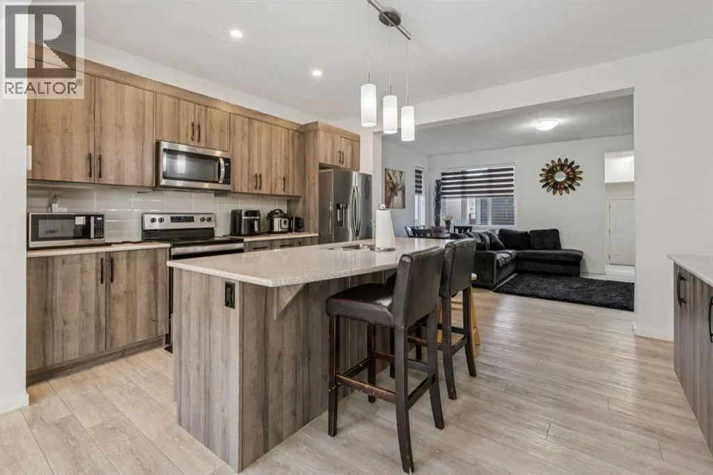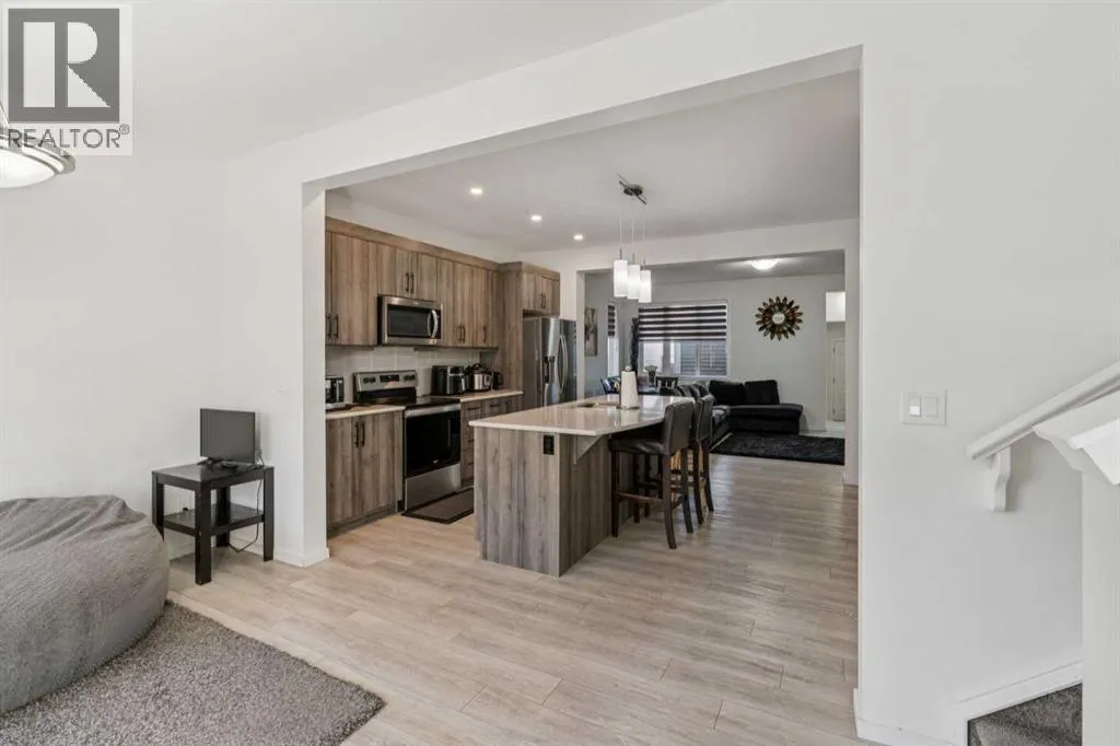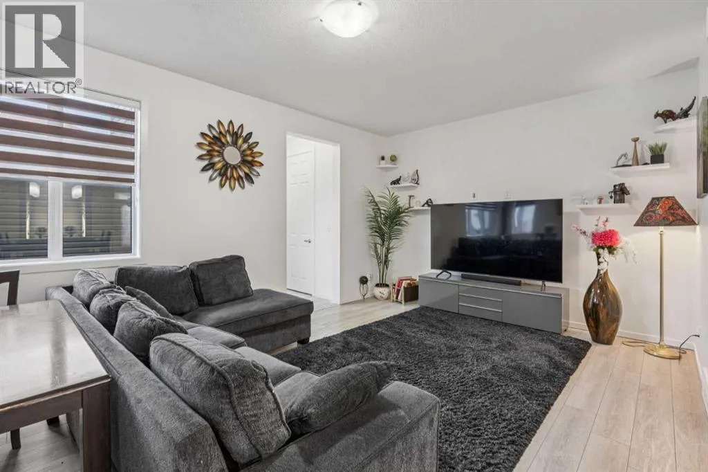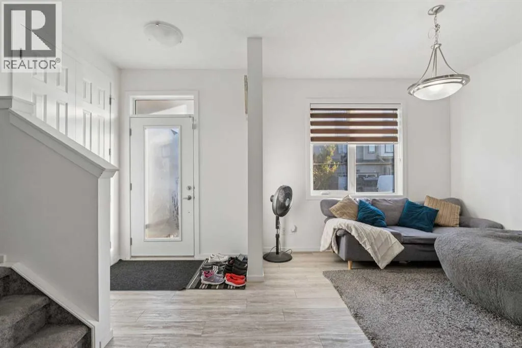 Stylish Duplex with Finished Walk-Up Basement in Carrington NW!Discover this beautifully maintained duplex in the sought-after community of Carrington NW. Where elegant design meets everyday convenience. Featuring 3+1 bedrooms, this home offers a perfect blend of style, comfort, and functionality.Step inside to find 9 knockdown ceilings, a bright open-concept main floor, and a spacious living and dining area ideal for entertaining. The chef-inspired kitchen is the heart of the home, showcasing custom soft-close cabinetry, quartz countertops, a large dining space, pantry, and premium appliances including a microwave and refrigerator â all designed to make cooking and gathering a joy.Upstairs, youâll find three well-sized bedrooms, including an elegant primary suite complete with a walk-in closet and elegantly appointed ensuite. The convenient ample second-floor laundry makes daily living that much easier.Downstairs, the fully finished walk-up basement offers incredible flexibility â featuring a private suite with a spacious bedroom, modern bathroom, compact kitchen, and large family area â perfect for guests, extended family, or a mortgage helper.Enjoy the comfort of a finished, oversized rear attached garage, ideal for winter parking and extra storage.Located in Carrington NW, youâre just minutes from Stoney Trail, playgrounds, schools, shops, and everyday amenities â plus, only 15 minutes to the airport and 6 minutes to major shopping centers.This home has been lovingly cared for and possession is negotiable. Donât miss your chance â book your private showing today and fall in love with your new home in Carrington! (id:27476)