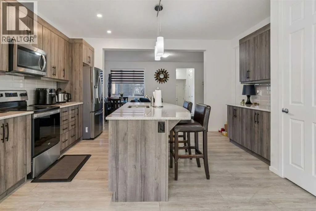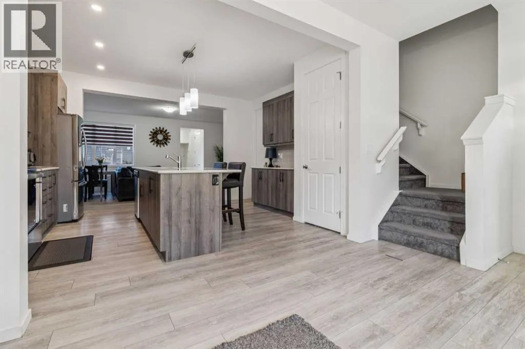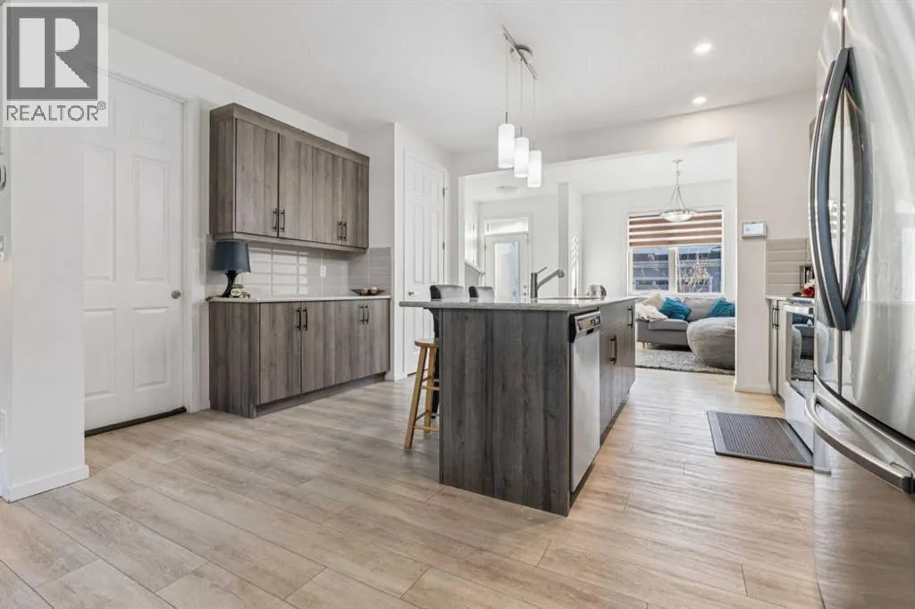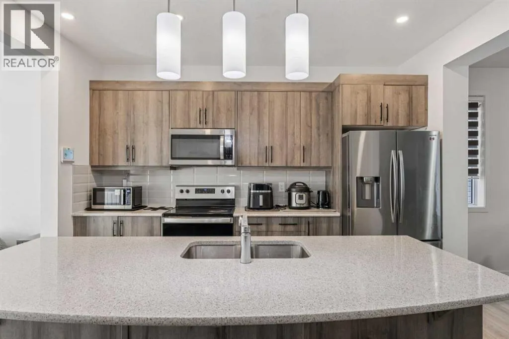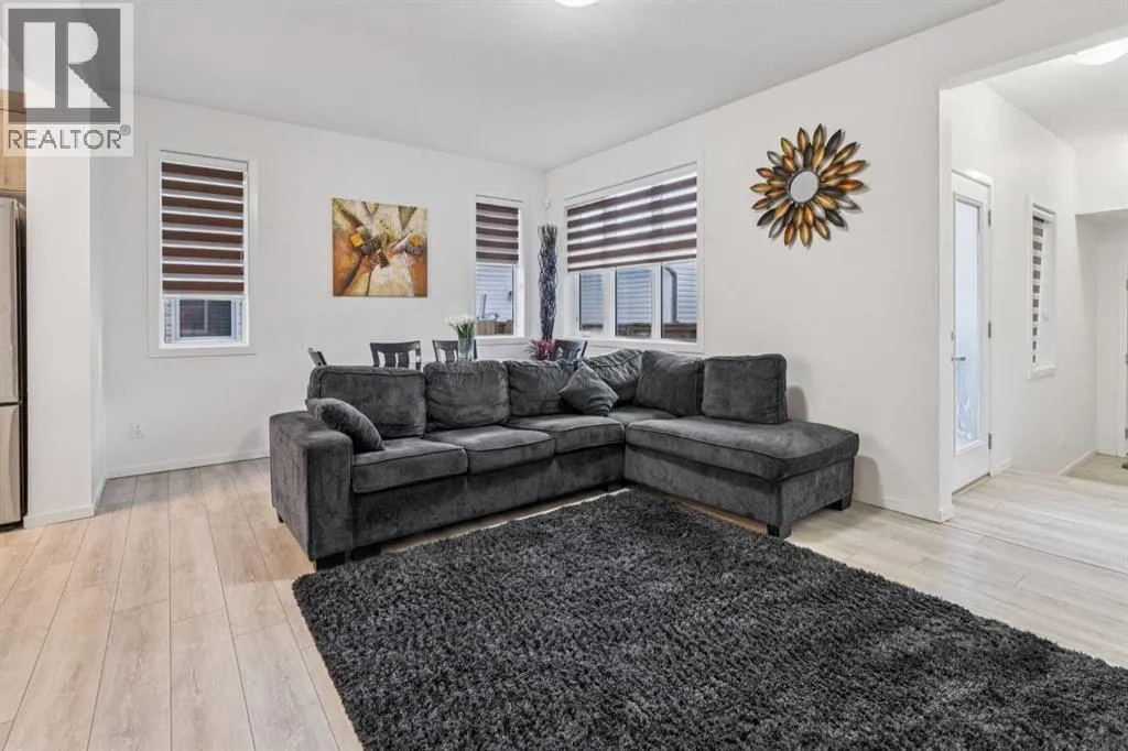 Stylish Duplex with Finished Walk-Up Basement in Carrington NW!Discover this beautifully maintained duplex in the sought-after community of Carrington NW. Where elegant design meets everyday convenience. Featuring 3+1 bedrooms, this home offers a perfect blend of style, comfort, and functionality.Step inside to find 9 knockdown ceilings, a bright open-concept main floor, and a spacious living and dining area ideal for entertaining. The chef-inspired kitchen is the heart of the home, showcasing custom soft-close cabinetry, quartz countertops, a large dining space, pantry, and premium appliances including a microwave and refrigerator â all designed to make cooking and gathering a joy.Upstairs, youâll find three well-sized bedrooms, including an elegant primary suite complete with a walk-in closet and elegantly appointed ensuite. The convenient ample second-floor laundry makes daily living that much easier.Downstairs, the fully finished walk-up basement offers incredible flexibility â featuring a private suite with a spacious bedroom, modern bathroom, compact kitchen, and large family area â perfect for guests, extended family, or a mortgage helper.Enjoy the comfort of a finished, oversized rear attached garage, ideal for winter parking and extra storage.Located in Carrington NW, youâre just minutes from Stoney Trail, playgrounds, schools, shops, and everyday amenities â plus, only 15 minutes to the airport and 6 minutes to major shopping centers.This home has been lovingly cared for and possession is negotiable. Donât miss your chance â book your private showing today and fall in love with your new home in Carrington! (id:27476)