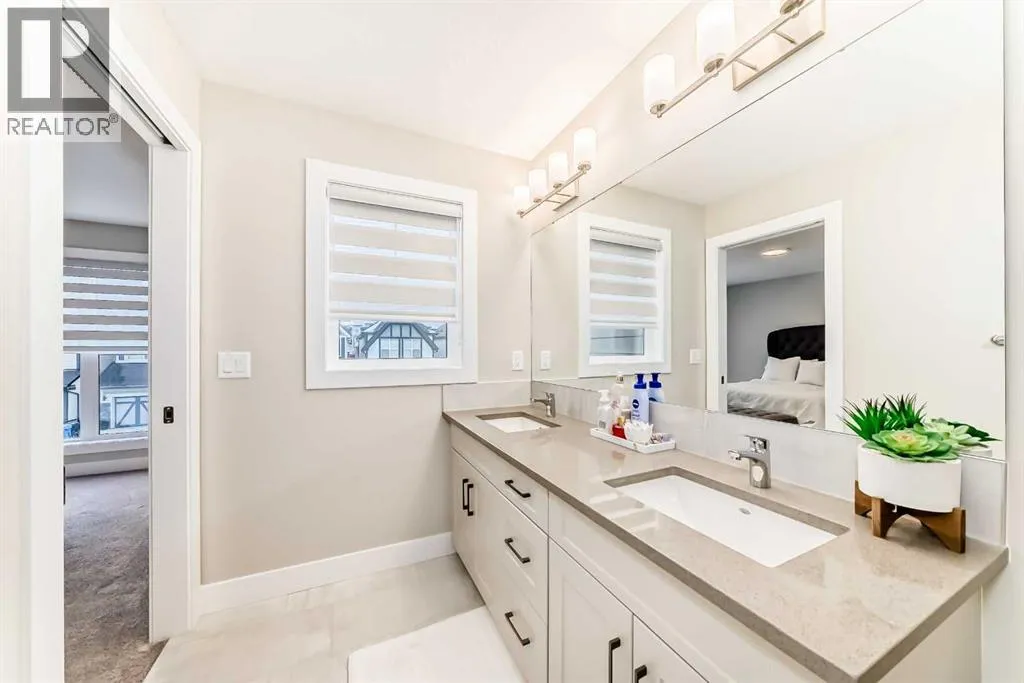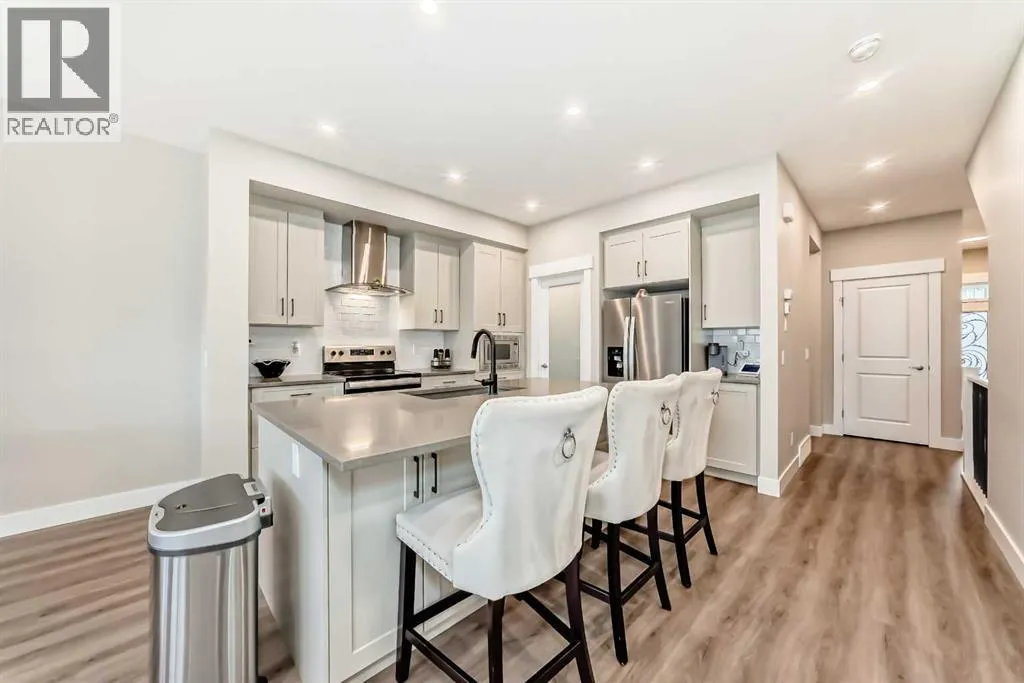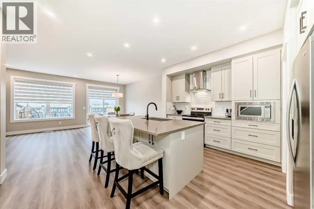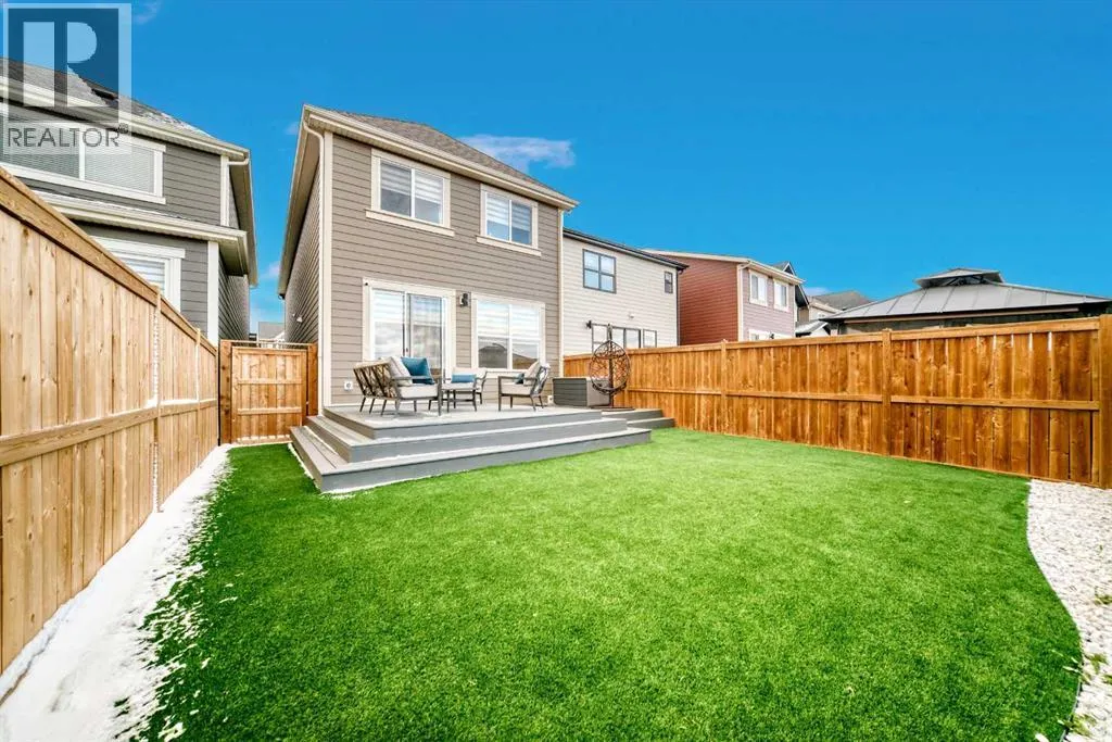 Beautifully crafted by Hopewell, this Mahogany home shows pride of ownership throughout. A custom front addition welcomes you with natural light and an extended foyer. Inside, enjoy soft tones, soaring ceilings, and an open layout. The chefâs kitchen features quartz counters, a large island, with a deep undermount sink, Whirlpool appliances, and a walk-in pantry. Step outside to a multi-tier composite deck, low-maintenance artificial turf, and an open field view. Upstairs offers a bright bonus room and 3 bedrooms, 2 full bathrooms with California style closets. The basement, with 1 bed and full bath adds exceptional quality living space. Central Air Conditioning. Move-in ready in Calgaryâs premier lake community! (id:27476)