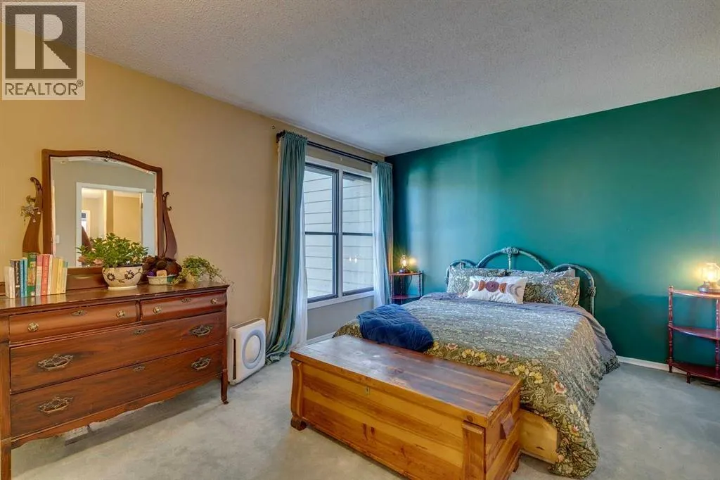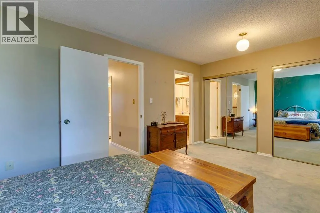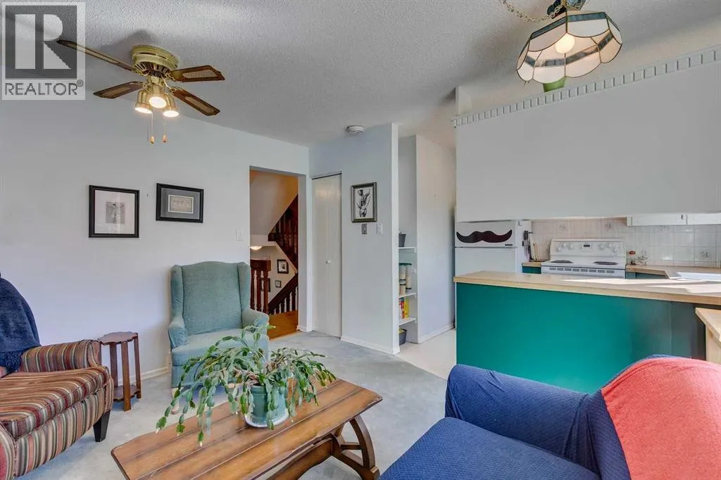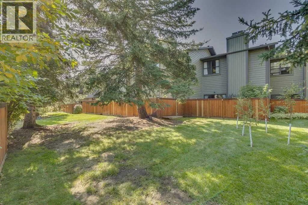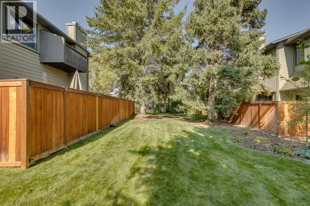 This charming townhouse is tucked away in a beautifully maintained complex surrounded by mature trees. The home is mostly original, and full of character and warmth. Youâll love the first impression with its vaulted wood beam ceilings, cozy wood-burning fireplace, and sliding patio doors that open to a private fenced yard backing onto a small green space. The layout offers a comfortable mix of spaces, with a formal dining area just a few steps up from the living room, and a bright kitchen with a breakfast nook. There are three generous bedrooms upstairs, and the primary bedroom is impressively large with a 2-piece ensuite and a cheater door to the main 4-piece bathroom. A second 2-piece powder room is conveniently located off the kitchen level. The basement provides great potential for storage or future development. Additional features include a heated single attached garage with new garage door, R40 newly insulated attic, driveway parking for a second car, and a new furnace installed last year. The location is quiet yet convenient, close to groceries, restaurants, and other amenities, with easy access to Stoney Trail. A wonderful opportunity to own in this lovely established community. (id:27476)