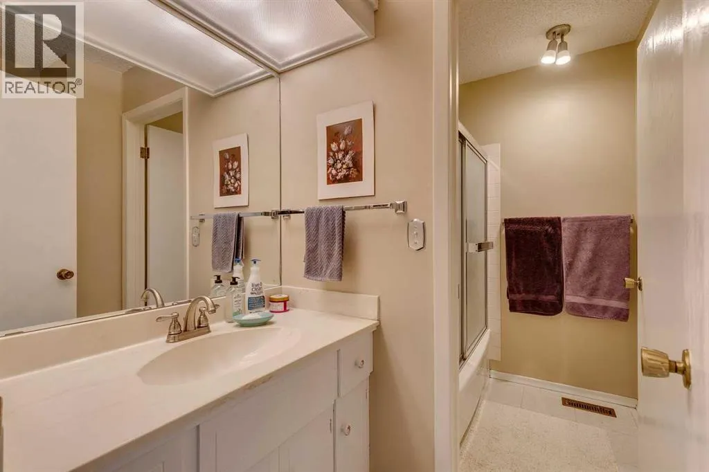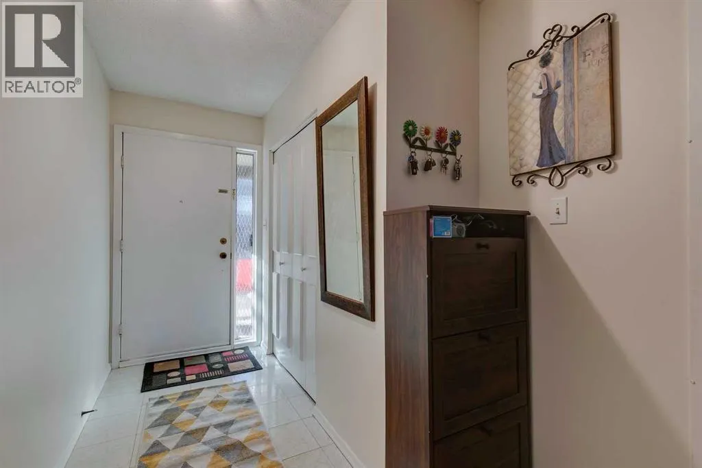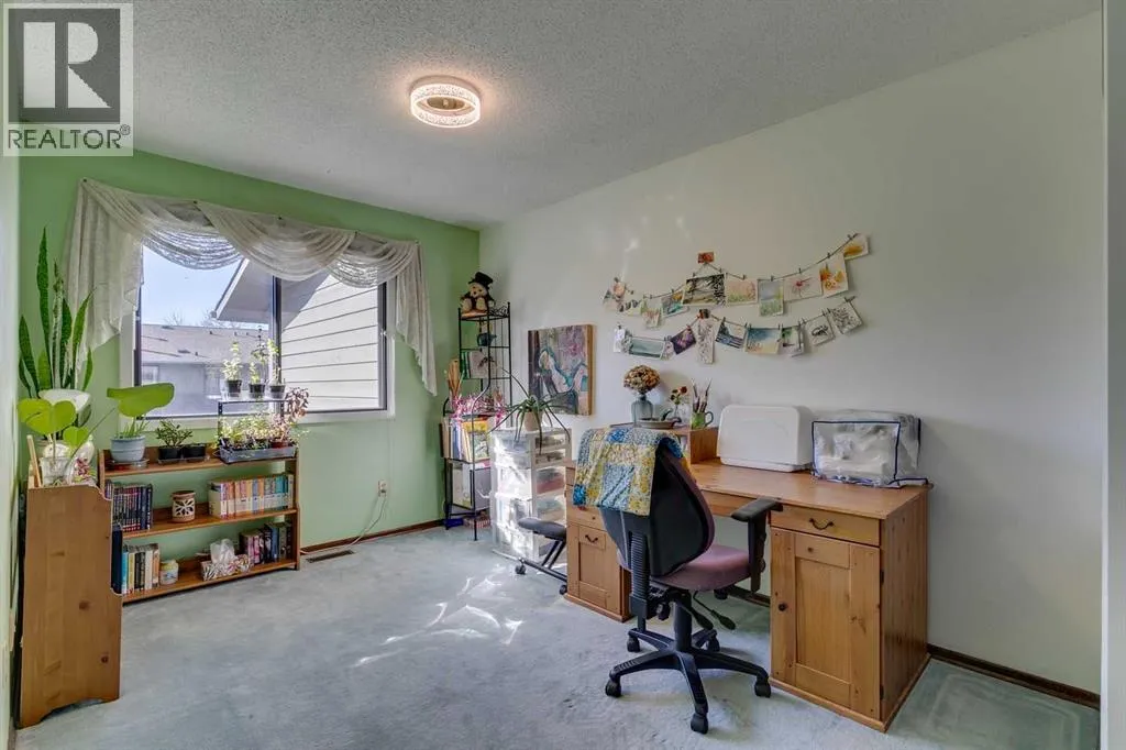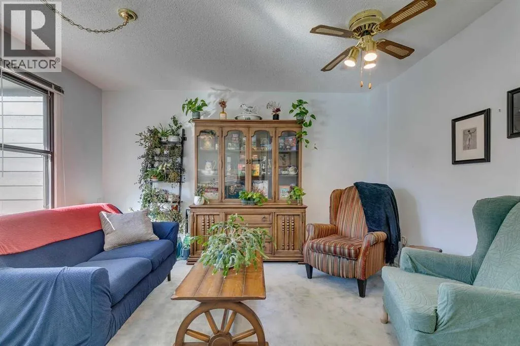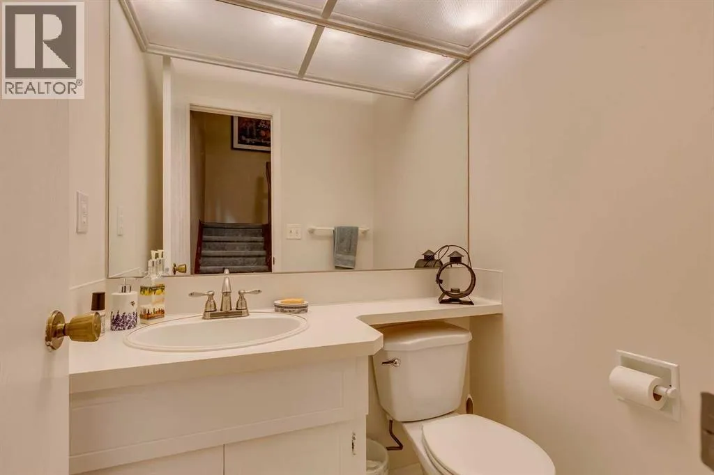 This charming townhouse is tucked away in a beautifully maintained complex surrounded by mature trees. The home is mostly original, and full of character and warmth. Youâll love the first impression with its vaulted wood beam ceilings, cozy wood-burning fireplace, and sliding patio doors that open to a private fenced yard backing onto a small green space. The layout offers a comfortable mix of spaces, with a formal dining area just a few steps up from the living room, and a bright kitchen with a breakfast nook. There are three generous bedrooms upstairs, and the primary bedroom is impressively large with a 2-piece ensuite and a cheater door to the main 4-piece bathroom. A second 2-piece powder room is conveniently located off the kitchen level. The basement provides great potential for storage or future development. Additional features include a heated single attached garage with new garage door, R40 newly insulated attic, driveway parking for a second car, and a new furnace installed last year. The location is quiet yet convenient, close to groceries, restaurants, and other amenities, with easy access to Stoney Trail. A wonderful opportunity to own in this lovely established community. (id:27476)