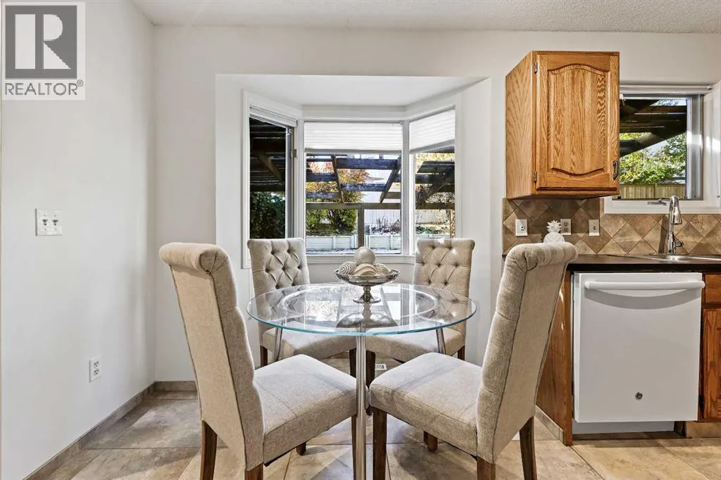 Welcome to this well-maintained 4-level split nestled on a quiet crescent in the heart of Strathcona Park â the perfect setting for families! You'll love being just steps from the scenic ravine pathway system, close to walking trails, and within walking distance to Olympic Heights Elementary and John Costello School. The home boasts great curb appeal, featuring brand new MicroPro Sienna pressure-treated front deck boards. Inside, you're welcomed into a bright living room that flows seamlessly into a spacious dining area, ideal for family dinners and entertaining. The kitchen features warm oak cabinetry, a pantry, updated appliances, and a charming bay window overlooking your sun-drenched southwest-facing backyard. Just a few steps down, the cozy family room awaits with a freestanding wood-burning stove (cleaned in 2023) and classic brick surround â a perfect spot to unwind on chilly evenings. The main floor laundry room comes equipped with newer washer and dryer. Upstairs, you'll find three bedrooms, including a primary bedroom with a 3-piece ensuite, plus a beautifully updated 4-piece main bath featuring new tile, toilet, and an exhaust fan. A fourth bedroom on the lower level offers extra space for guests, a home office, or teens. Outside, enjoy your private park-like yard with terraced landscaping, a newly built treated wood fence, concrete patio, planters, pergola with vines, and a BBQ gas line â truly made for outdoor living. Additional highlights include 18"x18" neutral ceramic tile flooring in key areas, an insulated and heated double attached garage, copper plumbing (no poly-B), BP Everest 40 shingles (2008), upgraded attic insulation, and eavestroughs approx. 5 years old. This charming home is packed with potential in one of Calgaryâs most sought-after neighbourhoods. Donât miss your chance â call your favorite Realtor and book your private tour today! (id:27476)