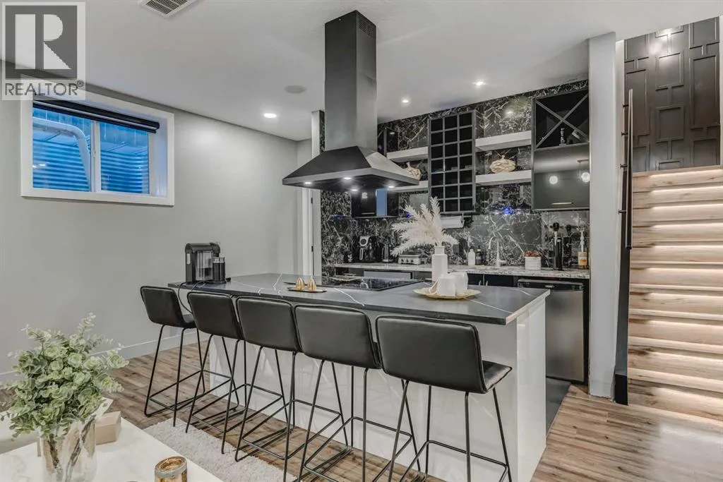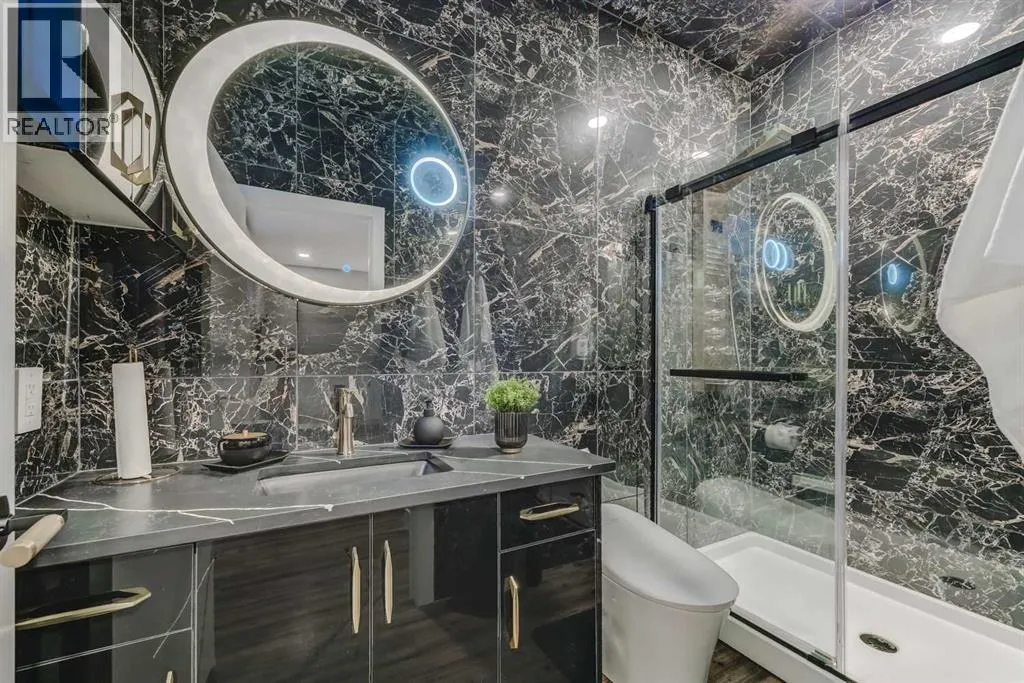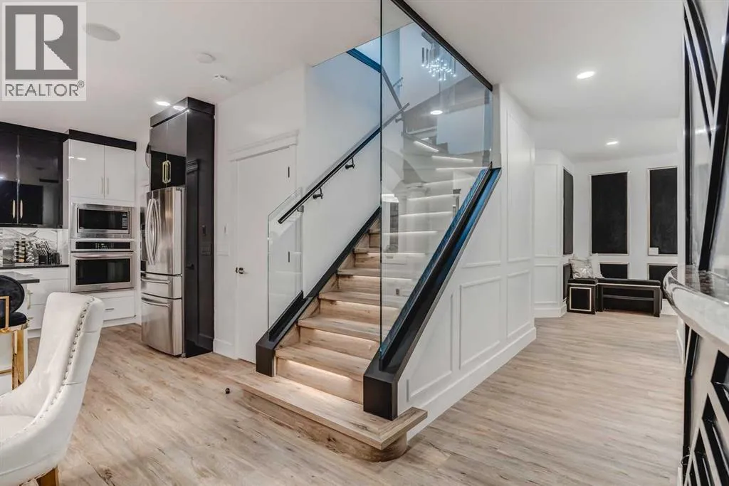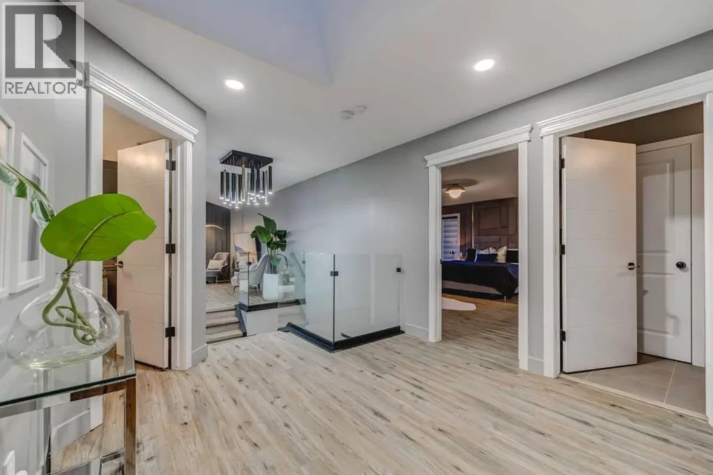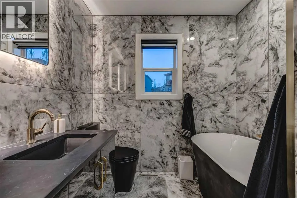 EXQUISITELY REMODELED DESIGNER HOME offering 5 bedrooms, 3.5 baths, and around 4,200 SQ. FT. of developed living space on a RARE 8,500 SQ. FT. PIE LOT in sought-after Rocky Ridge community.A dramatic entry with gold-accent columns and custom wall paneling opens to a stunning living room featuring a floor-to-ceiling slab fireplace, expansive windows, and MOTORIZED BLINDS. The chefâs kitchen boasts CUSTOM CABINETRY, GRANITE COUNTERS, HIGH-END APPLIANCES, and a walk-through pantry leading to the OVERSIZED HEATED GARAGE. The main floor also includes a private office and two elegant dining areas.Upstairs, a vaulted bonus room captures MOUNTAIN VIEWS. The primary suite offers a SPA-INSPIRED ENSUITE and CUSTOM BUILT-IN WALK-IN CLOSET. Three additional bedrooms include built-in beds, including a unique double-bed design.The fully developed basement showcases an IMPRESSIVE SECONDARY SUITE (ILLEGAL) with FULL KITCHEN, spacious living area, luxury bath, and custom walk-in closet â ideal for MULTI-GENERATIONAL LIVING OR INCOME POTENTIAL.Additional features include BUILT-IN SPEAKERS, IN-FLOOR HEATING, A/C, SOLAR-CHARGED SMART BLINDS, stair sensor lighting, central vacuum, SMART TOILETS, new water tank, and water filtration system.Seller willing to negotiate furnishings, offering the opportunity to purchase the home FULLY FURNISHED FOR A MOVE-IN-READY EXPERIENCE.Enjoy EXCLUSIVE ACCESS TO ROCKY RIDGE RANCH AMENITIES â canoeing, kayaking, rowboats, tennis, basketball, pickleball, splash park, playground, clubhouse rental, skating, fitness classes, and community events.A ONE-OF-A-KIND DESIGNER HOME that blends TIMELESS EUROPEAN-STYLE LUXURY with MODERN CONVENIENCE in a premier NW location. (id:27476)