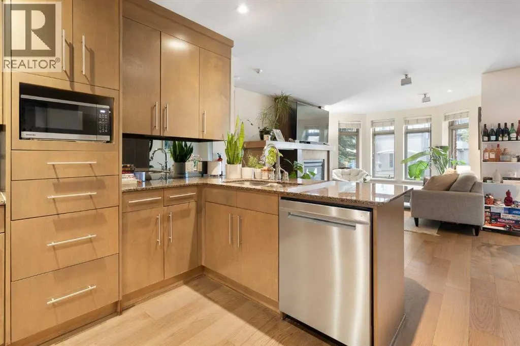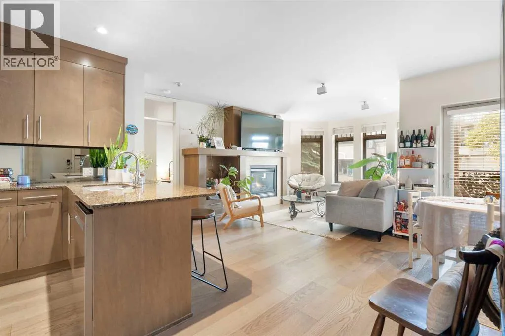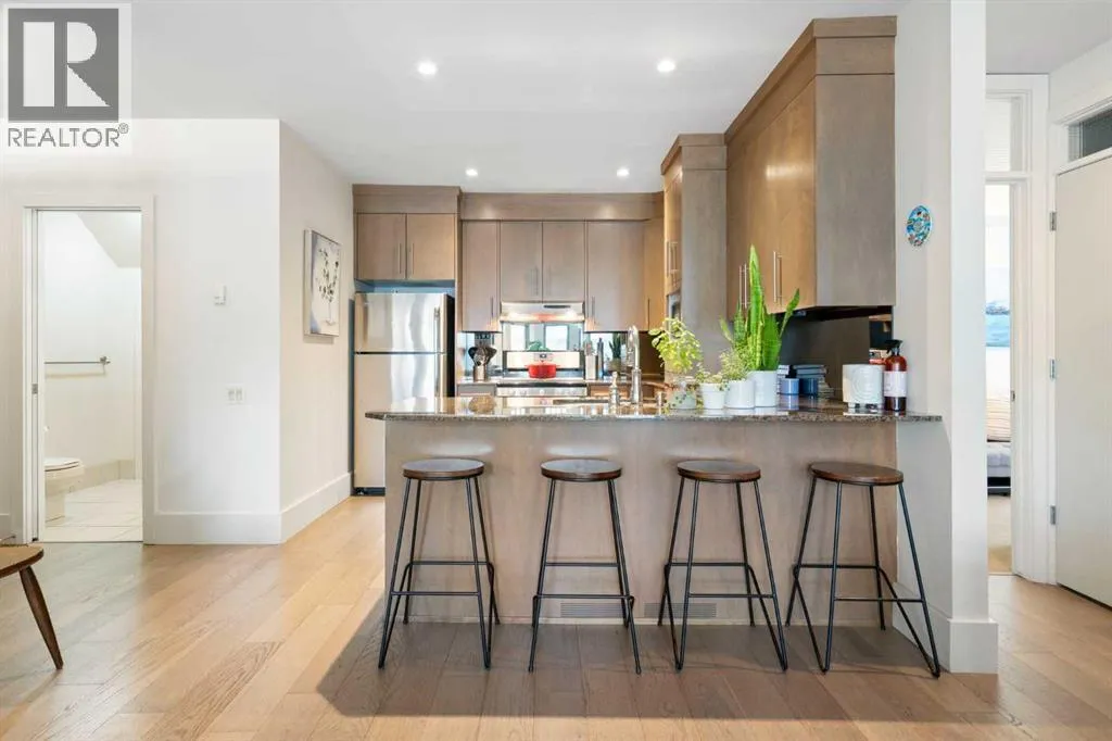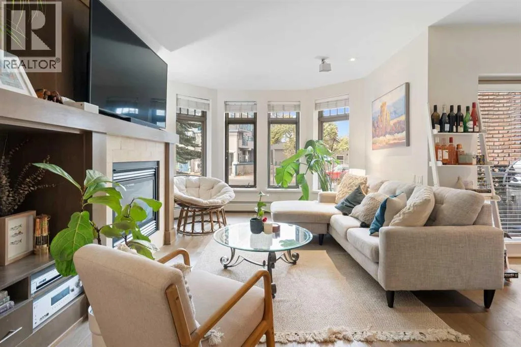 Welcome to this spacious and beautifully appointed 2 bedroom luxury condo in the SAM award-winning âVillagio Kensington,â a boutique 12-unit concrete building perfectly situated in the heart of the vibrant Kensington district. Just steps from the Bow River pathways, Riley Park, Hillhurst/Sunnyside Park, boutique shopping, restaurants, and minutes to downtown, this residence offers the ideal balance of upscale comfort and urban convenience. With 939 sq.ft. of well designed and efficient space, this open-concept end unit showcases stunning contemporary finishes, including engineered hardwood floors, flat-painted 9 ft ceilings, and built-ins galore. The entertainerâs kitchen features custom maple cabinetry, a great sized eating bar, a gas stove and stainless steel appliances, perfect for hosting or everyday living. The spacious living area is centered around a built-in wall unit with gas fireplace creating a warm and inviting atmosphere. The primary bedroom includes a full-wall built-in armoire and a 4 piece ensuite with a soaker tub. The second bedroom provides flexible space for guests, a reading nook, or a home office. A second full bathroom with tiled shower and in-suite laundry adds convenience. Throughout the home, upscale finishes such as solid-core doors, custom built-ins, and flat ceilings highlight the quality craftsmanship that defines Villagio Kensington. This energy-efficient concrete building was the first condo in Alberta constructed using insulated concrete forms (ICF) for the floors, exterior walls, and demising walls, providing exceptional soundproofing, superior insulation, and enhanced energy efficiency. Exterior details include Old Chicago brick and acrylic stucco, metal-clad windows, and a heated driveway with snow sensor. The home includes one secure underground parking stall, located in the heated parkade. Nestled on a quiet cul-de-sac just steps from a playground and all of Kensingtonâs amenities, this residence offers the perfect blend of tran quility and convenience. Experience the best of urban living in one of Calgaryâs most desirable neighbourhoods. Book your private showing today. (id:27476)