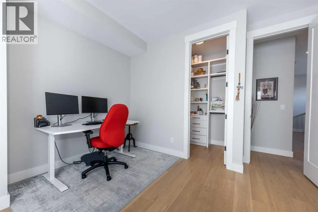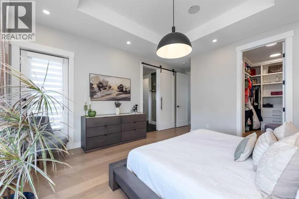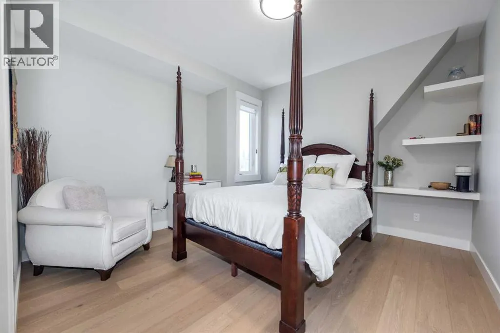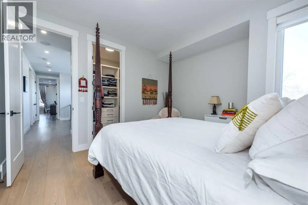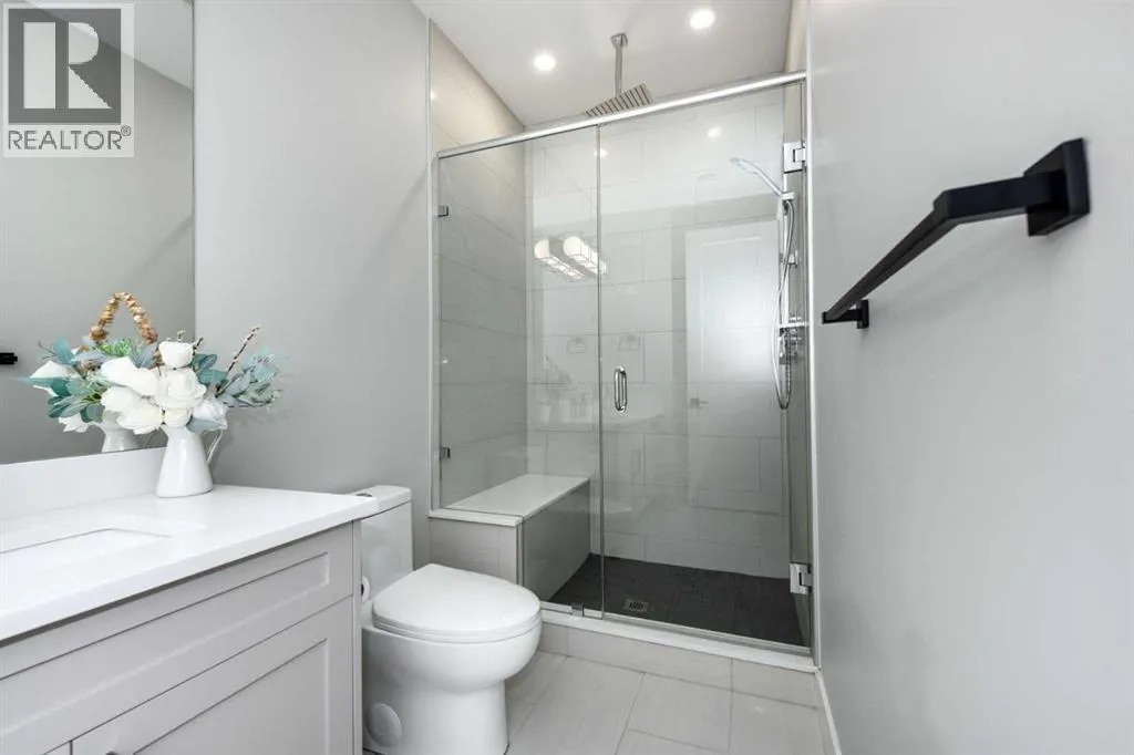 LIKE NEW! This architecturally designed detached home offers over 3,400 sqft. of refined space, blending clean modern design with warmth and everyday functionality. Positioned directly across from Grafton Park and just steps from St. Andrew and Glamorgan Schools, it provides the perfect balance of community and convenience.The main level features 10-ft ceilings, oversized windows, and a bright, open layout. The chefâs kitchen includes sleek flat-panel cabinetry, premium black stainless-steel appliances, a gas cooktop, wall oven, and a large quartz islandâideal for entertaining. The living room is anchored by a full-height tiled fireplace and custom built-ins, while a dedicated workspace and custom mudroom add practical functionality.Upstairs, the primary retreat impresses with a private balcony, spa-inspired ensuite featuring a steam shower, freestanding tub, double vanities, heated floors, and a large dressing area with makeup station. Two additional bedrooms offer walk-in closets and share a double-vanity bathroom, while the upper laundry room includes custom cabinetry and a utility sink.The finished lower level offers 9-ft ceilings, a media lounge, wet bar with beverage fridge, fourth bedroom, and full bathâperfect for guests or family gatherings. Extra-wide staircases and hallways enhance the homeâs sense of space and flow.Ideally situated, this home is within 15 minutes walking distance to Mount Royal University and the vibrant Currie Barracks area, 5 minutesâ drive to Signal Hill Shopping Centre, and a quick 10-minute commute to downtown Calgary. Its central yet quiet location provides exceptional accessibility to parks, pathways, schools, and major amenities.Set in one of Calgaryâs most desirable communities, this residence delivers a rare combination of thoughtful design, craftsmanship, and lifestyle. Homes of this calibre in Glamorgan are seldom available. (id:27476)