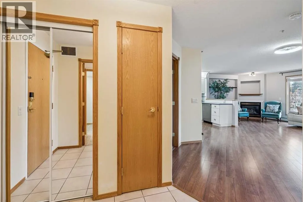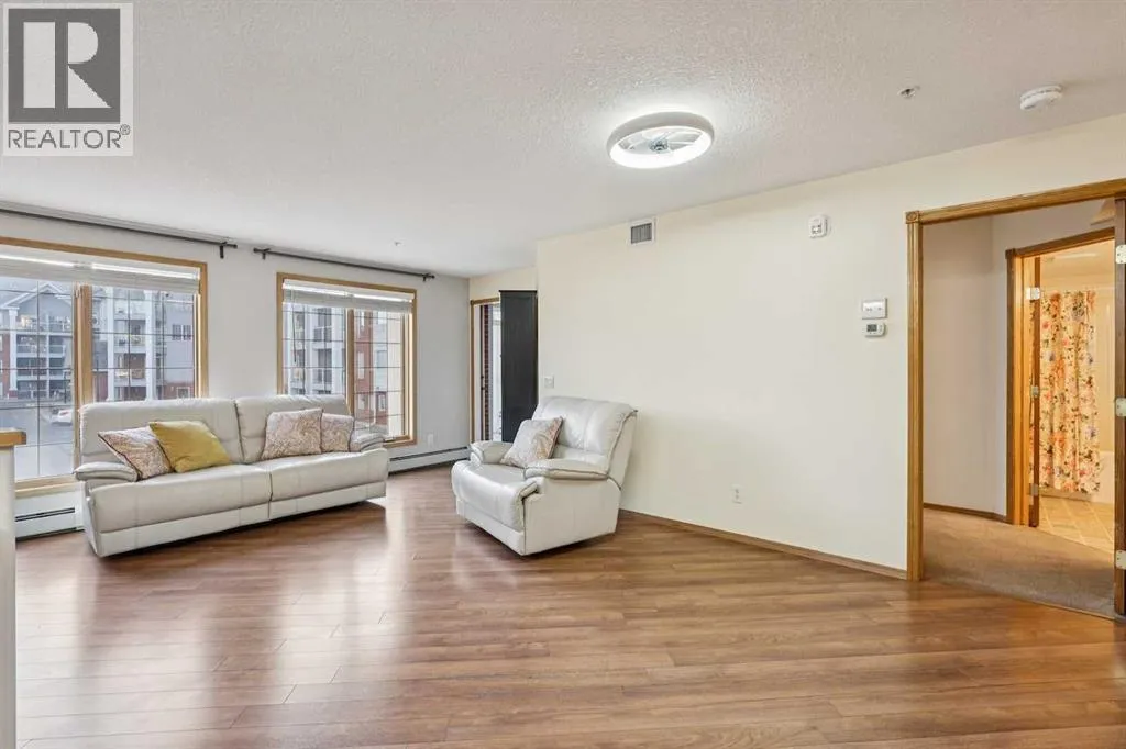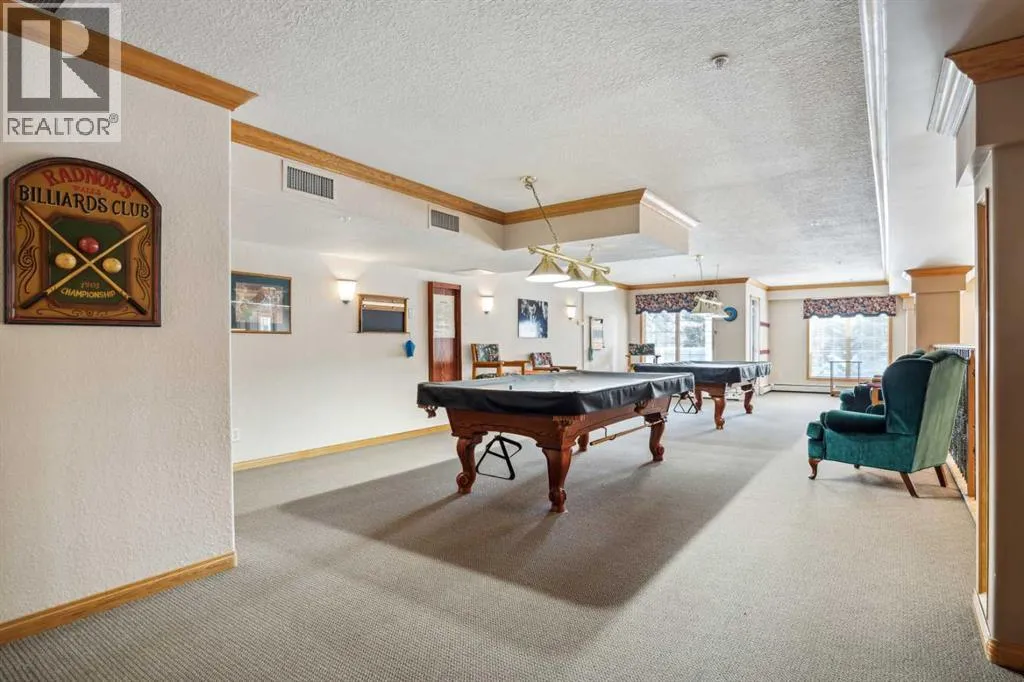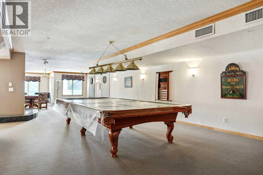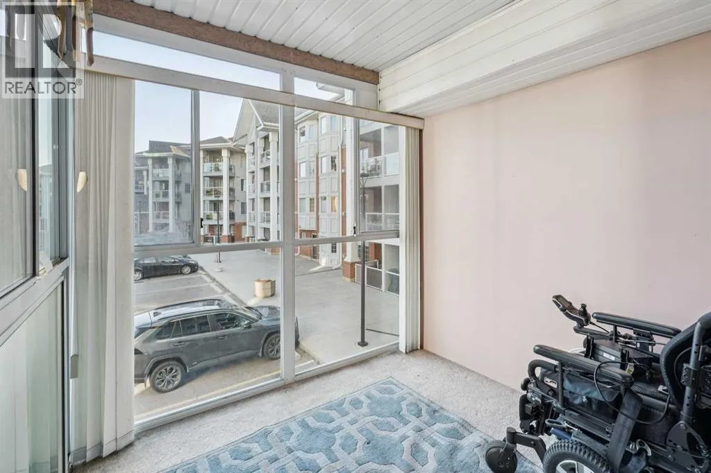 Wonderful adult 55+lifestyle condo complex with fabulous amenities. Two bedroom. 1/1/2 bathrooms. Sunny south facing exposure with covered balcony (sunroom). Two indoor parking stalls and one attached storage unit. Desirable open floor plan with large windows that provide plenty of sunshine. Condo fee includes all utilities. The amenities that can be enjoyed are numerous: secure entry doors to building and parking garages, underground parkade , car wash, wood working shop, hot spot, bicycle racks, extra storage units (if available), exercise facility, indoor swimming pool, hot tub, snooker table, shuffle board, darts, two more pool tables, media room with large TV system and hundreds of movies, VHS and DVDS, craft room, common area bathrooms, banquet room, two guests suites on each floor, 4 elevators, outdoor courtyard with firepit, plus 15 access to Heritage Square, walking distance to major grocery stores, Heritage LRT, and numerous restaurants and more. Minutes from Rocky view Hospital, Police station, and centrally located in great community of Acadia. This condo complex is well run and brings more than just a safe place to live, it brings a lifestyle that you will enjoy with all the amenities and social activities available if you choose to be part of. Great value here. (id:27476)
