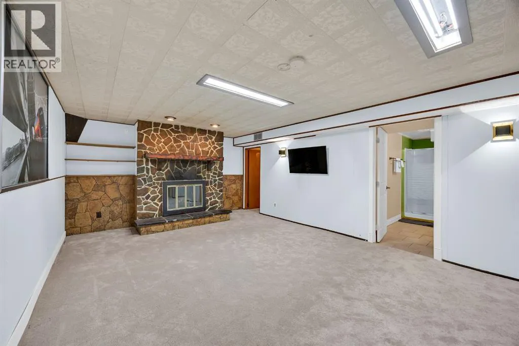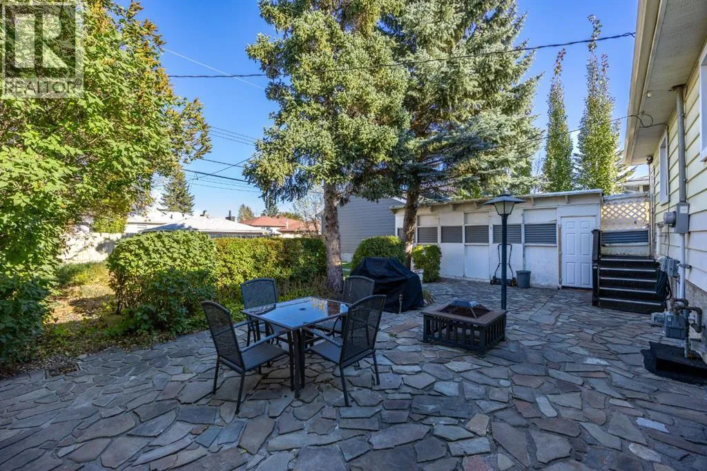 This charming bungalow is nestled on a quiet street in the heart of the historically iconic community of Bowness. Beautiful mature trees will greet you at the curb & the extended concrete drive will usher you up to the front door. You will be greeted at the foyer with glistening original hardwood flooring. The comfortable sized living room is illuminated with natural light flowing through the large front bay window. Spacious dining area with a beautiful papered feature wall, touch activated sconces, & stunning original glass paned pantry door. This gem boasts a balance of updates & original charm. The beautifully renovated kitchen is an expressive space that is sure to inspire many lovingly prepared meals. The aesthetically appealing two toned soft close drawers & cabinets offer functional space saving enhancements while the updated oversized gas stove & range hood provide an engaging focal point to the kitchen. Updated 4 pc main bath. A comfortable sized primary bedroom & second bed complete your tour of the main floor. A large storage closet & open area await you at the bottom of the stairs. An ideal space to set up the gym equipment, hang bicycles, or store your hockey gear. The large bright utility room is home to the washer & dryer, hobby area & additional storage. The substantially sized recreation room is home to the dry bar & striking stone faced wood burning fireplace. A third bedroom & updated 3 piece bath make this an exceptional area for entertaining. SEPERATE ENTRANCE at the rear & layout of the basement could make this home a good candidate for suiting while the R-CG ZONING lends for a variety of development opportunities. (Secondary suites subject to approval and permitting by the city) The extended side driveway offers plenty of additional parking. The carport will keep the snow off the vehicle during the winter months & also includes a front storage area. The massive back yard is an entertainers dream. The beautiful stone patio welcomes your guest s to gather around the fire pit while you grill up the steaks on your gas BBQ. The rear fence has a swing door & could accommodate RV parking. Or, build your dream garage at the rear of the home & park the RV on the side driveway. Alternatively, one could remove the carport & have dual access to a garage. Additional upgrades to this home include newer LED light fixtures throughout, paint, windows on the main & lower bedroom, newer hot water tank & furnace, roof is approximately 10 years old, & sewer line to the home has been replaced. Close proximity to schools, shopping & amenities, Bowness Park, COP, Shouldice Athletic Park, the Children's hospital & the University. The of abundance of amenities within the community and surrounding area is exceptional. A short commute to downtown and quick access to highway 1 for those who enjoy adventuring outside the city. Contact your favourite realtor today to call this home your own. (id:27476)