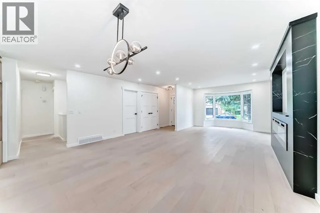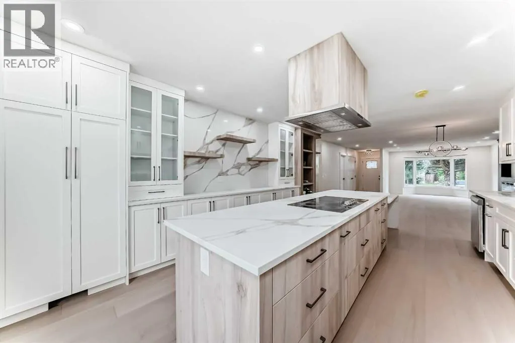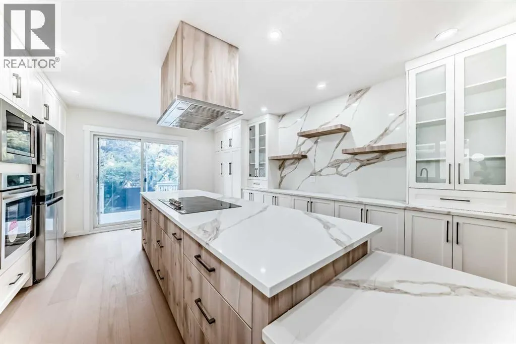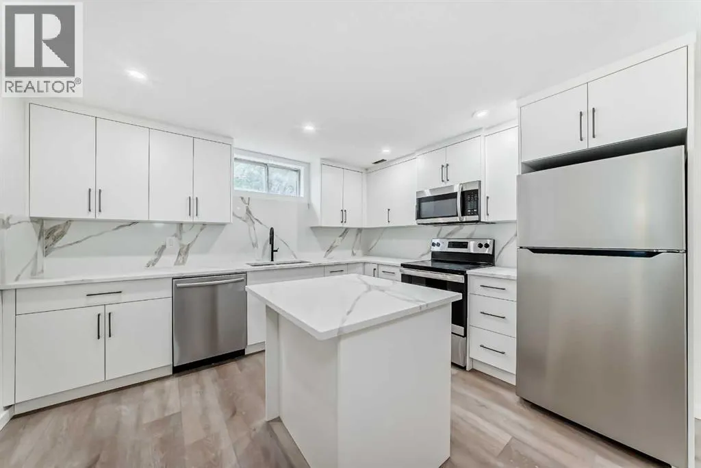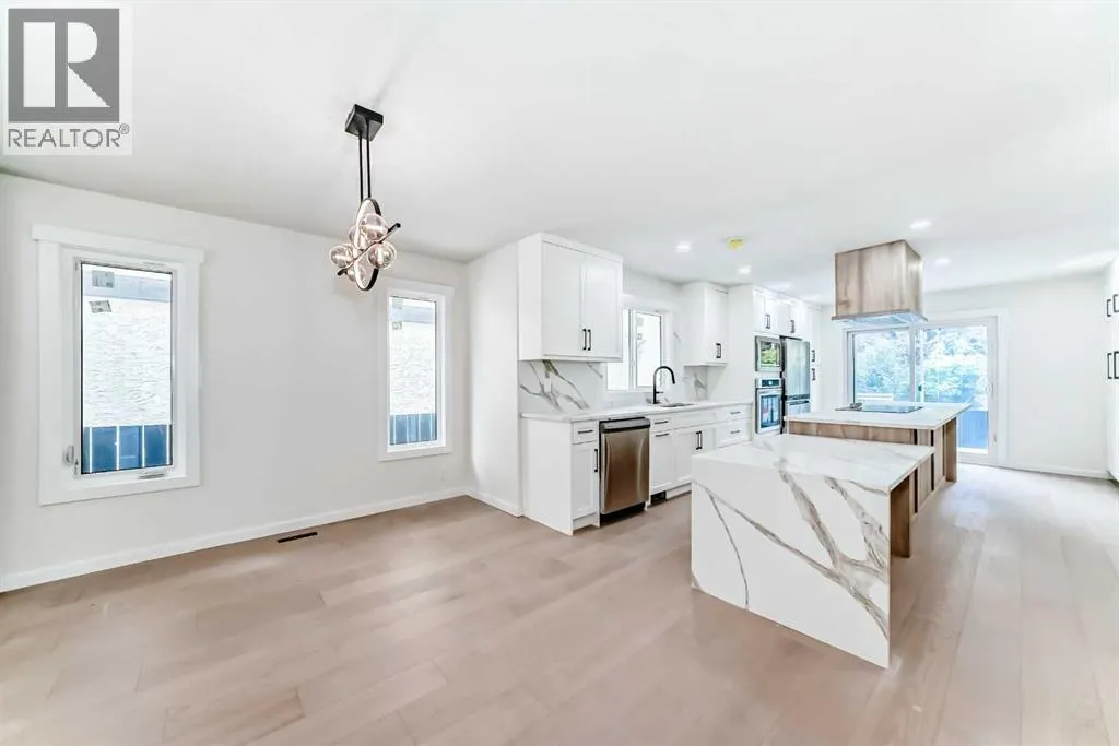 MOVE IN BEFORE CHRISTMAS . Welcome to this beautifully renovated bungalow located on a quiet street in the well-established community of Woodlands. With over 1,400 sq. ft. of living space on the main floor, this home offers the feel of a brand-new build combined with the charm of a mature neighborhood. Step inside to a bright and open-concept layout featuring brand new hardwood floors, a chef-inspired kitchen with all-new stainless steel appliances, and a massive islandâperfect for entertaining family and friends. The spacious living room boasts a cozy fireplace, and the dining area is ideal for hosting gatherings. The main floor includes three generously sized bedrooms, including a primary suite with a private 3-piece ensuite. Large new windows throughout provide an abundance of natural light. Downstairs, the fully finished basement offers incredible versatility with a second kitchen (including an island), three additional bedrooms, a full laundry room, and plenty of living space. With the potential for a separate entrance, this home can easily be suited for rental or multigenerational living. Additional upgrades include a new furnace, hot water tank, and a large private deckâperfect for enjoying summer evenings. Whether you're a growing family or looking for investment potential, this home is a must-see. (id:27476)