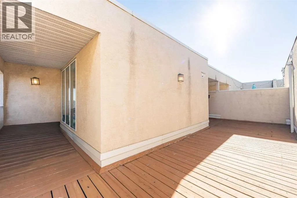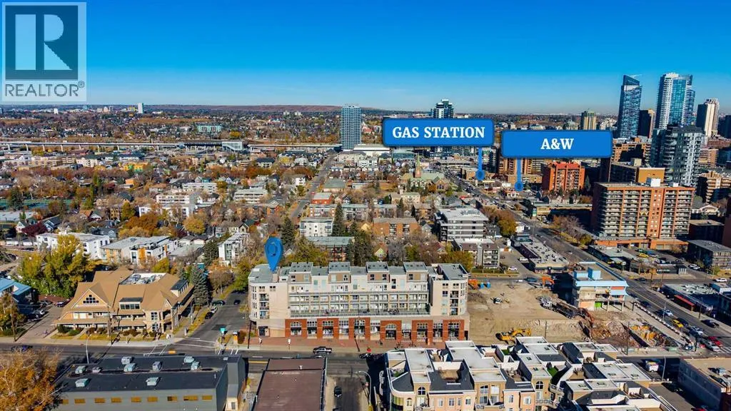 Welcome to a rare two-level penthouse in the heart of Sunalta. With one bedroom, two full bathrooms, a versatile den/loft, and over 900 square feet of living space, this unit blends downtown energy with real privacy. Floor-to-ceiling windows and 17-foot vaulted ceilings fill the space with natural light. Two private outdoor spaces, including a huge rooftop patio, offer incredible views and room to breathe.Inside, the kitchen has been completely redesigned with quartz countertops, custom cabinetry, and vinyl flooring. Itâs stylish, modern, and fully open to the dining and living areas. The main floor also features a spacious bedroom with balcony access, a four-piece bathroom, and a cozy gas fireplace.Upstairs, the skylit loft adds flexible square footage for a primary suite, studio, or second lounge. It includes a second full bathroom and direct access to the private rooftop patio. Itâs perfect for entertaining or unwinding above the city.Additional features include in-suite laundry, titled underground parking, f, and a strong, pet-friendly building. You are just steps from cafés, breweries, parks, bike paths, and transit. This unit is a true inner-city retreat with character, volume, and upgrades that stand out.Move-in ready. Turn-key. One of a kind. (id:27476)