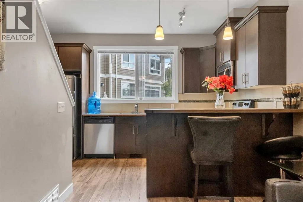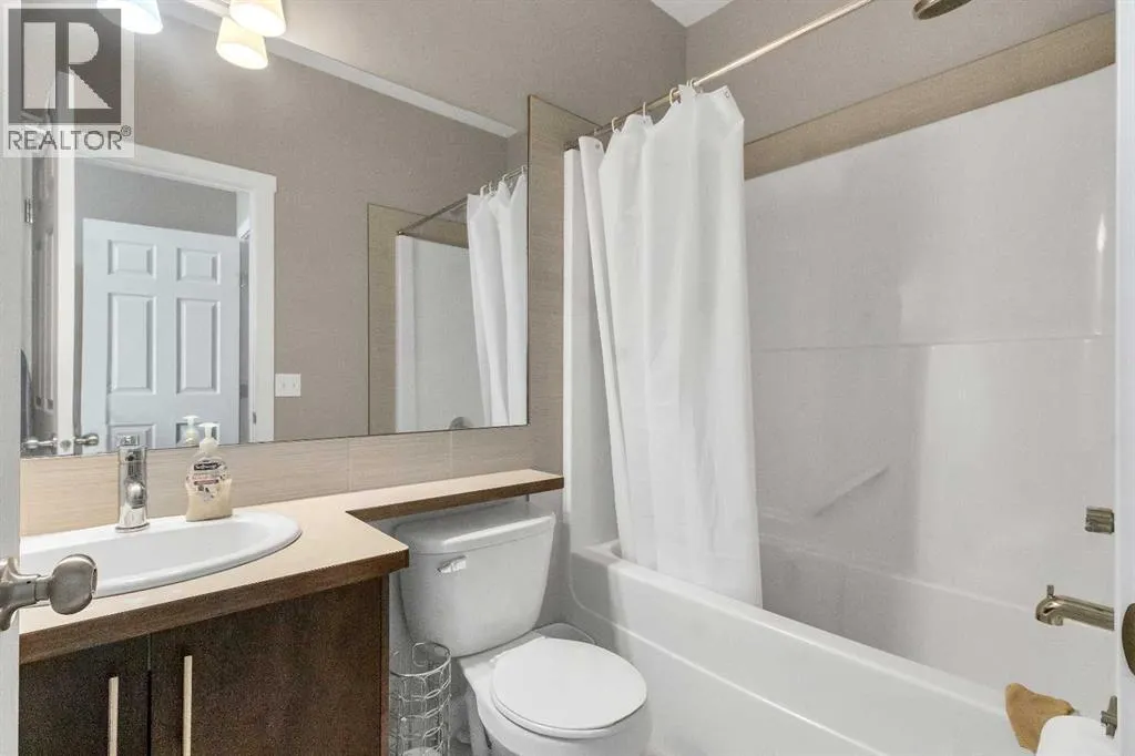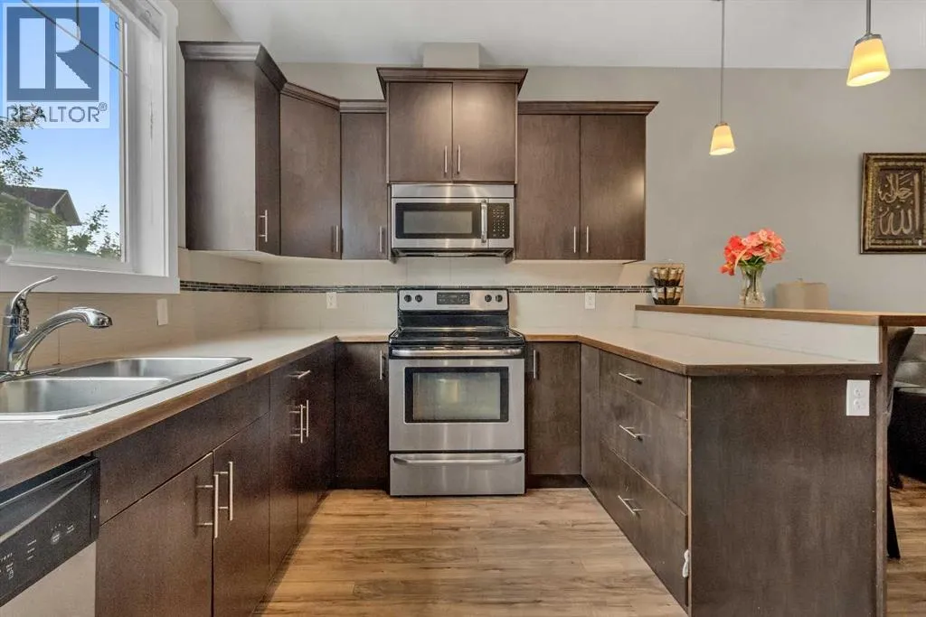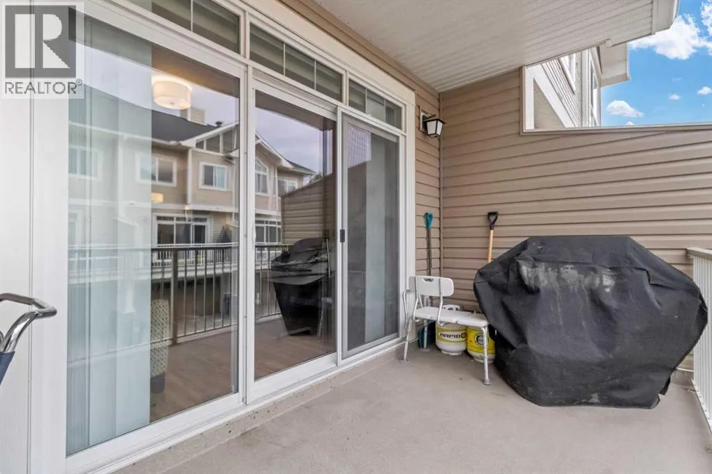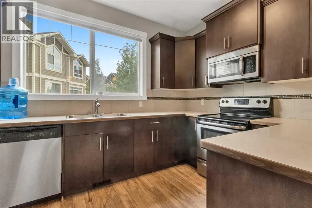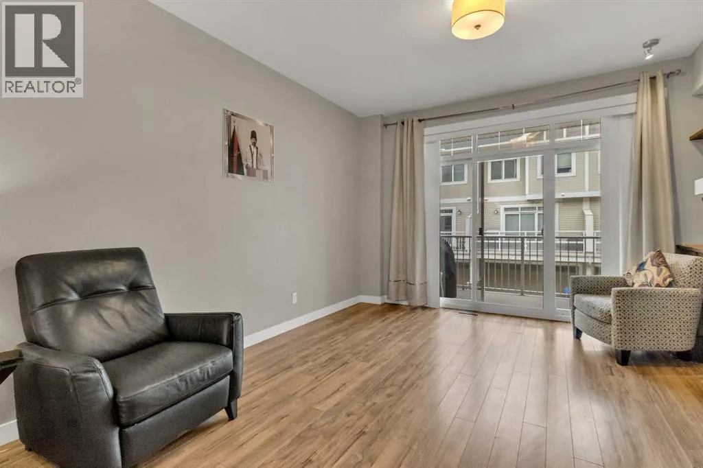 Welcome to this stylish and well-appointed 2-bedroom townhome in the vibrant community of Skyview Ranch. Thoughtfully designed for modern living, this multi-level home offers exceptional comfort, functionality, and convenience, complete with an attached single garage and two private balconies.The bright and open main living area features a spacious layout with large windows, allowing for an abundance of natural light. The contemporary kitchen is equipped with sleek cabinetry, stainless steel appliances, and ample counter space, making meal preparation a pleasure. The adjacent dining and living areas flow seamlessly, perfect for entertaining or everyday living. Step out onto the first of two balconies to enjoy fresh air and sunshineâideal for morning coffee or evening relaxation.Upstairs, you'll find two generous bedrooms, including a primary suite with beautiful transom windows and 4-pc ensuite. A full bathroom, convenient upper-level laundry, and ample closet space complete the upper floor. The entry level offers room for a home office or flex room and direct access to your attached single garage, providing both security and ease in all seasons.Located in a well-maintained complex close to parks, playgrounds, schools, shopping, and transit, this townhome offers a perfect opportunity for first-time buyers, young professionals, or investors. Donât miss your chance to own a beautiful home in the growing and family-friendly community of Skyview Ranch. Book your private viewing today! (id:27476)