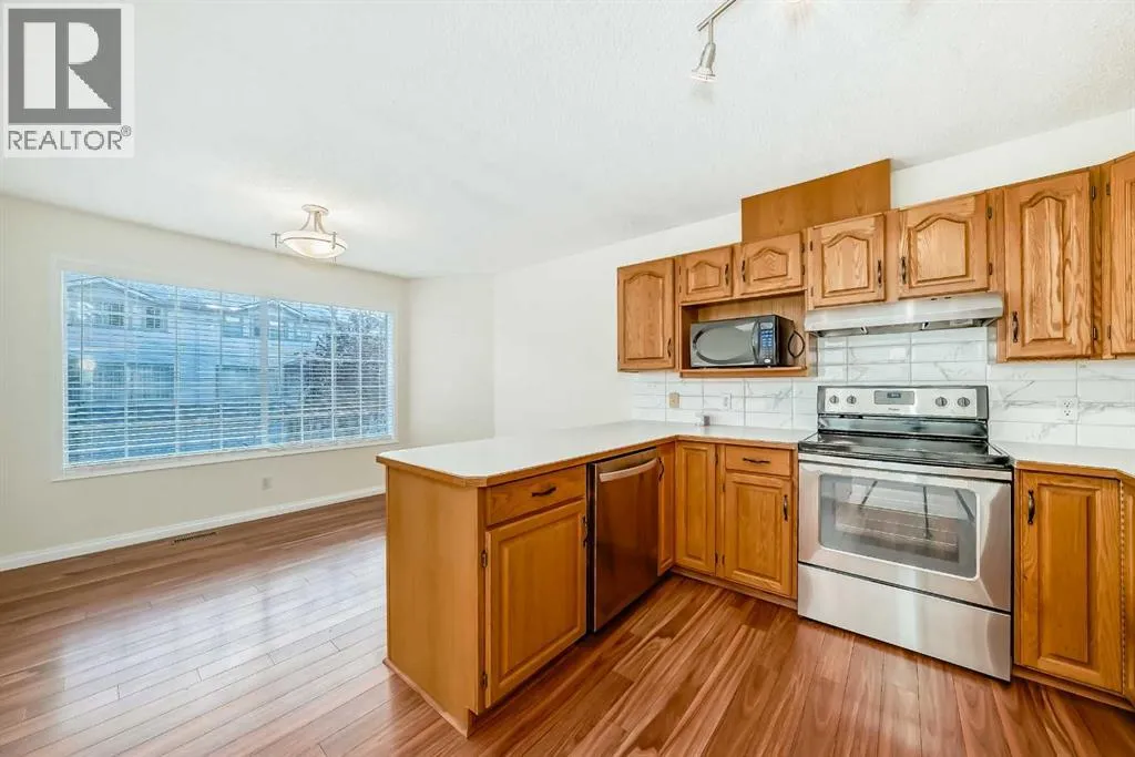 Welcome to 17 Kingsland Court SW â Bright, Spacious & Ideally Located!This beautifully maintained end-unit townhouse offers the perfect blend of comfort, style, and convenience. Featuring soaring ceilings, a cozy corner fireplace, and rich laminate flooring, the sun-filled living room opens directly onto a private back deckâideal for relaxing or entertaining.The spacious kitchen is equipped with stainless steel appliances, generous counter space, and a sunny eat-in dining area. Upstairs, you'll find three well-sized bedrooms and a full bathroom, including a luxurious primary suite with a walk-in closet and a private 3-piece ensuite.Additional highlights include:Single attached garageEast/west exposure for morning light in the kitchen and evening sun on the deckPartial basement for added storage or future developmentLocated in the heart of Kingsland, this home is close to grocery stores, C-Train, transit, restaurants, pubs, Chinook Centre, and schools. Plus, enjoy a quick 15-minute commute to downtown Calgary!Whether you're a first-time buyer, downsizing, or investing, this property checks all the boxes. Donât miss your chance to call it home! (id:27476)
