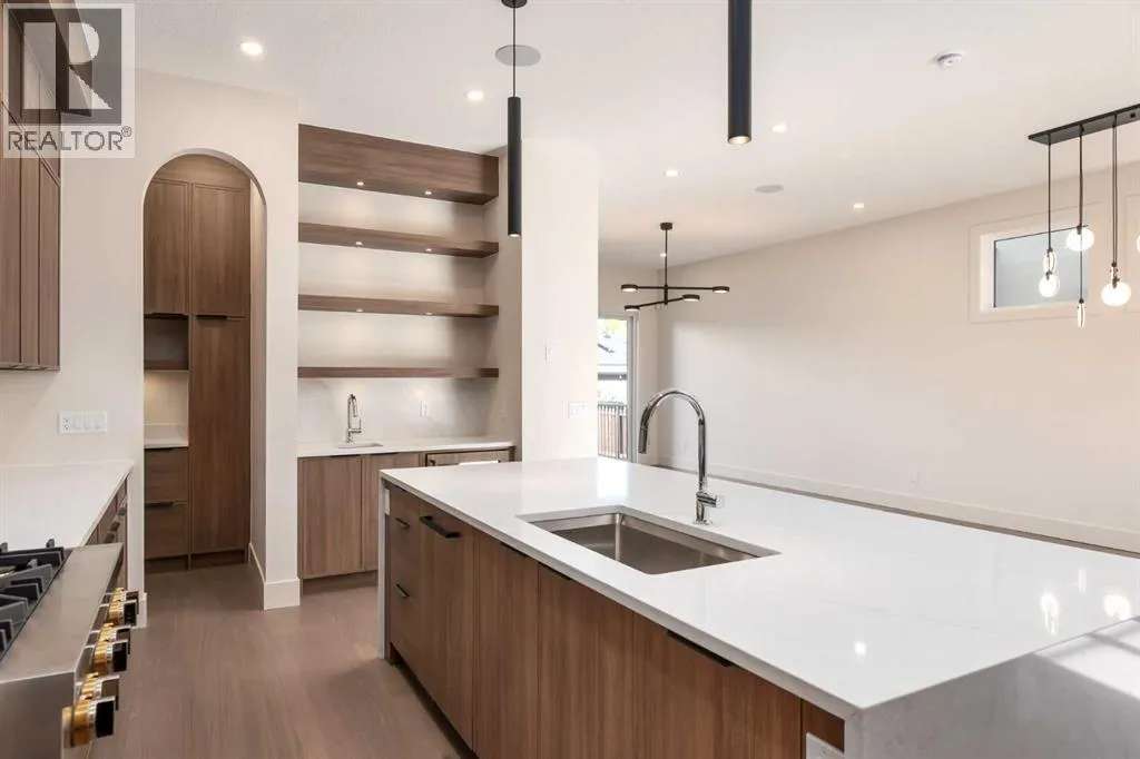 **CHECK OUT THE VIDEO TOUR** Life is full of magical moments, and this BRAND-NEW architectural masterpiece is one of them. Boasting over 3,443 sq. ft. of meticulously crafted living space, plus a 651 sq. ft. legal CARRIAGE SUITE, this residence embodies elevated inner-city living at its FINEST. From the bold exterior design to the meticulously curated interior finishes, every element of this home reflects refined LUXURY & urban edge. Step inside & prepare to be captivated. The open-concept living showcases soaring 10-foot ceilings, wide-plank hardwood floors, ceiling speakers throughout & EXPANSIVE windows that bathe every corner in natural light. The living area exudes modern ELEGANCE with a designer gas fireplace, custom built-ins & double French sliding doors leading to a SPRAWLING DECK, perfect for seamless indoor-outdoor entertaining. At the heart of the home lies a chef-inspired custom kitchen thatâs both functional & breathtaking. Outfitted with a premium JennAir stainless steel appliance package, sleek micro-shaker cabinetry & premium quartz countertops, itâs a space that invites creativity & conversation. The massive centre island, custom wet bar, and designer walk-through pantry make this a true entertainerâs dream. Every cabinet, fixture, and surface has been chosen to make a statement while maintaining timeless appeal. A beautifully designed mudroom with custom millwork & abundant storage connects the main living space to your backyard RETREAT & heated triple-car detached garage. Ascend the striking hardwood staircase, framed by floor-to-ceiling glass and designer railings, and discover a serene upper level with 9-foot ceilings & 8-foot SOLID CORE doors. The primary retreat is a true private SANTUARY, featuring a spacious walk-in closet with custom built-ins and a LAVISH 6-piece spa ensuite with a steam shower, freestanding soaker tub, double vanity, in-floor heating & designer porcelain tile. Two additional bedrooms share a STUNNING 5-piece bathroom, an d the upper laundry room - thoughtfully designed to add everyday convenience. The lower level extends the experience of LUXURY with 9-foot ceilings, a media and recreation area, custom wet bar, gas fireplace, fourth & fifth bedroom, rough-in in-floor heating & a beautifully finished 3-piece bath. PERFECT for movie nights, guests, or just unwinding in STYLE. Outside, enjoy a fully fenced backyard & LOW MAINTENACE landscaping. The triple detached garage adds not only function but flexibility - featuring a 1-bedroom legal CARRIAGE SUITE with its own bathroom, kitchen, laundry, balcony, private entrance & security cameras & alarm rough-in (house & garage). Ideal for multi-generational living, guests, or generating additional income without compromising privacy. Located in the prestigious inner-city enclave of Mount Pleasant, this home offers the perfect blend of luxury & lifestyle. Surrounded by tree-lined streets, steps from Confederation Park, trendy cafés, restaurants & minutes to downtown. CALL TODAY!! (id:27476)