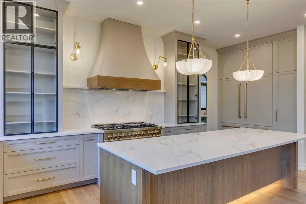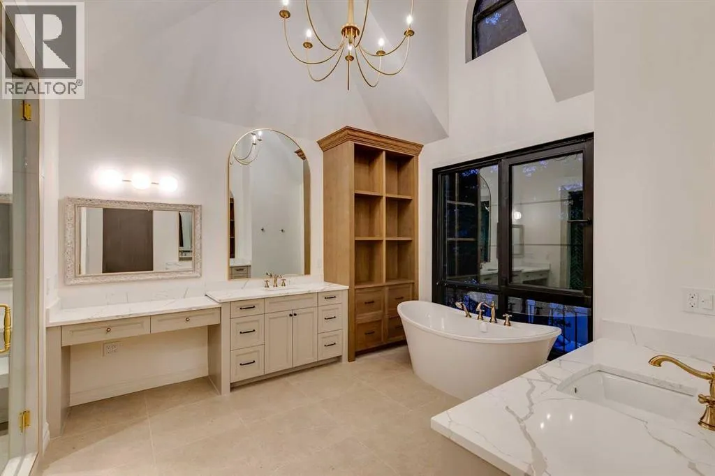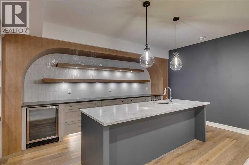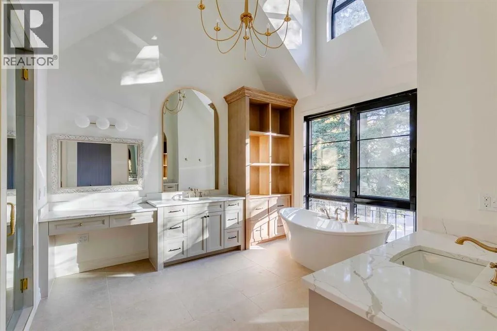 Sen Homes presents a stunning new estate home in the prestigious community of Upper Mount Royal, crafted to the highest standards and ready for occupancy. WITH 4,383 sq.ft. of meticulously developed living space, this home features three spacious upstairs bedrooms, each with walk-in closets and luxurious en-suites equipped with heated floors; the primary suite includes a steam shower and dedicated makeup counter. The main floor is thoughtfully designed with a custom mudroom, butlerâs pantry, private office, formal dining room, and an open-concept kitchen and living area. White oak hardwood flooring spans the main and upper levels, with hardwood accents continuing into the basement. Premium finishes include solid core doors and extensive custom millwork such as office built-ins and a coffee station in the primary suite. The fully developed lower level boasts a gym, an additional bedroom, a full bathroom, smart strand silk carpet and a generous recreation area complete with a stunning wet bar. Noteworthy highlights include European-style black-framed tilt-and-turn windows, in-floor heating in the basement, elegant architectural arches, updated hardware throughout, and more. Situated on a quiet, tree-lined street with a sunny west-facing backyard, the outdoor space includes a large deck with two gas lines (for BBQ and fire table/heater) and an oversized double garage that is insulated, drywalled, painted, & heatedâthis home is the epitome of luxury and function in one of Calgaryâs most sought-after neighborhoods. (id:27476)