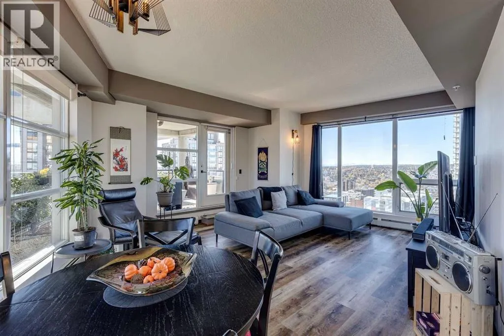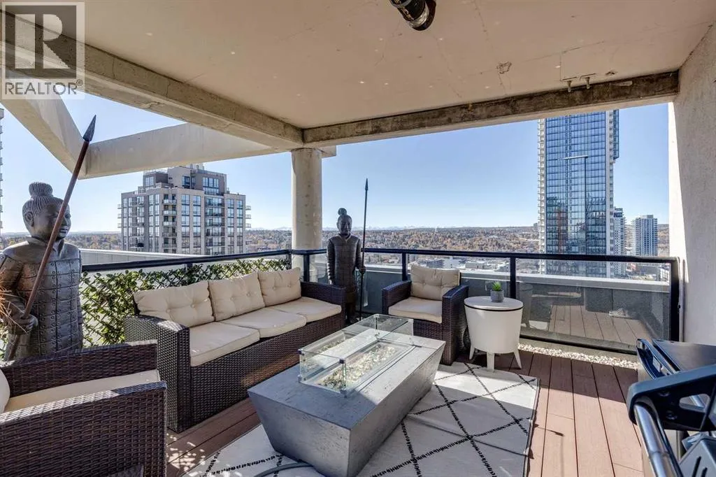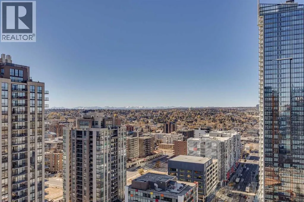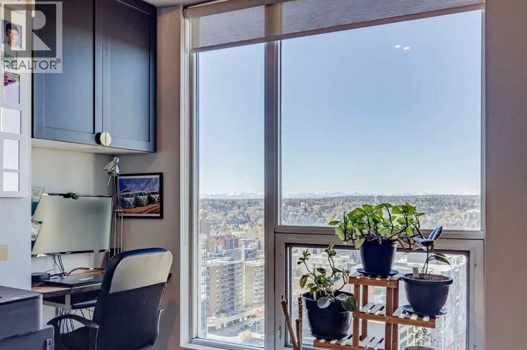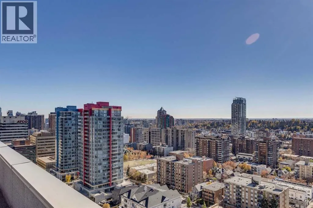 Experience the pinnacle of urban living in this rare sub-penthouse suite at Vantage Pointe. Perched on the 22nd floor with no neighbours on three sides, this residence offers unmatched privacy and breathtaking south and west views that stretch over the city, the river valley, and the Rocky Mountains. From this vantage point, you can watch spectacular sunsets paint the sky each evening â a daily show that never gets old.Step outside onto your private 150 sq. ft. rooftop patio â a true standout feature and an exceptional rarity in the building. Whether itâs morning coffee in the sun or evening cocktails as the mountains glow at dusk, this space is perfect for both entertaining and quiet relaxation.Inside, youâll find an elegant open-concept layout with 9-foot ceilings, granite countertops, stainless steel appliances, upgraded flooring, and the comfort of a newly installed 2 Ton air conditioning unit â a rare luxury in the building. The versatile second bedroom features a custom Murphy bed, allowing you to easily transition the space between a productive home office and a welcoming guest room.Residents of Vantage Pointe enjoy exceptional value with condo fees that include ALL UTILITIES, plus access to a full-time concierge/security, a fitness centre, and bike storage. A titled underground parking stall adds everyday convenience.Located in the heart of Midtown, youâre just steps from the Midtown Co-op, top schools including Western Canada High School, and an endless array of restaurants, cafés, and shops along 17th Avenue SW.Opportunities like this are exceptionally rare â a sub-penthouse with a private 150 sq. ft. rooftop patio, modern upgrades, and unbeatable sunset views. Donât miss your chance to call this one home. (id:27476)