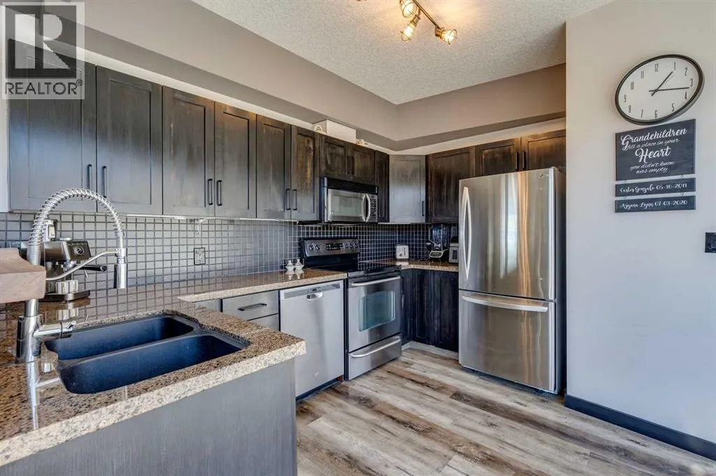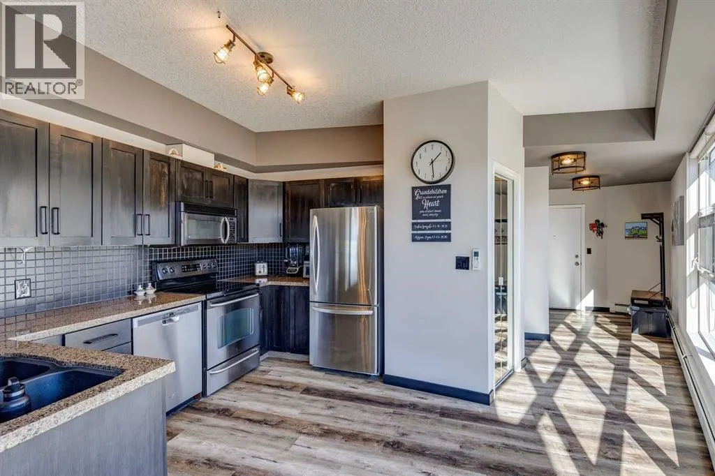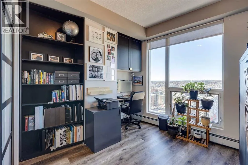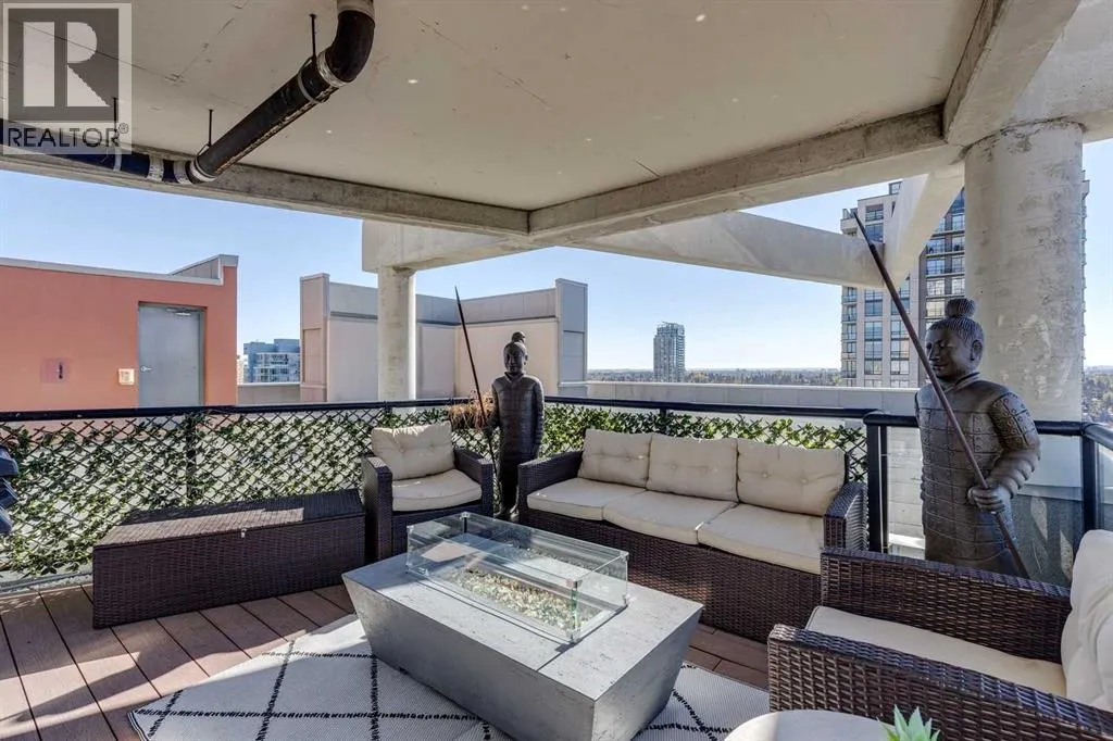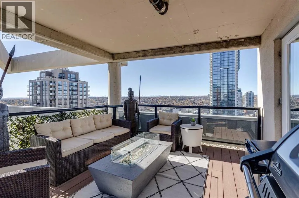 Experience the pinnacle of urban living in this rare sub-penthouse suite at Vantage Pointe. Perched on the 22nd floor with no neighbours on three sides, this residence offers unmatched privacy and breathtaking south and west views that stretch over the city, the river valley, and the Rocky Mountains. From this vantage point, you can watch spectacular sunsets paint the sky each evening â a daily show that never gets old.Step outside onto your private 150 sq. ft. rooftop patio â a true standout feature and an exceptional rarity in the building. Whether itâs morning coffee in the sun or evening cocktails as the mountains glow at dusk, this space is perfect for both entertaining and quiet relaxation.Inside, youâll find an elegant open-concept layout with 9-foot ceilings, granite countertops, stainless steel appliances, upgraded flooring, and the comfort of a newly installed 2 Ton air conditioning unit â a rare luxury in the building. The versatile second bedroom features a custom Murphy bed, allowing you to easily transition the space between a productive home office and a welcoming guest room.Residents of Vantage Pointe enjoy exceptional value with condo fees that include ALL UTILITIES, plus access to a full-time concierge/security, a fitness centre, and bike storage. A titled underground parking stall adds everyday convenience.Located in the heart of Midtown, youâre just steps from the Midtown Co-op, top schools including Western Canada High School, and an endless array of restaurants, cafés, and shops along 17th Avenue SW.Opportunities like this are exceptionally rare â a sub-penthouse with a private 150 sq. ft. rooftop patio, modern upgrades, and unbeatable sunset views. Donât miss your chance to call this one home. (id:27476)