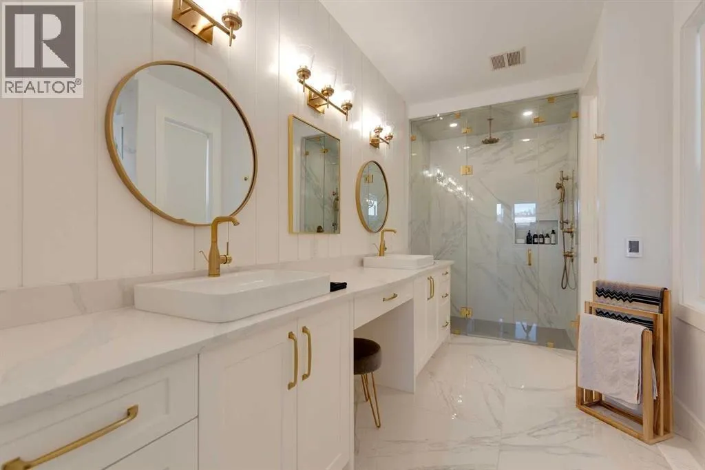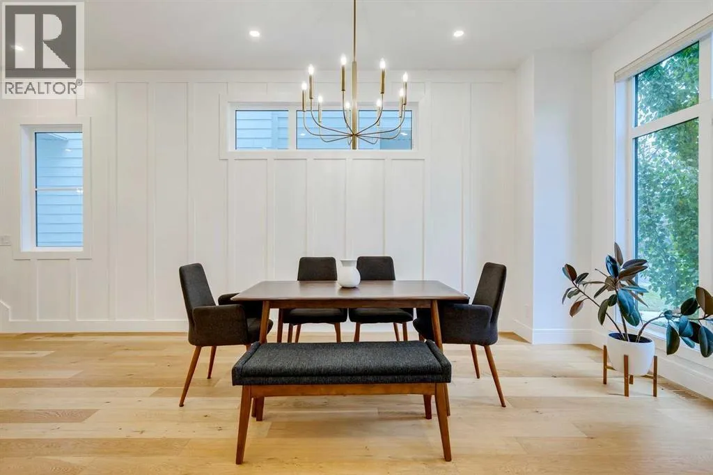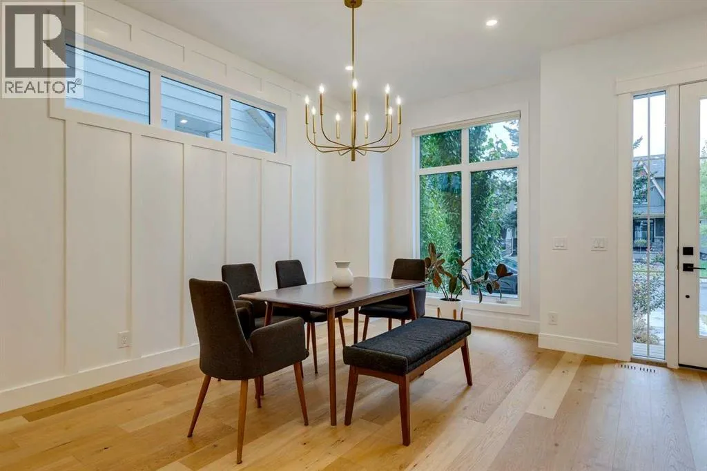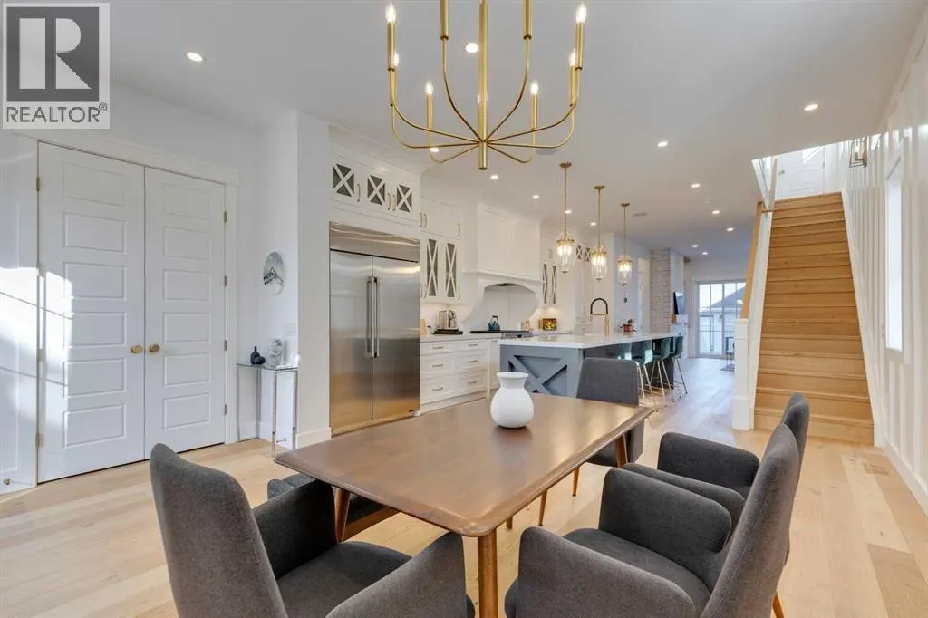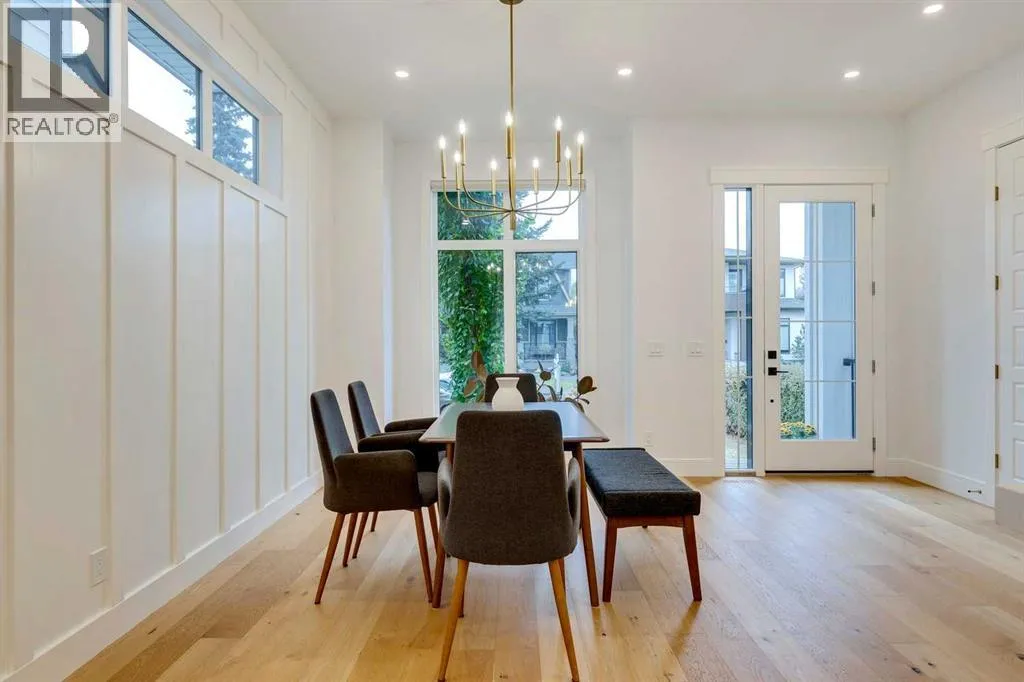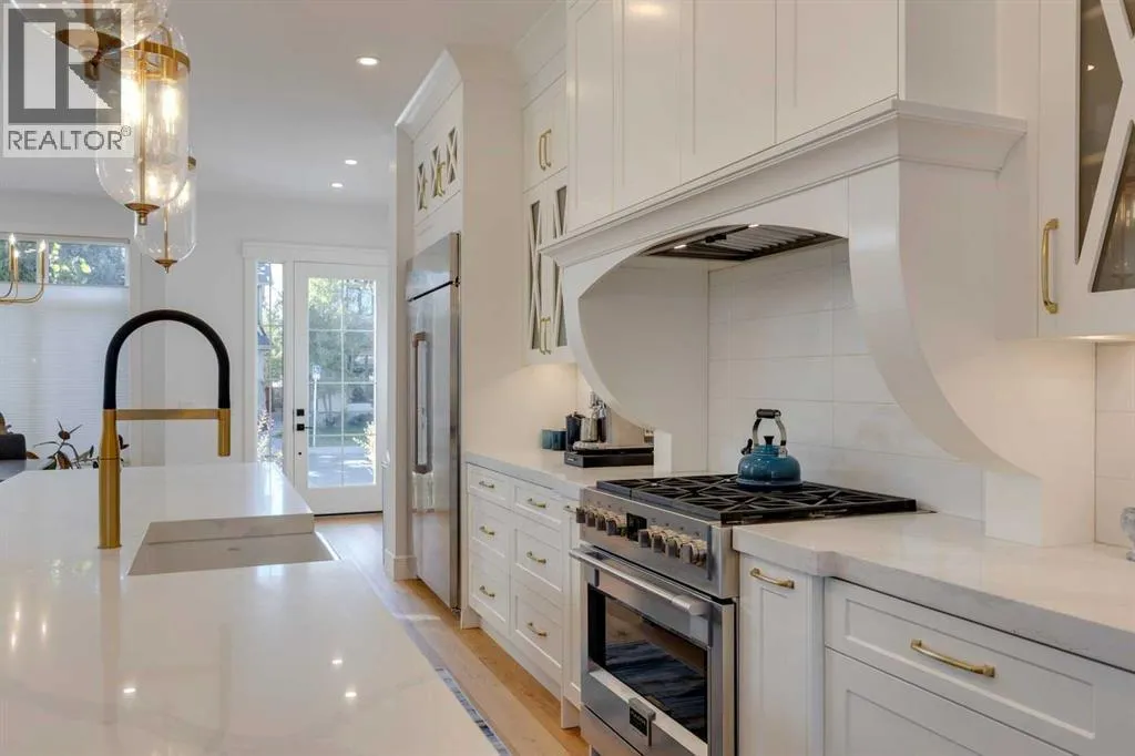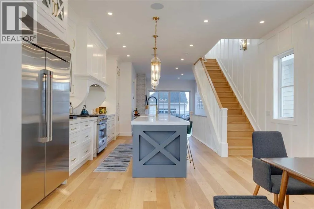 OPEN HOUSE NOV 16th 2-4pm! Experience refined inner-city living in this beautifully crafted modern home by Palatial Homes, a well-respected builder known for quality craftsmanship in the community. Offering over 2,600 sq. ft. of developed living space designed for todayâs lifestyle, every detail has been thoughtfully curated from the wide-plank engineered hardwood floors and 8â doors to the expansive windows that flood the home with natural light. The main level strikes the perfect balance of style and function, anchored by a gourmet chefâs kitchen featuring a large quartz island, ceiling-height cabinetry, and a Fulgor Milano gas range for the passionate cook. The adjoining living room invites relaxation with its sleek gas fireplace, built-in shelving, and sliding glass doors that open to a private back deck with metal railings perfect for summer evenings or weekend gatherings. Upstairs, youâll find three spacious bedrooms, including a peaceful primary suite with a beautiful walk-in closet and a serene spa-inspired ensuite featuring dual vanities, a freestanding soaker tub, heated floors, and a large glass-enclosed shower. Two bright bedrooms share a sleek full bathroom, while the convenient upper-level laundry adds an extra touch of everyday ease. The fully developed lower level provides flexibility for your lifestyle, complete with a large recreation area, wet bar, fourth bedroom (could also be utilized as home gym or office), and a full bathroom. The home is equipped with central air conditioning for year-round comfort and roughed-in in-floor heating for added warmth during the winter months. Perfectly situated within walking distance to top-rated community schools, just steps to Helicopter Park, the Bow River pathway system, shopping, restaurants, and Kensington, this home is a rare find. West Hillhurst is known for its friendly neighborhood spirit, outdoor swimming pool, skating rink, and active community association offering events, programs, and sports such a s soccer, hockey, and pickleball. With quick access to downtown, Foothills & Childrenâs Hospitals, the University of Calgary, and major roadways, this home truly offers inner-city living at its finest. (id:27476)