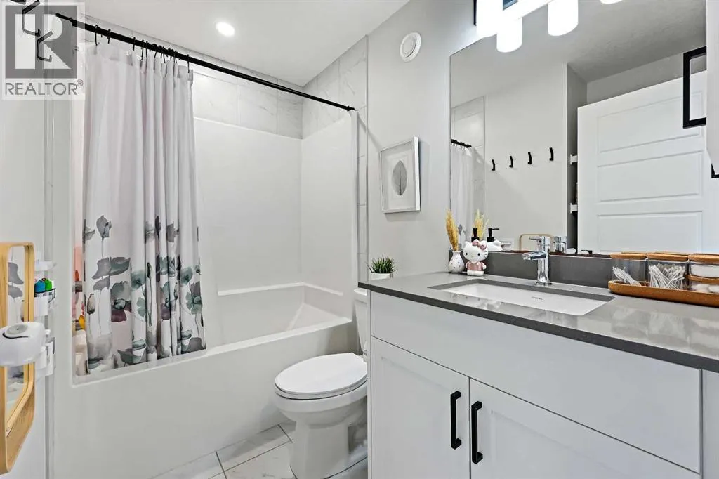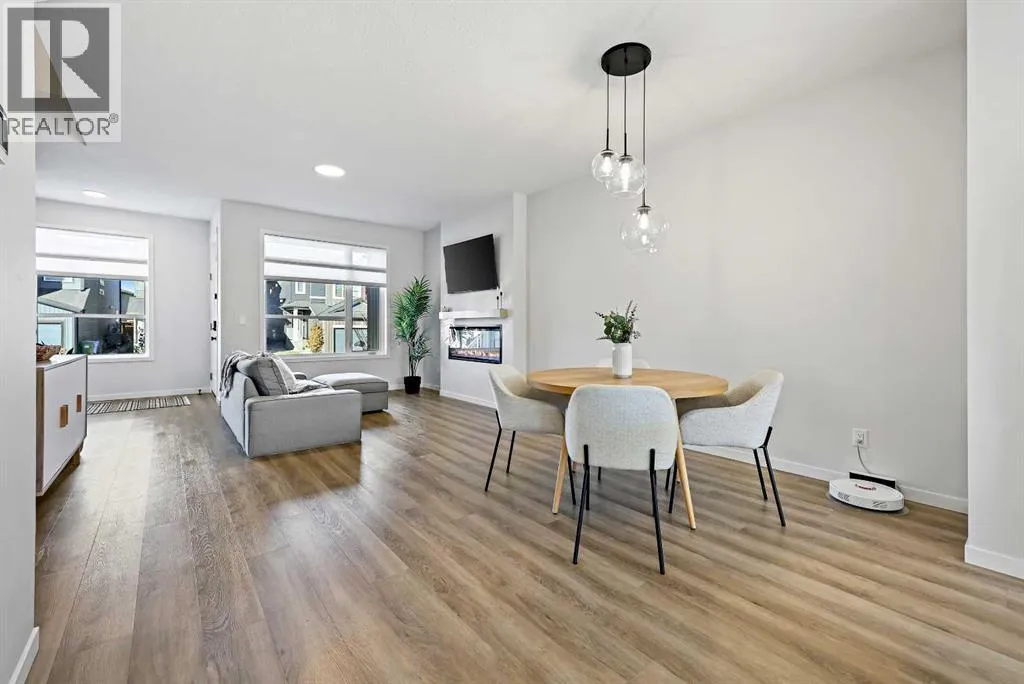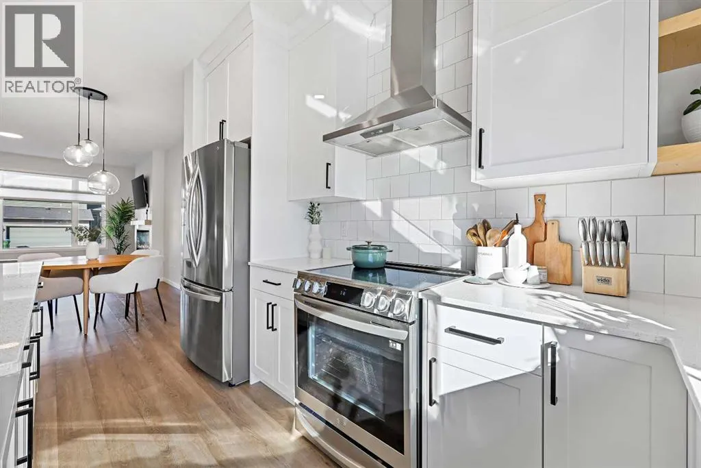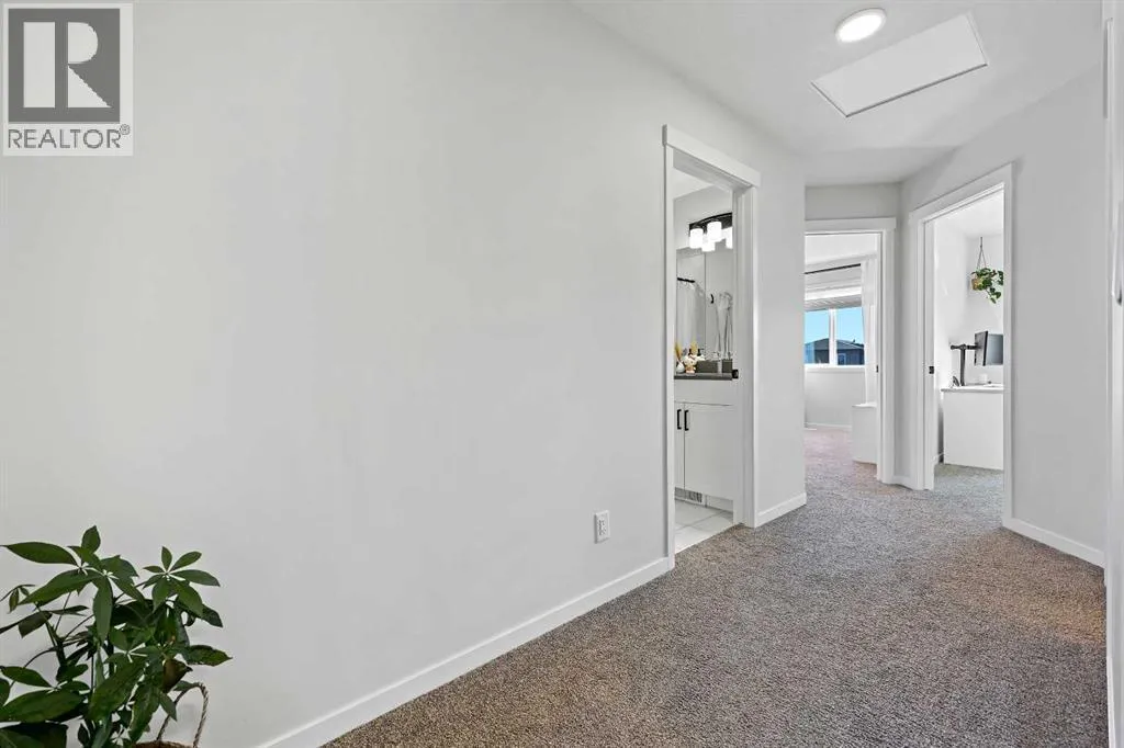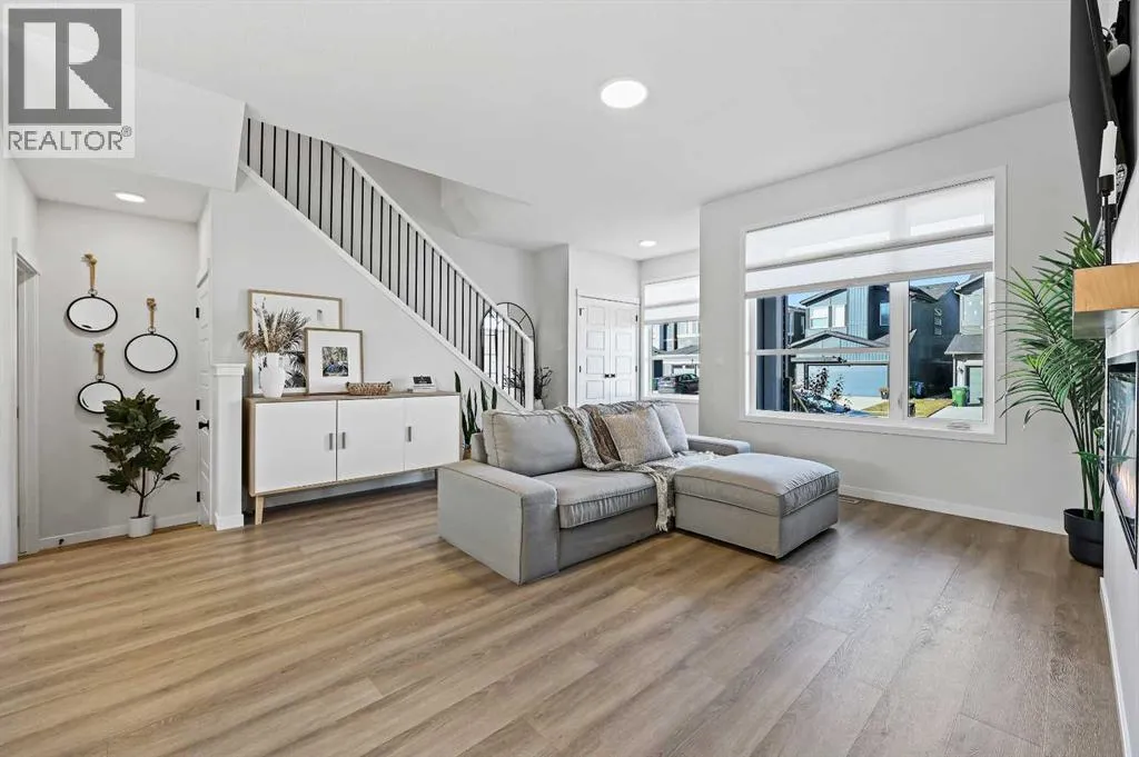 EXCITING NEW BOW RIVER COMMUNITY | TRUCK-SIZED 26' x 22' GARAGE | STEPS TO THE WOLF WILLOW DOG PARK | ORIGINAL OWNER | IMMACULATE CONDITIONAre you ready to live in one of Calgaryâs most exciting new communities? Welcome to Wolf Willow, a vibrant neighbourhood perfectly positioned just steps from the off-leash dog park, scenic ponds, pathways, parks, shopping, golf, and the breathtaking Bow River Valley and Fish Creek Park. With schools, South Health Campus, transit, and major south expressways nearby, this is the ideal blend of convenience and lifestyle.Meticulously maintained by the original owner, this Morrison-built home sits on a sunny, south-facing, oversized lot and features underground front-yard sprinklers, a newer 26â x 22â detached garage with a 9'8" ceiling height, a man door, and is fully insulated and drywalled. Offering over 1,529 sq. ft. of stylish living space, this home features 3 bedrooms, 2.5 bathrooms, and an unspoiled basement ready for your personal touch. Bonus: Dual-tank, non-electrical water softener system.Step inside to a bright, open-concept design highlighted by 9' ceilings, luxury wide-plank flooring, and a cozy electric fireplace. The chef-inspired kitchen is the showpiece of the main floor, showcasing:Ceiling-height cabinetry with classic white shaker doorsQuartz countertops and a full-height white subway-tile backsplashCentral island with seating for four and a white under-mount granite sinkUpgraded stainless steel appliances, including a slide-in range, built-in microwave, and chimney hood fanWalk-in pantry with a custom sliding barn door and stylish recessed lightingA smartly designed rear mud room with wood wall detailing and a half bath leads to the low-maintenance backyard featuring an 18' x 12' concrete paver patio and walkwayâperfect for BBQs and entertaining.Upstairs, the primary retreat offers a spa-like 3-piece ensuite and a walk-in closet. Two additional bedrooms, a full bath, and an upper laundry room complete the family-friendly layout.Additional upgrades include modern LED lighting, upgraded plumbing fixtures, custom feature walls, and a covered front porch that adds welcoming curb appeal accented by stonework.This home is more than just a place to liveâitâs a lifestyle, with nature, community spirit, and urban conveniences right at your doorstep.Donât waitâbook your private showing today with your favorite REALTOR®! (id:27476)
