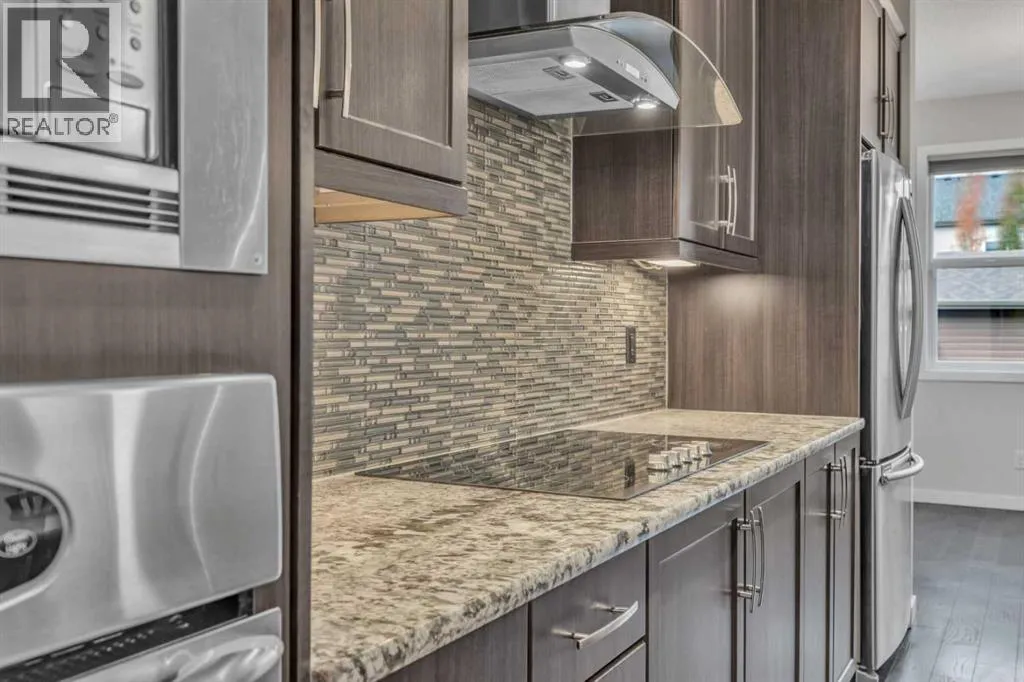 Welcome to this stunning and well-upgraded duplex located in the beautiful and quiet community of Chaparral Valley in Calgary! This stylish home offers a perfect blend of comfort, elegance, and functionality, surrounded by nature and close to everything you need. Step inside through the formal front entry and youâll immediately notice the high-quality finishes throughout â wide-planked hardwood floors, Hunter Douglas blinds, and granite countertops that add a touch of luxury. The gourmet kitchen is every cookâs dream, featuring a large central island with seating, a built-in oven, electric cooktop, chimney hood fan, and a full stainless steel appliance package. The open-concept main floor includes a bright dining area and a cozy living room, perfect for family gatherings or entertaining guests. A convenient mudroom at the back keeps shoes and coats neatly tucked away. Upstairs, youâll find three spacious bedrooms, including a lovely primary suite with His & Hers closets and a private ensuite bathroom, providing the perfect place to unwind. The other bedrooms are ideal for kids, guests, or a home office. Step outside to a sunny backyard with lots of green space â perfect for BBQs, outdoor relaxation, and room for kids or pets to play. Thereâs also a double detached garage offering plenty of storage and parking space. Located close to a large park and playground, this home is perfect for families. Chaparral Valley is surrounded by the natural beauty of the Bow River Valley, with scenic walking and biking pathways that connect to Fish Creek Park and the Bow River, as well as easy access to the Blue Devil Golf Course right in your backyard. Commuting is simple with quick routes to Stoney Trail, Macleod Trail, and Deerfoot Trail. This is more than just a home â itâs a lifestyle where comfort meets convenience and nature is never far away. (id:27476)