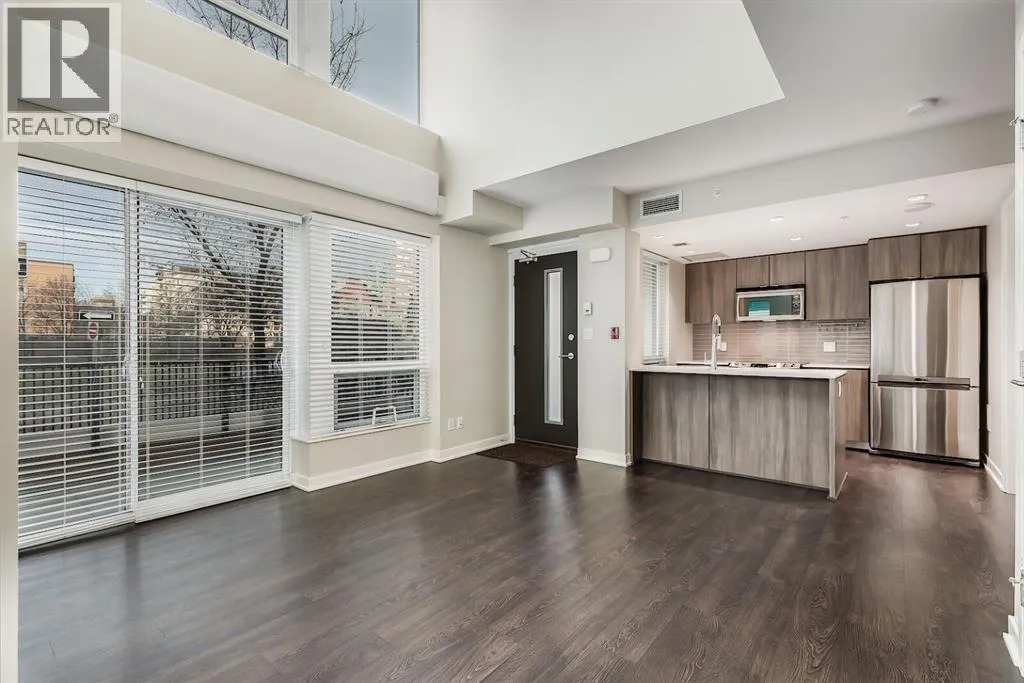 Experience the perfect balance of townhome convenience and condo living in this modern southwest corner residence located within the highly regarded Calla building. Overlooking the park and surrounded by the best of the Beltline community, this home offers a unique blend of lifestyle, design, and practicality.Set in the heart of Beltline â ranked as Avenue Magazineâs #1 community â this property offers exceptional walkability with a Walk Score of 95, placing shopping, dining, Sheldon Chumir Hospital, and public transit just steps from your door. The home features two private entrances and two oversized patios â one measuring 7â2â x 15â4â and the other 11â3â x 23â0â, offering a combined outdoor space of approximately 348 sq. ft.. With one south-facing and one west-facing, they are perfect for outdoor entertaining or relaxing with views of the park.Inside, soaring 18-foot floor-to-ceiling windows flood the living space with natural light from both the south and west, highlighting the open-concept layout and durable laminate flooring throughout the main living areas and bedrooms. The spacious primary suite includes an ensuite bathroom and a Juliet balcony overlooking the park, while the versatile second bedroom with a walk-in closet is ideal as a home office or additional living space.The gourmet kitchen is equipped with a quartz island and ample storage, making it ideal for both meal preparation and entertaining. Everyday living is made easier with in-suite laundry featuring new machines and central air conditioning for year-round comfort.Residents of Calla enjoy a full range of premium amenities including a concierge service, secure building access, a fully equipped fitness centre, yoga studio, sauna/steam room, guest suite, and visitor parking. Secure underground parking and bike storage are included, along with both in-suite storage and a secured locker for additional space.This modern townhome combines the privacy and ease of a standalone residence with the convenience and amenities of a well-managed condominium. Perfectly situated in one of Calgaryâs most vibrant inner-city communities, this home is ready to welcome its next owner.Contact us today to schedule your private viewing or learn more about this exceptional property. (id:27476)