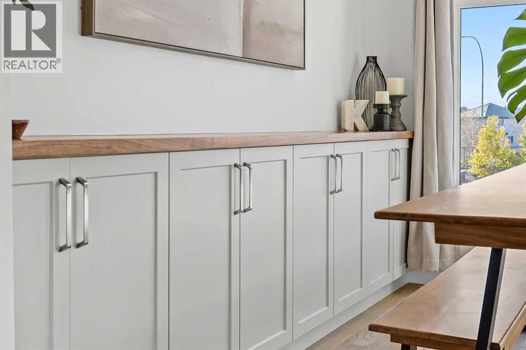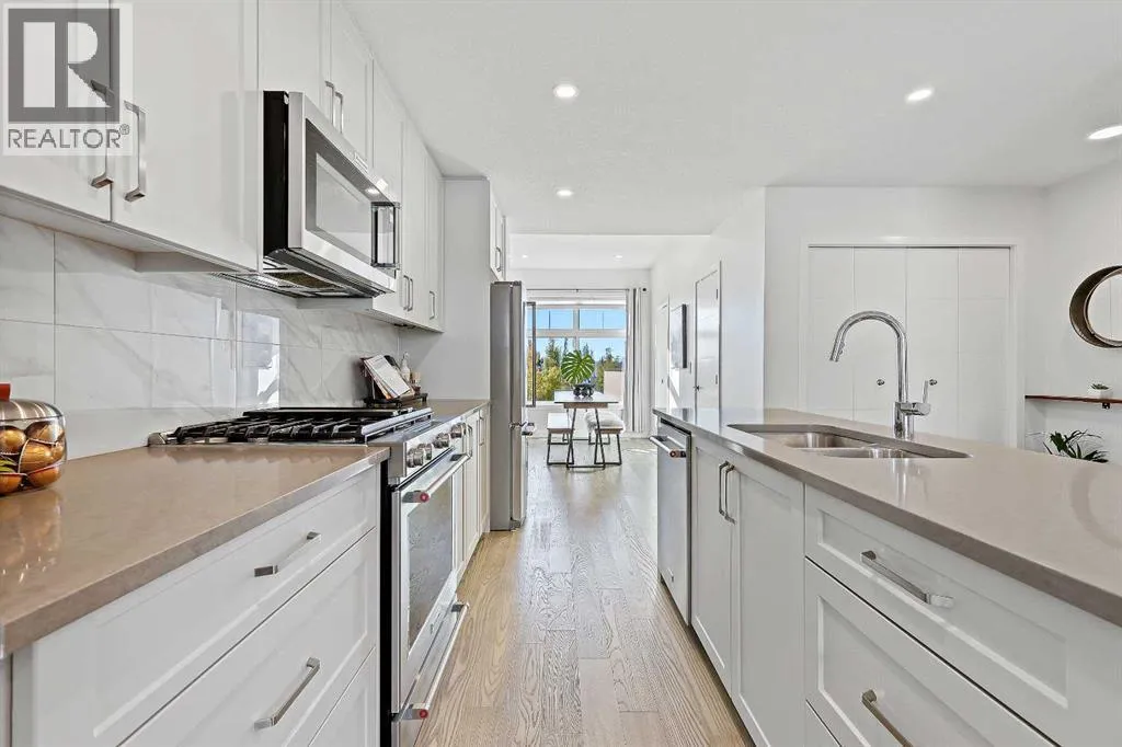 Welcome to this beautifully upgraded 2-bedroom plus flex room, 2.5-bath townhome where thoughtful design and exceptional craftsmanship shine through every detail. Set in the coveted Les Jardins community next to Quarry Park, this home blends stylish living with low-maintenance ease â surrounded by French-inspired gardens, lush green space, and walkable convenience.Step inside and immediately feel the difference â a light-filled, open-concept plan enhanced by soaring ceilings, wide plank hardwood flooring, abundant custom millwork, and purposeful upgrades throughout. The kitchen features extended cabinetry with a matching sideboard and maple countertop, custom pantry shelving, and a redesigned island with added drawers and a full backboard for extra storage and style.The entryway and laundry room continue the custom theme with a built-in coat closet, maple shelving, laundry countertop, and drying rod â all tailored for smart everyday living. Unlike others youâve seen, just off the heated attached garage youâll find a versatile main-level office or flex room with its own private entrance â perfect for a home-based business, gym, or creative studio. This added flexibility makes the home ideal for modern lifestyles and work-from-home comfort.Meticulously cared for with fresh paint (2023), A/C serviced (Sept 2024, barely used), carpets and vents cleaned (Sept 2025), and filters (furnace, Lifebreath, and humidifier) changed quarterly. Technology and convenience abound with full Alexa smart-home integration controlling lights, music, doorbell, heating, and air â plus pre-mounted TV wiring, a wireless Ring camera, and solar panels on each unit. The attached heated garage even features hot and cold water hookups, perfect for year-round use.Outside, life at Les Jardins feels like a retreat â enjoy 70,000 sq. ft. of manicured gardens, a gym, community gardens, outdoor lounge areas with umbrellas and fire pits, and even a dedicated dog play park near the underground ent rance. Everything you need is right here.This home perfectly balances luxury, practicality, and peace of mind â all in one of Calgaryâs most thoughtfully designed communities. Come experience the beauty, the care, and the lifestyle that truly set this one apart. You wonât be disappointed. (id:27476)