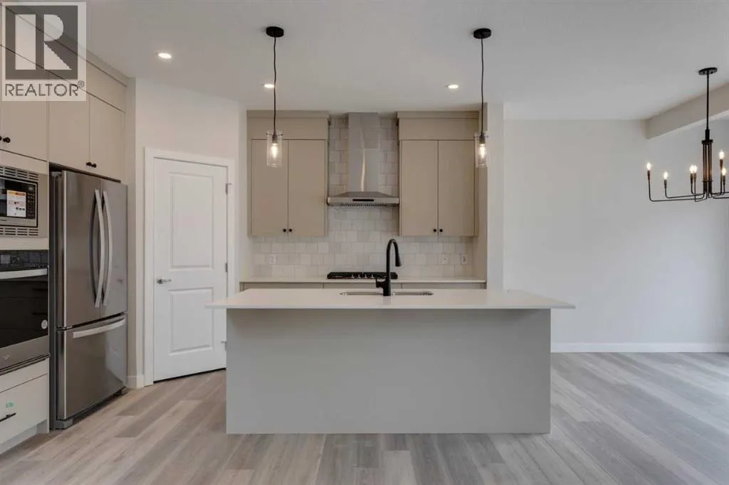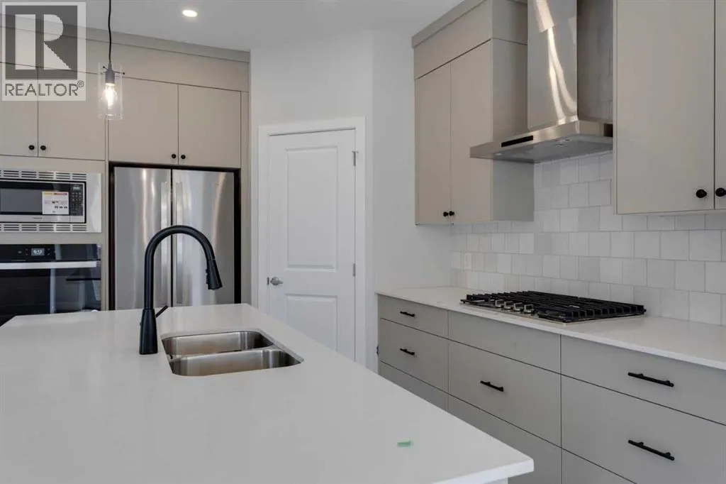 Immediate possession available! The Alston by Shane Homes offers 1,959 sq ft of beautifully designed living space in the scenic community of Glacier Ridge. This 3-bedroom, 2.5-bath home features a bright foyer leading to a central kitchen with a large island, quartz countertops, and a walk-in corner pantry. The open layout connects the kitchen to the rear dining nook and living room, creating the perfect space for entertaining. A side entry provides flexibility for potential future development. Upstairs, a central family room separates the ownerâs bedroom âcomplete with 3-piece ensuite and walk-in closetâfrom two additional bedrooms, each with their own walk-in closet. A 3-piece main bath and convenient second-floor laundry with open shelving complete the upper level. Built with Shane Homesâ signature quality and thoughtful design, this move-in-ready home offers comfort, functionality, and lasting style. Photos are representative. (id:27476)
