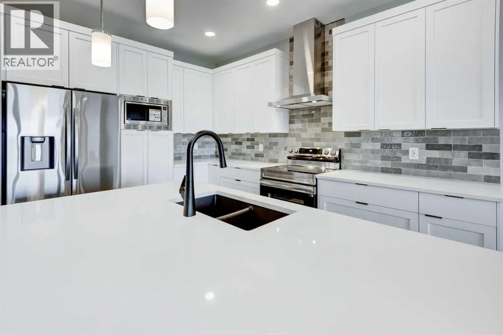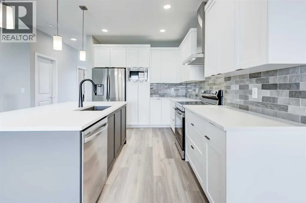 CELEBRATE THE HOLIDAYS IN YOUR BRAND NEW HOME!! Welcome to Your Dream Home in Calgary's finest LAKE COMMUNITY â Where Luxury Meets Practical Living! Step into this brand new, never lived in masterpiece built by EXCEL HOMES â the upgraded BERKLEY model offering 1872 sf of contemporary design and exceptional functionality. The open-concept floor plan seamlessly connects the living room w/big windows & electric fireplace, central dining area, and showstopper kitchen â the true heart of the home. Cook like a pro in your chef-inspired kitchen that boasts loads of Eng stone countertops, large island & walk in pantry! At the rear of the home, a versatile flex room provides the ideal space for a home office or playroom, & a 2 piece bathroom! An elegant black metal railing leads upstairs. Here you'll find three spacious bedrooms including a stunning primary suite with a walk-in closet and private ensuite w/dual sinks. A vaulted bonus room with pot lighting is centrally positioned to separate the 2 secondary bedrooms from the primary suite & vaulted ceilings adds an elevated family retreat. The convenient upper-level laundry room makes day-to-day living easier. Thinking about rental income or extended family options? This home is roughed-in for a legal two-bedroom suite, with a separate exterior side entrance (city permits and approvals required). As a Certified Built Green home, youâll benefit from energy-saving features and smart home tech, including Ring doorbell, Wi-Fi-enabled garage opener, smart thermostat, extra CAT6 and USB outlets, plus 9' knockdown ceilings, metal stair railings, and luxury vinyl plank flooring on the main level. Whether you're a growing family, savvy investor, or multi-generational household, this is the home you've been waiting for. Move in, unpack, and start living your best life in Mahogany!!! With over 35 years of experience, over 15,000 homes built & 75 awards for design & industry excellence, Excel Homes is a wise choice! (id:27476)