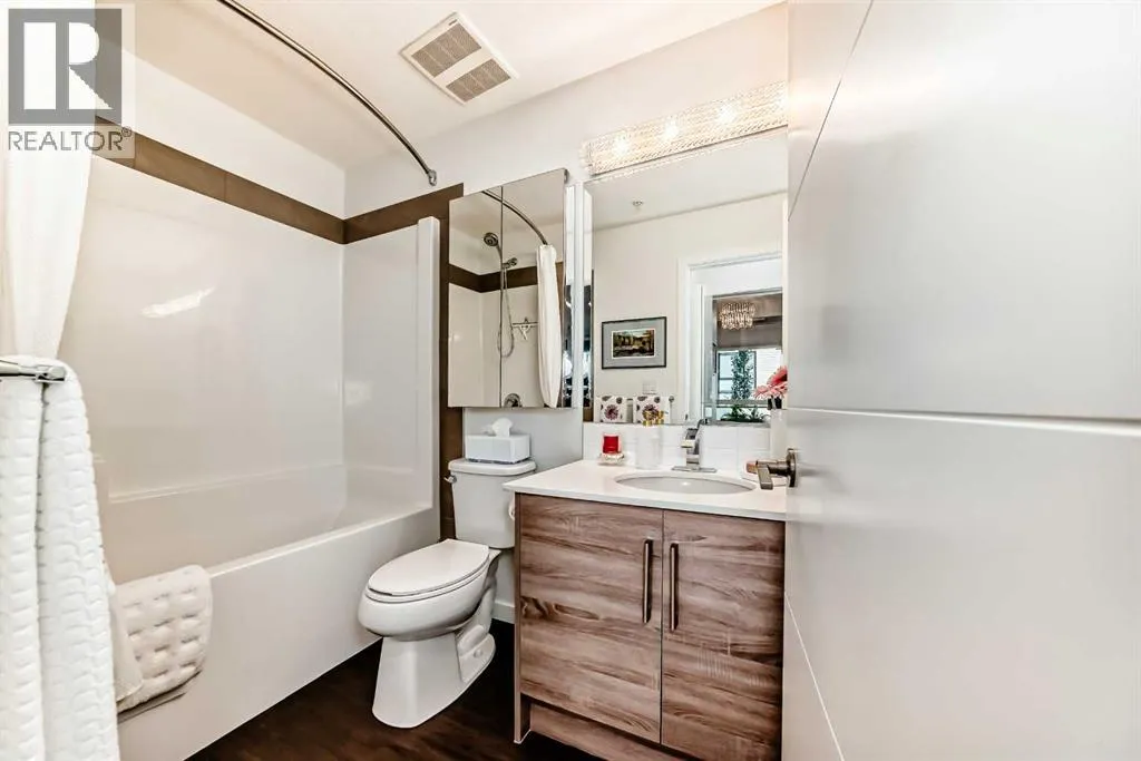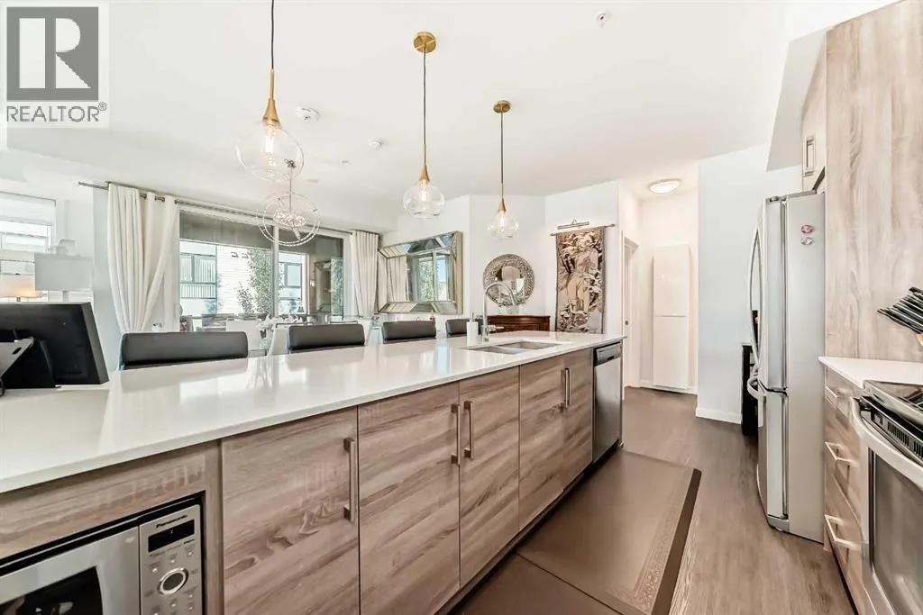 Welcome to this stunning, ONE-OF-A-KIND, two bedroom + den, two bath, two titled premium side by side parking stalls, NW facing, prestigious Calligraphy, Westman Village home. This home SCREAMS RARE, LUXURY, SOPHISTICATION, UNIQUE. This Original owner home boasts over 1045 sq.ft of indoor living space. You can enjoy relaxing or entertaining on your covered wrap-around 600 sq.ft. balcony. For those who cringe at the thought of losing their garden space, this homeowner has created a garden oasis that will be sure to delight any avid gardener. Many of the pots will be left behind to enjoy, along with tens of thousands of dollars of additional items (see agent remarks) Once inside this modern and sophisticated ultra upgraded unit you notice the stylish stainless appliances, luxury vinyl flooring, cabinets which go all the way up and are designed to offer an abundance of storage. This kitchen is a dream for any cook who can summon that inner chef, from the expensive quartz countertop which provides a warm and inviting atmosphere, to the oven & cooktop which makes the kitchen a perfect place to prepare meals and entertain guests. The unit is equipped with forced air heating and Central air to keep you comfortable year-round. Everywhere you turn you notice the attention to detail. Upgrades included: flooring, all lighting fixtures, several motion sensor light switches, over 50% of kitchen cabinets have high end pull out drawers built in, balcony water faucet. The Calligraphy/Westman Village community resort is unprecedented, with endless amenities! You will not see anything similar elsewhere. The Village Centre complex includes over 40,000 sq ft of amenities spread over 3 stories with 24 hr on-site security. You will never run out of things to do. Amenities include electric vehicle charging, car & pet wash, bike storage, fire pit, playground, resident-only off-leash dog space and outdoor gathering spaces with lounge chairs. In this complex you also gain access to the high-end fitness centre, golf simulator, wine vault, marketplace, library, gymnasium, saltwater pools with waterslide, hot tub, steam room, demo kitchen, party room, pool tables, theatre, art room, woodworking room, and walking track. Additionally, the Village Centre is home to Mode Fitness and JC Spa and Salon. Within walking distance, you'll find a variety of stores and restaurants, including Chairman's Steakhouse, Alvin's Jazz Club, Marble Slab, Diner Deluxe, Analog Coffee, Five Vines liquor store, dry cleaning, pharmacy, and so much more. Just blocks away is Mahogany Village Market and numerous restaurants, and shopping. As a resident of Westman Village, you'll have full lake access to the Main Beach area and are steps away from West Beach, where you can enjoy swimming, kayaking, picnic areas and other outdoor activities. The Village Centre amenities are truly impressive, offering a full slate of monthly activities, from art & wine events to movie night and pickleball. Book your showing today. (id:27476)