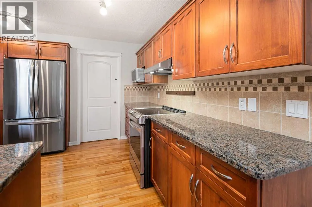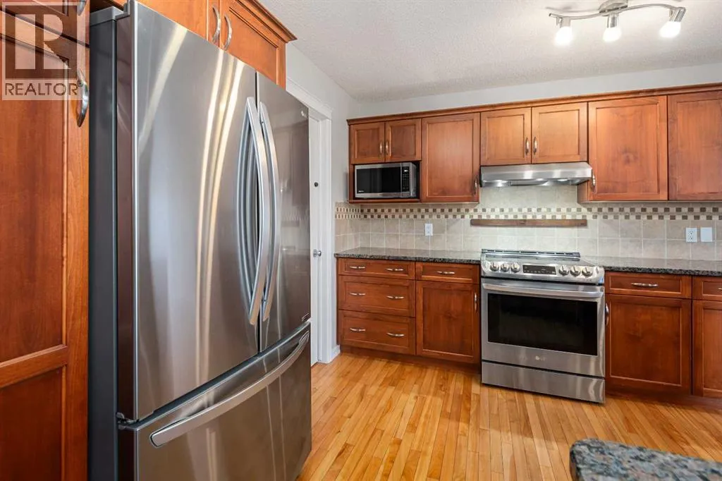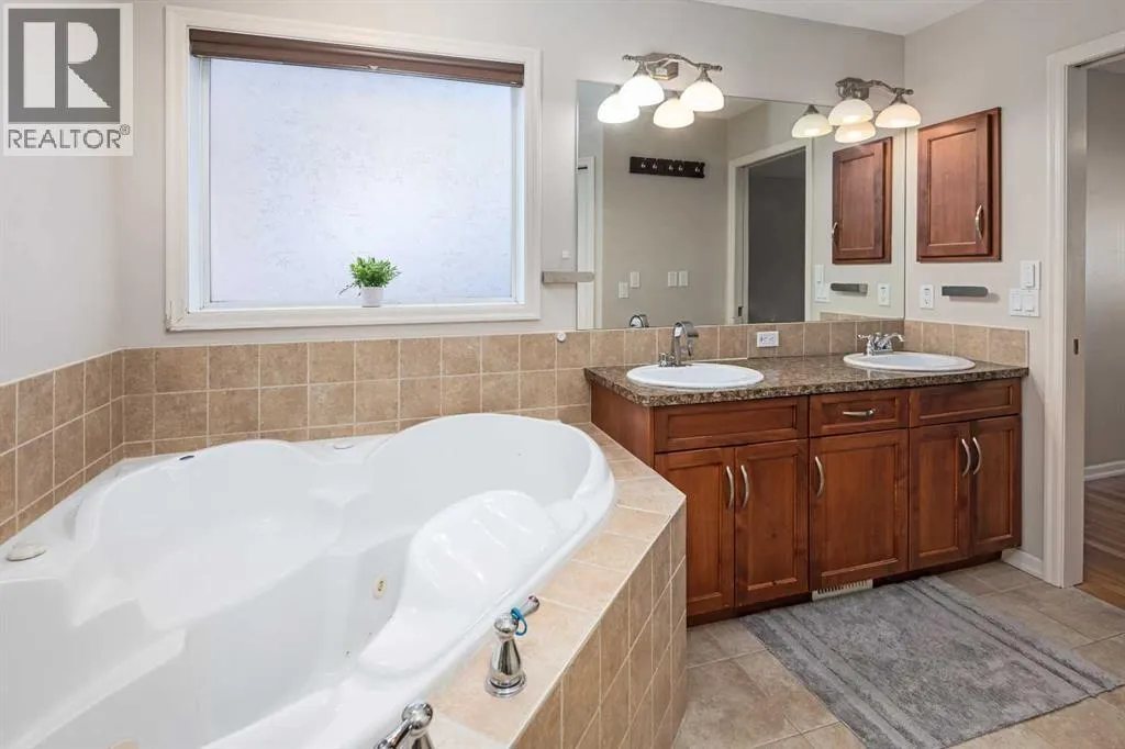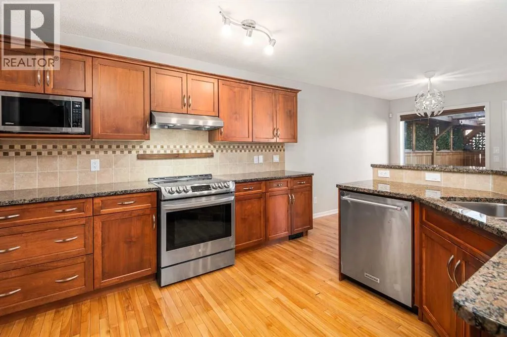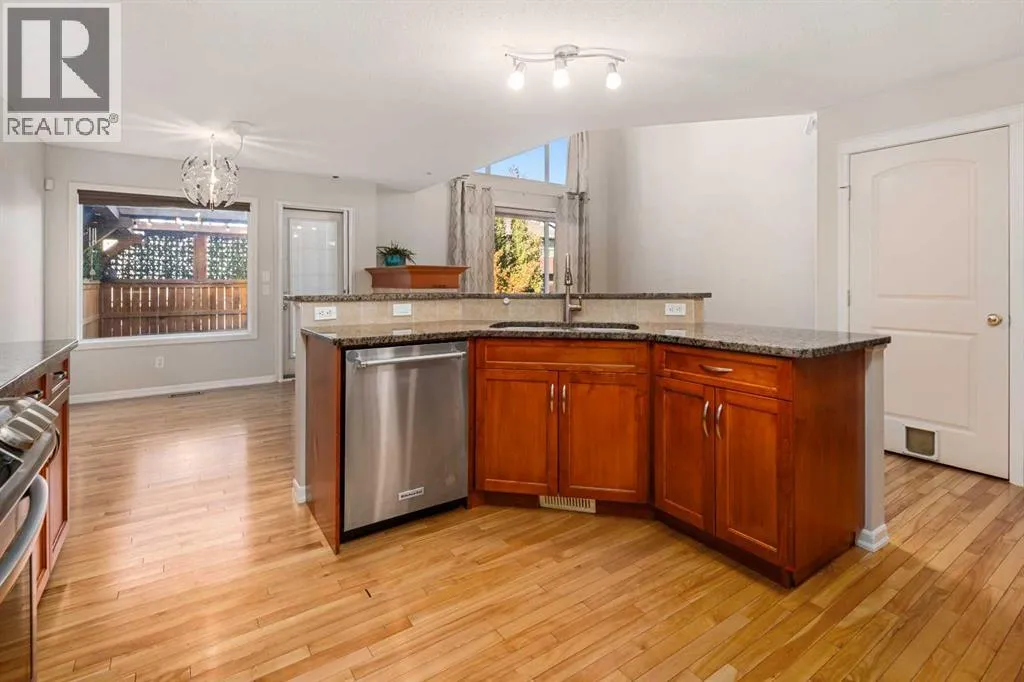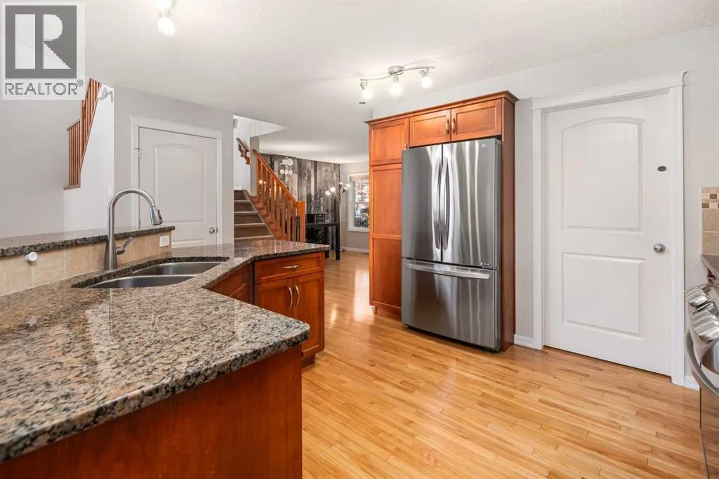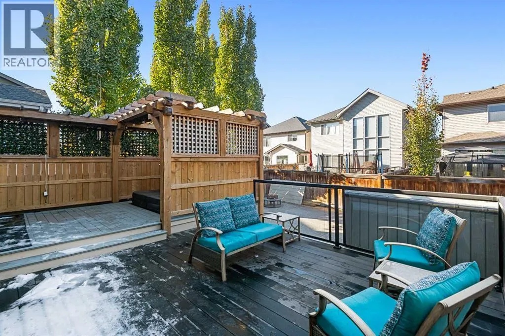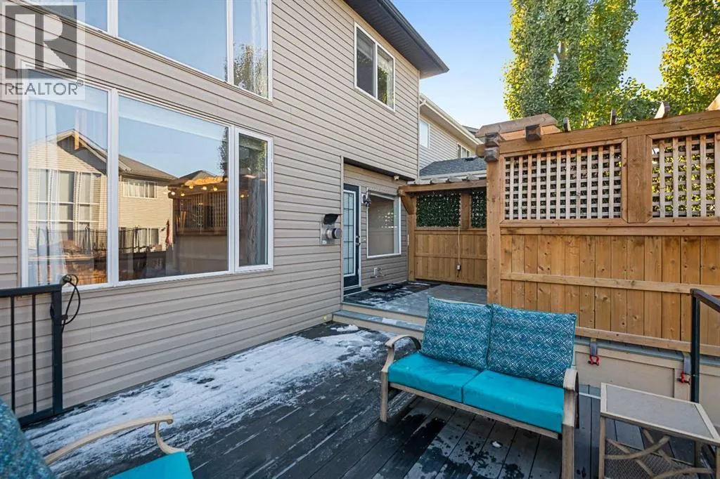 Welcome home to 38 Autumn Gardens! This spacious home has been lovingly maintained and has been freshly painted inside and out. The main floor features gleaming hardwood floors and generous sized rooms from the front flex/living room through to the family room with 3-sided fireplace and 2 storey vaulted ceiling. The kitchen is a cook's delight with plenty of cabinets, granite counter tops, stainless appliances, walk-through pantry and a central island with raised breakfast bar. The adjacent dining room shares the 3-sided fireplace and has access to the large multi tiered deck in your very private backyard. The convenient 2 piece bath and laundry/mud room complete this level. Upstairs has hardwood floors throughout and more space for your family to spread out; from the bonus room to the 3 good sized bedrooms, one of which is the primary bedroom with walk-in closet and a spa like ensuite with a jetted tub and separate shower. The basement is unfinished and awaits your design ideas to expand your living space. Your low maintenance yard features Turf grass in the front and exposed aggregate concrete patio in the back, along with your multi-tiered composite deck with glass railings. You can unwind in your outdoor oasis inspired retreat with a hot tub and pergola giving you a private setting to relax. Updates to this home include a newer furnace (within the last 2 years), hot water on demand, air conditioner and heated double attached garage, to name a few. Located on a quiet street within walking distance of schools, parks and pathways leading through the community and to the lake, plus an easy commute to South Calgary Health campus and great access to major throughfares. Don't miss out on this amazing family home! (id:27476)