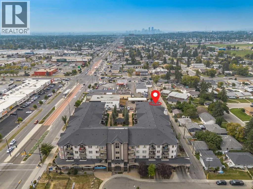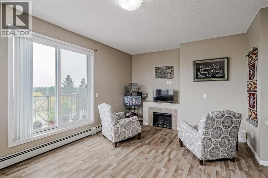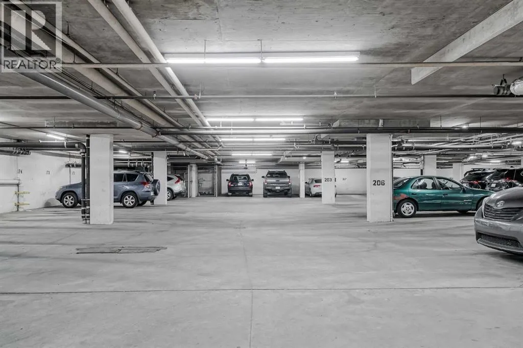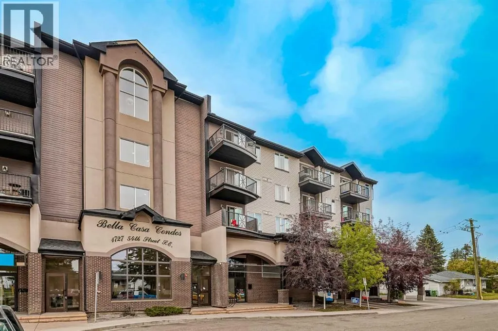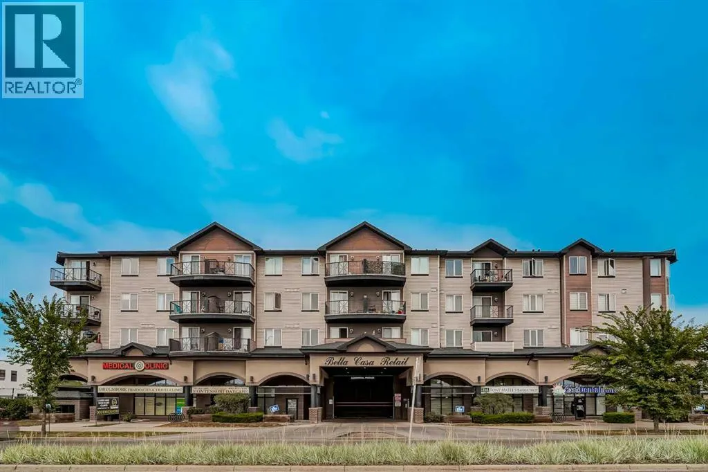 Discover the perfect blend of comfort and convenience in this bright and spacious one-bedroom condo at Bella Casa. Situated on the top floor, this corner unit offers an open layout with 9 ft. ceilings and plenty of natural light. The kitchen features ample cabinetry and a raised breakfast bar, opening into a cozy living room complete with an electric fireplace. Step outside onto your private balcony to enjoy breathtaking views of downtown Calgary and the mountains. The generous primary bedroom includes a walk-through âHis & Hersâ closet leading to a 4-piece bathroom. This home also comes with titled underground parking, plus visitor and handicapped parking for your guests. Bella Casa residents enjoy access to a central courtyard with a gazebo and BBQ area, perfect for relaxing or entertaining. The building is pet-friendly (with board approval) and ideally located close to shops, restaurants, and transit, with quick access to downtown Calgary. Condo fees conveniently cover all utilities except electricity. Available for immediate possession â donât miss this opportunity to make Bella Casa your new home. (id:27476)