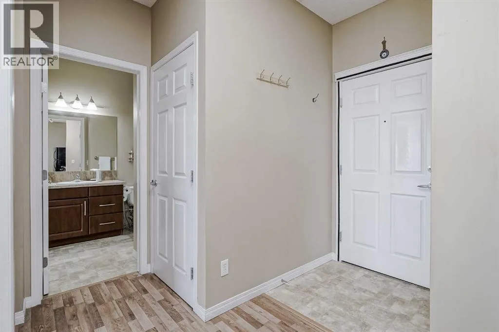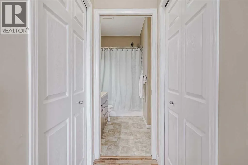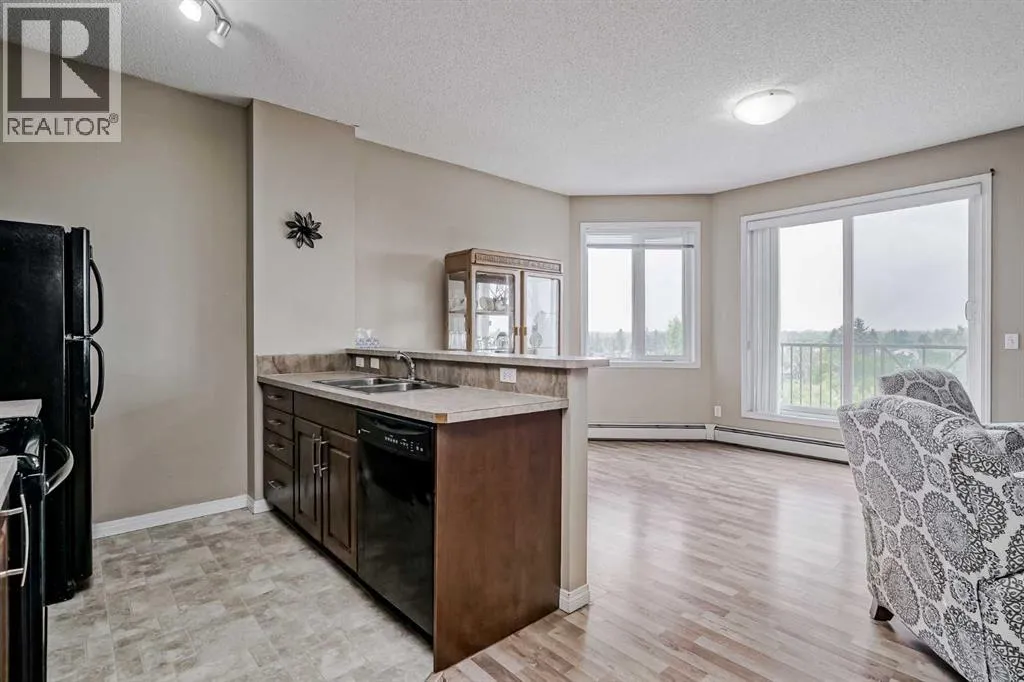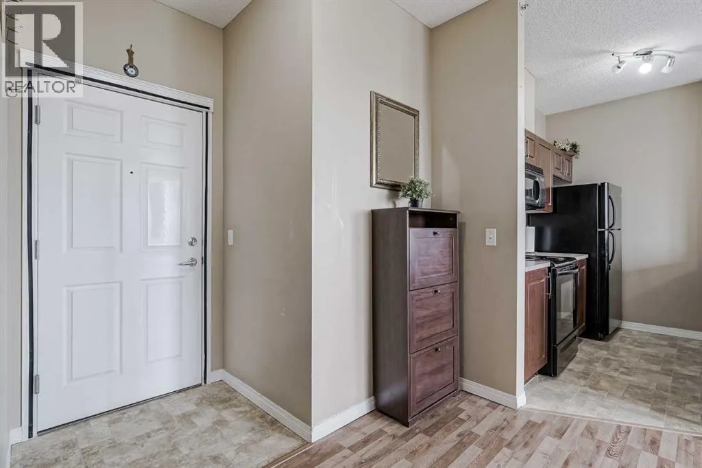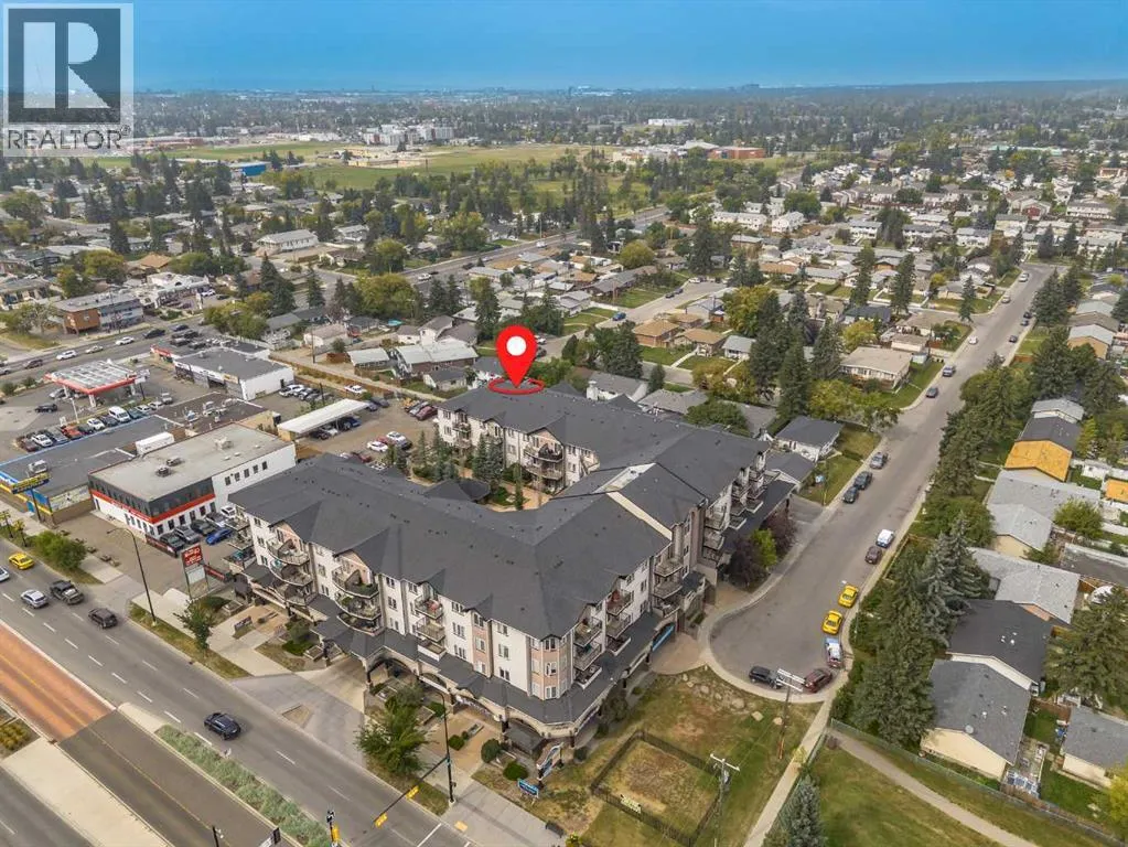 Discover the perfect blend of comfort and convenience in this bright and spacious one-bedroom condo at Bella Casa. Situated on the top floor, this corner unit offers an open layout with 9 ft. ceilings and plenty of natural light. The kitchen features ample cabinetry and a raised breakfast bar, opening into a cozy living room complete with an electric fireplace. Step outside onto your private balcony to enjoy breathtaking views of downtown Calgary and the mountains. The generous primary bedroom includes a walk-through âHis & Hersâ closet leading to a 4-piece bathroom. This home also comes with titled underground parking, plus visitor and handicapped parking for your guests. Bella Casa residents enjoy access to a central courtyard with a gazebo and BBQ area, perfect for relaxing or entertaining. The building is pet-friendly (with board approval) and ideally located close to shops, restaurants, and transit, with quick access to downtown Calgary. Condo fees conveniently cover all utilities except electricity. Available for immediate possession â donât miss this opportunity to make Bella Casa your new home. (id:27476)
