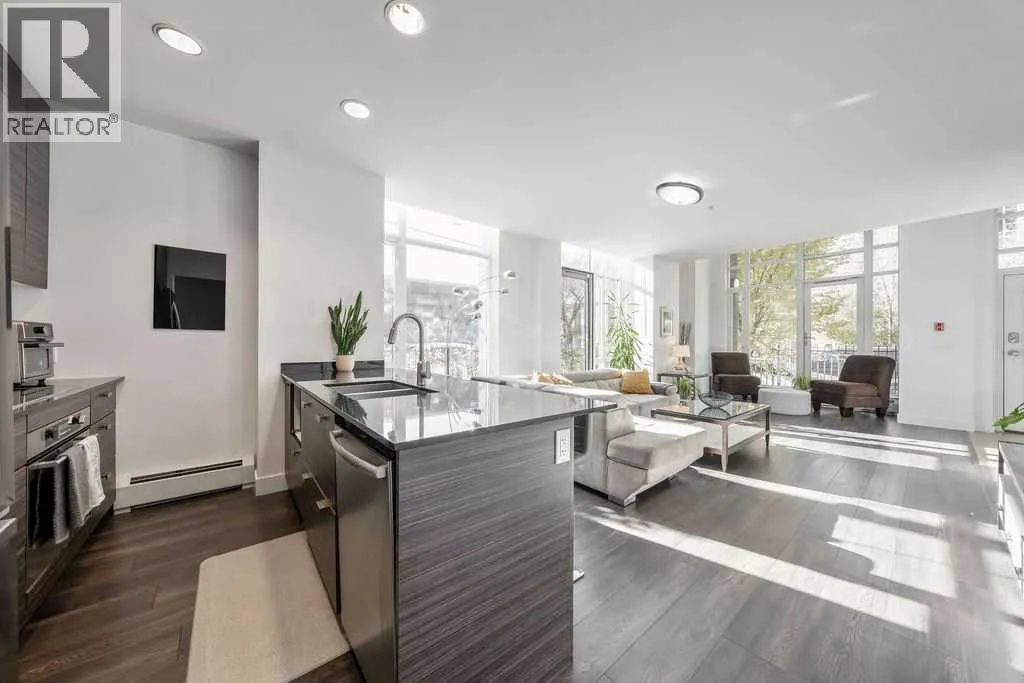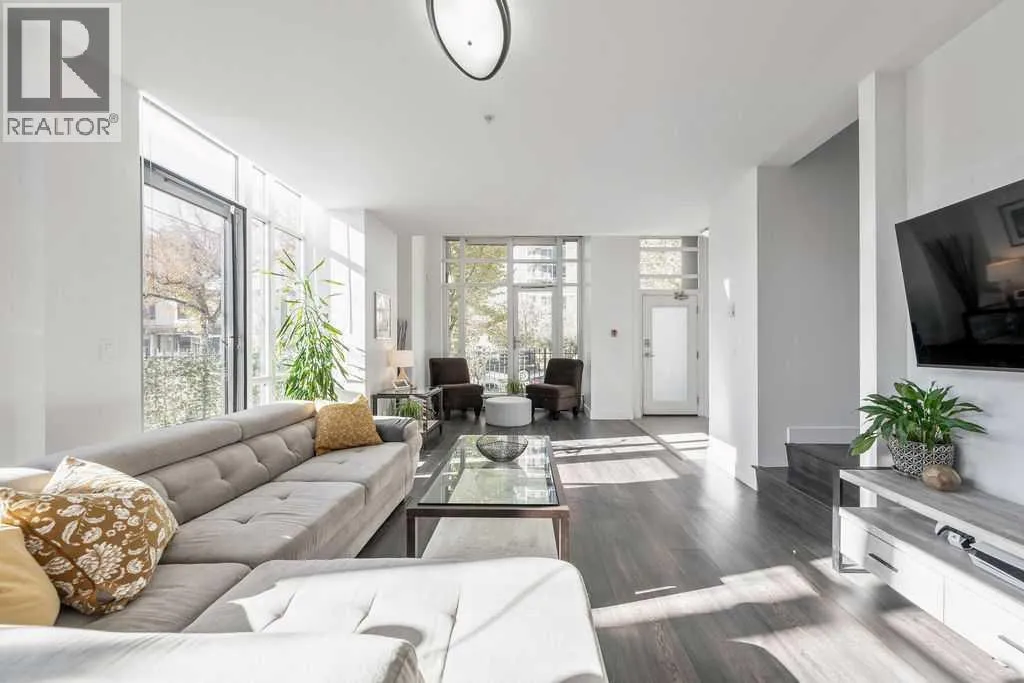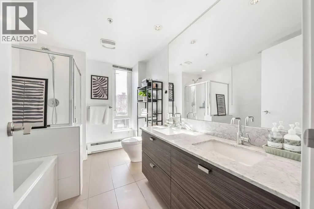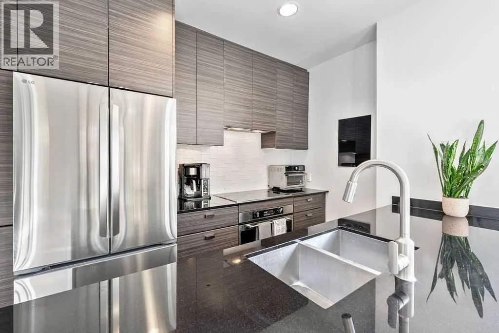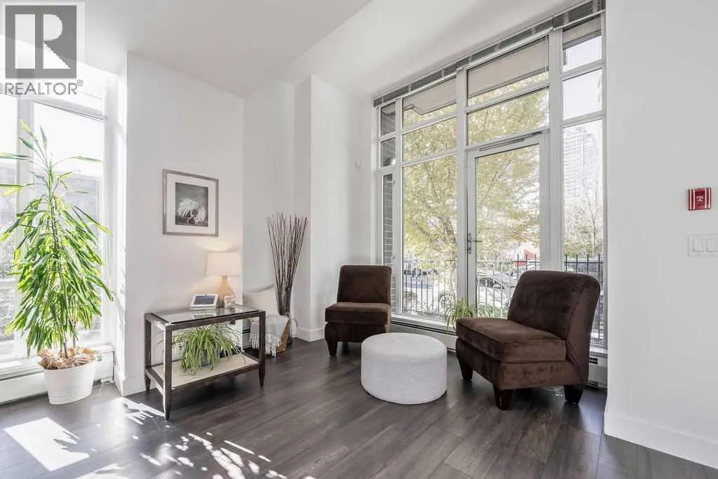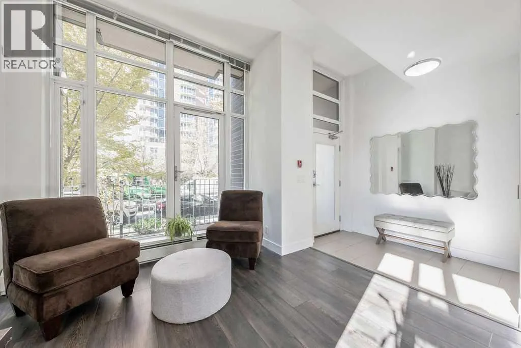 Welcome to one of the most desirable addresses in Calgaryâs Beltlineâan unbeatable location offering urban energy and modern comfort in perfect harmony. Just steps from the lively pulse of 17th Avenue and the boutique charm of Mount Royal Village, this pristine two-story townhome is designed to impress from the moment you arrive. Tucked within the highly sought-after DRAKE building, this residence enjoys the rare convenience of a private street-level entrance paired with two sun-filled southwest-facing balconiesâideal for unwinding with an evening cocktail or morning coffee from nearby Analog Coffee on 7th Street. Step inside and experience a bright, spacious open layout framed by dramatic floor-to-ceiling windows that flood the home with natural light. Towering 10â11 ft ceilings create a sense of openness and sophistication, while contemporary design details bring warmth and style throughout. The modern kitchen is a true centerpiece, boasting stainless steel appliances, sleek full-height cabinetry, an oversized island with seating for four, and an eye-catching blend of vertically stacked light tile backsplash against rich dark quartz countertops. Wide-plank flooring, crisp white walls, refined finishes, and a convenient powder room complete the main level. Upstairs, youâll find private access to the interior hallway of the building and a nearby dedicated storage space. The upper level features two inviting bedrooms, each with its own en-suiteâone a sleek 3-piece and the other a lavish 5-piece retreat. Both rooms enjoy generous south and west-facing windows, with the primary suite offering a private balcony that captures the sunshine perfectly. A discreet laundry area adds convenience to daily living. This townhome is a showpieceâimmaculately maintained and thoughtfully designed for comfort, style, and effortless downtown living. With titled underground parking and proximity to everything that defines Calgaryâs Beltline lifestyleâcafés, shops, parks, restaurants, an d nightlifeâthis home scores a perfect 10/10 for location and livability. Opportunities like this donât come often. Reach out to your favorite real estate professional today to arrange a private showing and experience this exceptional property firsthand. (id:27476)