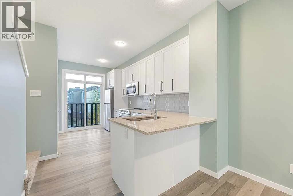 Discover this immaculately maintained, move-in ready 2-bedroom townhouse in the serene, family-friendly community of Springbank Hill, featuring a serene courtyard park right outside your front entrance. Never lived in as a home, it has been used as a stylish home office for the past 4 years and is in pristine, mint condition.The sun-drenched, south-facing front entrance opens to your exclusive-use patio overlooking a picturesque, park-like courtyard, perfect for morning coffee or leisurely afternoons. Off the main living area, the spacious north-facing balcony provides an inviting spot for relaxing or entertaining, complete with a BBQ gas line hookup.Inside, the bright and airy open-concept main floor features soaring 9-foot ceilings, beautiful wide plank flooring, a sleek modern kitchen with soft-close cabinetry, a quartz island breakfast bar, and a full stainless steel appliance package. A convenient 2-piece bathroom completes the main level.Upstairs, two generously sized bedrooms are separated for privacy, each featuring its own 3-piece ensuite bathroom with a walk-in glass shower â perfect for comfort and convenience. Laundry is ideally located on the same level.Additional highlights include a tandem double garage for 2 vehicles and low condo fees. Ideal for self-living or as a premium investment property, this exquisite townhouse is located near top-rated schools, Westside Recreation Centre, 69th Street LRT, shopping, and scenic pathways, offering a rare combination of style, comfort, and convenience in southwest Calgary. (id:27476)