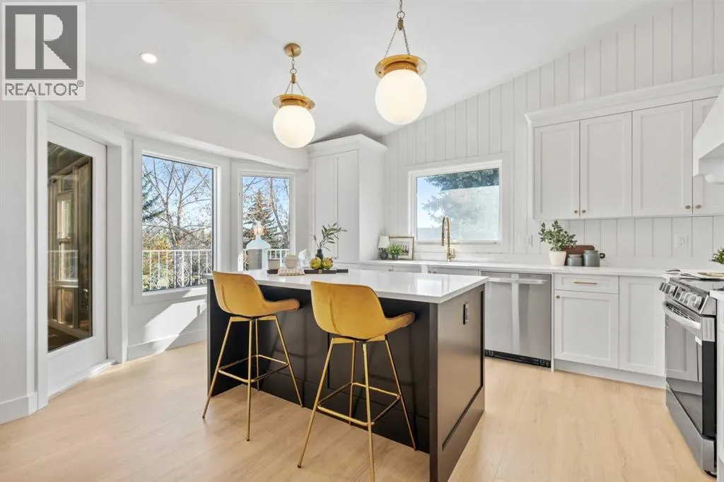 Welcome to 824 Sierra Morena Place SW, a fresh, bright, and inviting home that perfectly blends modern elegance with warmth and comfort. Renovated from top to bottom, this stunning property offers over 3,300 sq. ft. of finished living space in one of Signal Hillâs most desirable, family-friendly cul-de-sacs â backing directly onto a peaceful green space and walking paths.Step inside to find custom lighting and vaulted ceilings that flood the home with natural light. The brand-new kitchen features a large quartz island, new stainless-steel appliances (including refrigerator, microwave, oven, stove, hood fan, dishwasher, and wine fridge), and soft-close cabinetry with upgraded hardware. The front living room, cozy family room, and sunroom provide plenty of space for family and entertaining alike.The primary suite is a true retreat with a feature ceiling, custom finishing accents, and a 5-piece ensuite boasting new fixtures, sinks, and quartz counters. The ensuite connects conveniently to a walk-in closet featuring private laundry, adding both comfort and function. A second bedroom and 4-piece bathroom allow for multi-purpose use.Downstairs, discover a spacious recreation and games area with a new wet bar, perfect for entertaining. The two newly developed bedrooms feature walk-in closets and enlarged windows for light and comfort. The 3-piece hall bath can function as an ensuite for one of the bedrooms. Additional lower-level highlights include laundry, storage room and access to a covered patio/workspace beneath the east-facing balcony â ideal for year-round projects or relaxation.Outside, enjoy a low-maintenance front yard, fresh sod in the backyard, and a mix of fruit trees, vegetable gardens, and lawn â perfect for outdoor living. The east-facing deck and sunroom offer the perfect space for morning coffee or three-season lounging.This home also features new PEX plumbing lines, upgraded electrical, some new windows, an insulated double attached garage, and thou ghtful custom touches like built-in storage and mudroom bench seating.Unbeatable location: walk to nearby play parks, green spaces, transit on Sierra Morena Blvd, and shopping at Sierra Square, Signal Hill Centre, and Westhills Towne Centre. Quick access to Richmond Road, 68th Street, Stoney Trail, and Glenmore Trail makes commuting easy.Whether youâre looking for a family home or an executive retreat for entertaining, this home delivers modern design, thoughtful upgrades, and timeless comfort â all in a serene Signal Hill setting. (id:27476)