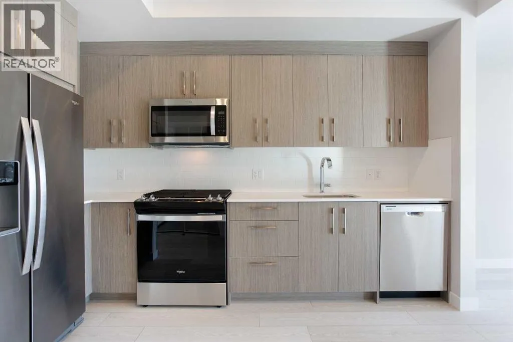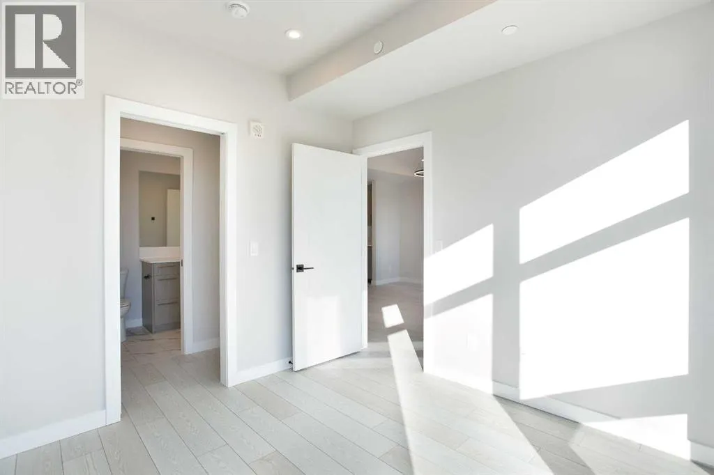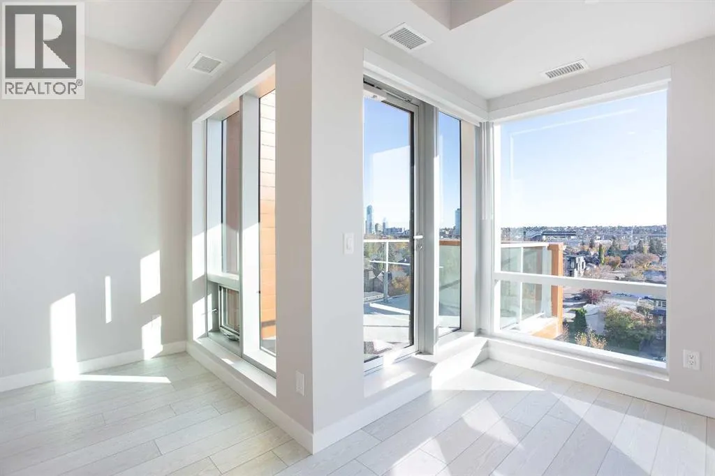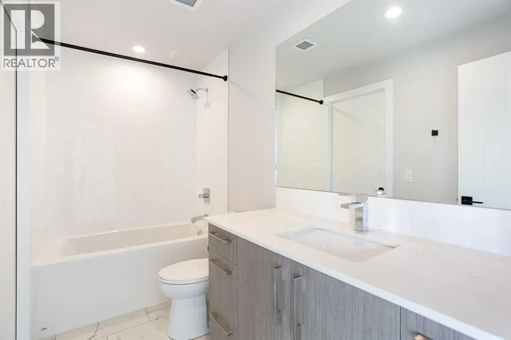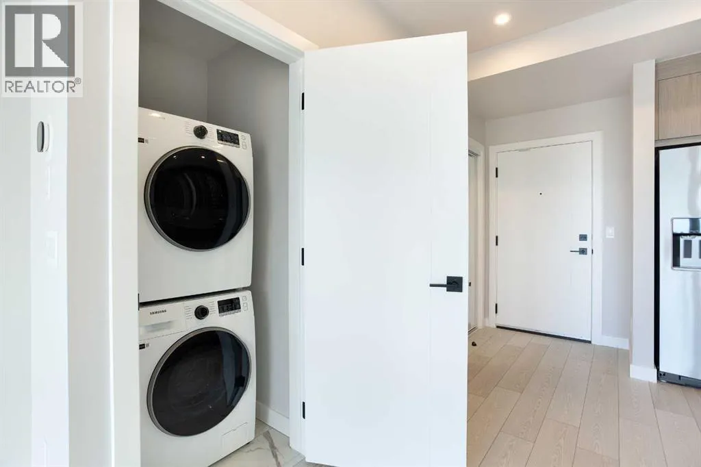 Experience the perfect blend of modern design located just minutes from biking downtown to work, Trumanâs newest boutique concrete residence, ideally situated in the heart of Kensington, a central gem community in Calgary. Just steps from your door, youâll find Kensingtonâs lively cafés, boutique shops, and top-rated restaurants, with the Bow River pathways.This brand-new 7th-floor unit offers 2 bedrooms and 1 bathroom in a spacious, well-designed layout with a South facing balcony, catching each sunset. The open-concept living area flows seamlessly into a chef-inspired kitchen, featuring sleek quartz countertops and stainless steel appliances. Both bedrooms provide versatile living options, whether you need a home office, guest suite, or a shared space. The elegant four-piece bathroom is finished with high-end fixtures and thoughtful touches throughout.Enjoy your own private covered balcony with scenic views and a gas hookup for easy outdoor grilling. The unit also includes a titled underground parking stall along with a secure storage area, dedicated workplace station area and gym and secure underground bike storage. (id:27476)