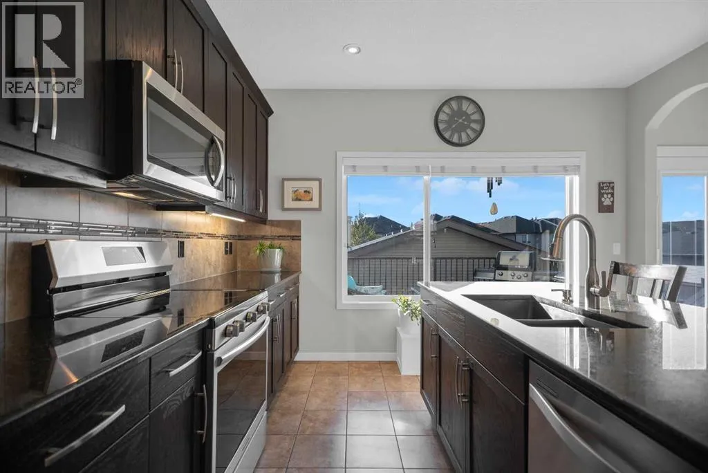 HOME SWEET HOME! Welcome to this outstanding, UPGRADED 2 storey family home situated on a spacious (30' x 115') lot in the extremely sought-after SE community of Cranston on a quiet, family-friendly cul-de-sac. This contemporary, immaculately maintained home offers 3 bedrooms, 2.5 bathrooms, 1,485 stylish SQFT of above grade living space, a MASSIVE 22 x 32â GARAGE with a workshop and a freshly, beautifully manicured yard with a dog run. Custom-built by Morrison Homes, this home features pride of ownership throughout this original owner home. The main floor offers the perfect blend of modern living with luxurious laminate flooring, 9 foot ceilings, hunter douglas blind package and a seamless open concept floor plan with a 2 piece vanity bathroom, spacious foyer, formal dining area with a custom built-in dining hutch, sun-drenched living room with oversized windows and the gourmet chefâs kitchen complete with newer appliances (Microwave. Electric stove replaced in 2024), gleaming granite countertops and a granite island with a breakfast bar, convenient pantry and oversized 42â cabinetry. Heading upstairs you will find 2 generous sized bedrooms, each with STUNNING MOUNTAIN VIEWS, a wonderful 4 piece bathroom and an upstairs laundry room with a 2024 washer/dryer. Completing this floor is the extraordinary primary retreat with a spa-like 4 piece ensuite bathroom with a deep soaker tub, a private 48" shower with a seat and a walk-in closet for your convenience. Downstairs, you will find your unfinished basement with a ton of potential to add value with future development as there are 2 egress windows and a bathroom rough-in with shower/tub insert ready to be installed. Outside, is one of your major highlights, the massive natural gas heated and insulated double to triple detached garage with 40 amp, 220V power, a dream workshop with a built in cabinets and extra workspace. Your fully fenced backyard provides you with your own private oasis with a lean-to greenhouse and a large deck with a BBQ gas line thatâs perfect for entertaining. You canât beat this location, close to Century Hall with exclusive amenities such as a hockey rink, park, seasonal markets and fitness programs, golf courses, pathways and the ravine, South Health Campus and YMCA, reputable schools, shopping, public transportation and major roadways with easy access to Deerfoot and Stoney Trail. Book your private viewing of this GEM today! (id:27476)