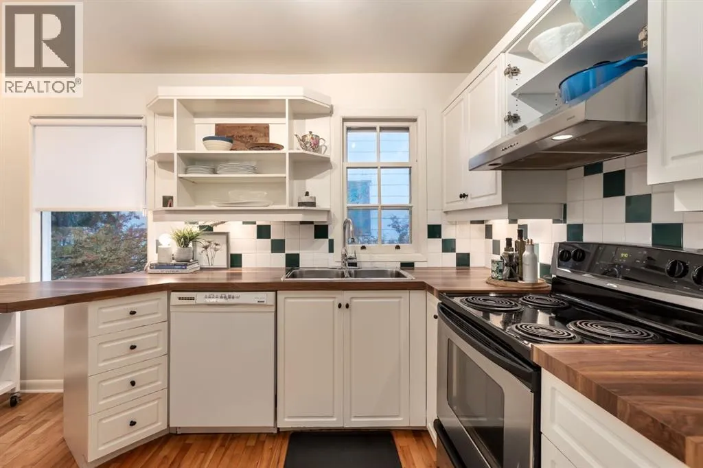 Full of character, this well-maintained and thoughtfully upgraded Mount Pleasant sits on a quiet 42â x 120â R-CG Lot! As you walk up, the repainted siding and a yellow front door immediately welcomes you. Inside, the spacious living room welcomes you with a picturesque front window and gorgeous original hardwood that speak to the homeâs timeless character. Arched doorways enhance the charm as you transition into a sunlit, south-facing dining room â a warm and inviting space that made for gathering. The beautifully updated kitchen is equally delightful, featuring rich wood countertops contrasted beautifully against classic white cabinetry and a tiled backsplash, creating a perfect blend of warmth and style. The main floor bathroom is fully renovated, thoughtfully appointed with built-ins, with an elegant and timeless look.Upstairs, youâll find two generous bedrooms, each tucked beneath the slope of the roofline â creating whimsical vaulted ceilings and cozy architectural character. From the rear entry, the stairs lead to a fully developed basement, offering a bright and renovated recreation area complete with an electric fireplace â equal parts stylish and inviting. A large additional bedroom, second bathroom, and laundry space provide excellent flexibility and storage. Fresh paint, updated details, and preserved original elements blend seamlessly, adding personality in all the right places.Outside, the south-facing backyard is a private inner-city oasis â with a sprawling lawn, patio, fire pit, mature shrubs, and fruit trees creating a serene and secluded retreat. The built-in garden beds, play house, and a single detached garage off the alley complete this exceptional outdoor lifestyle.Located in one of Calgaryâs most beloved communities, this home is just a few blocks from Confederation Park, with quick access to the local outdoor rink, Arts Centre, playgrounds, schools, and major commuter routes off 4th streets Centre Street and 16th Avenue into downtow n. With nearby golf, Nose Hill Park, and endless amenities at your fingertips â this one truly has it all. Book your private showing today (id:27476)