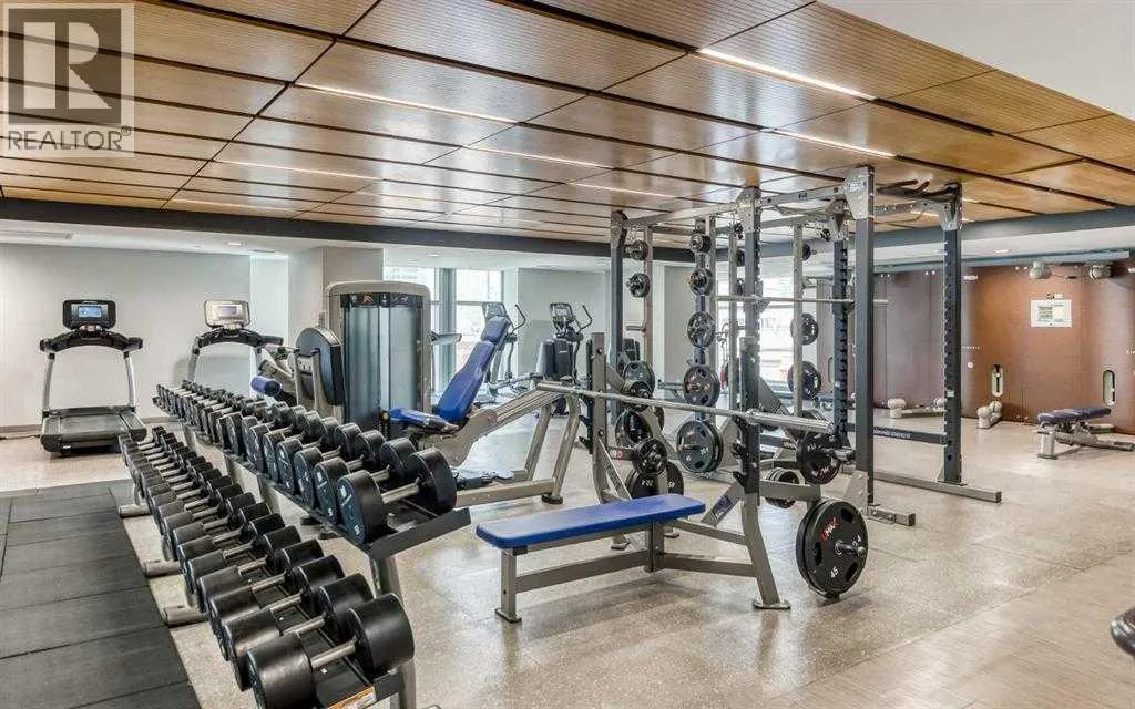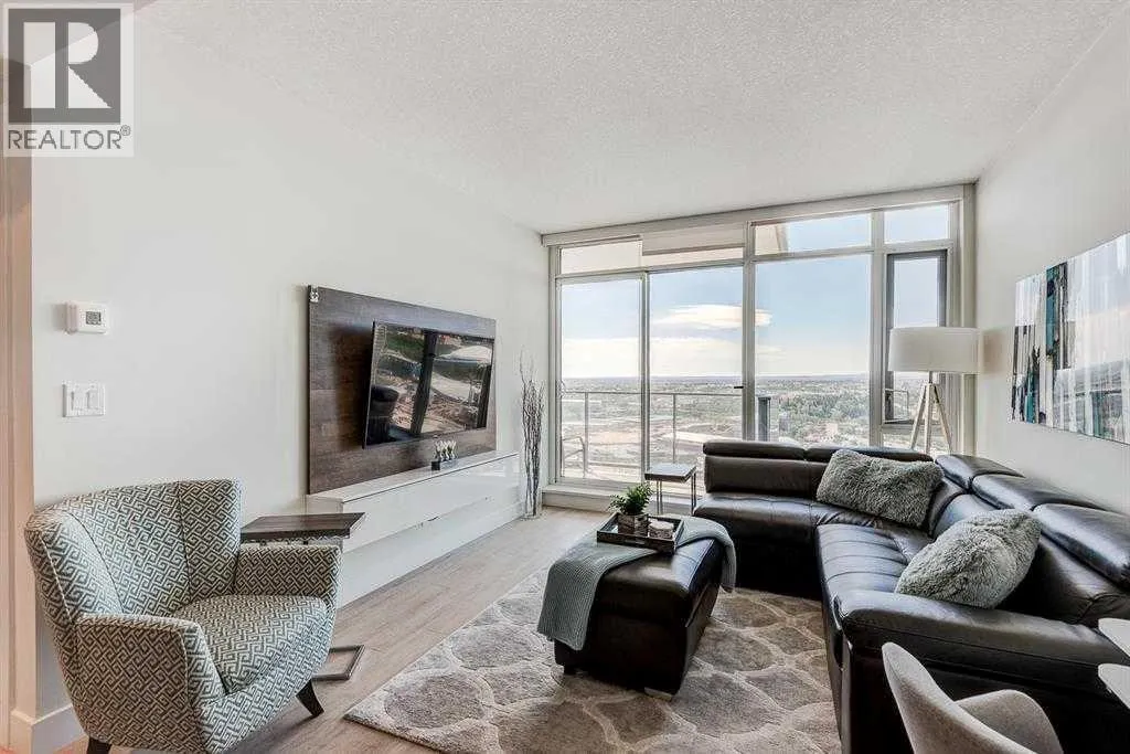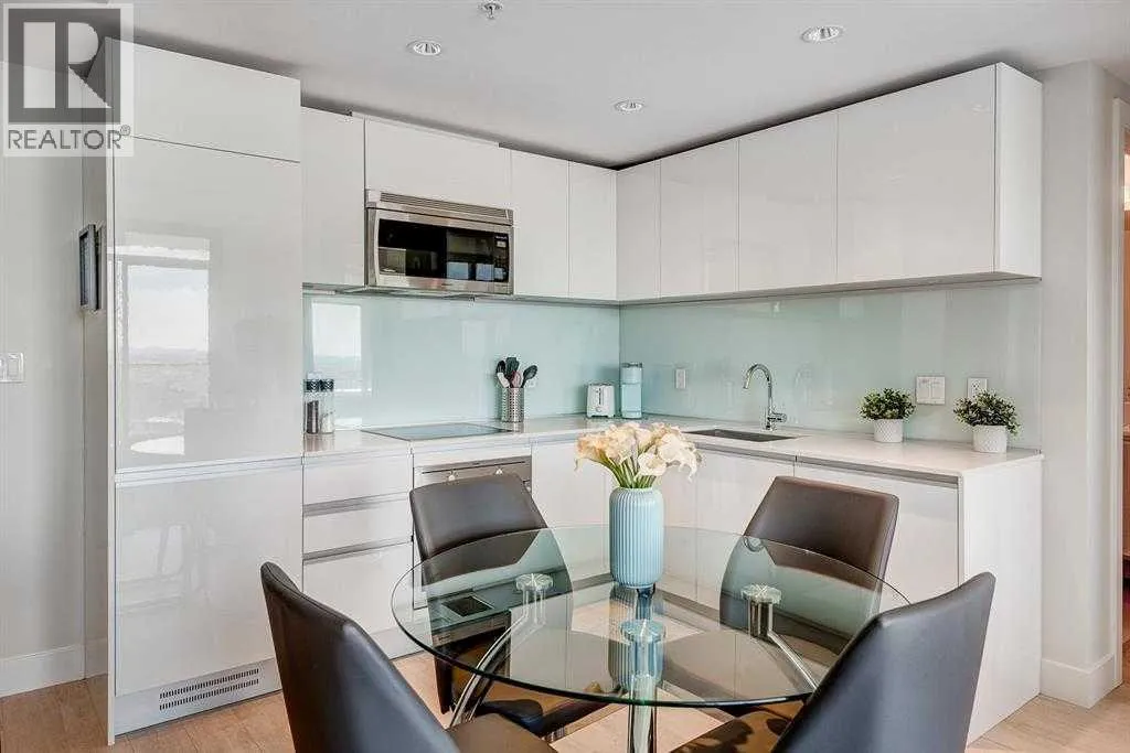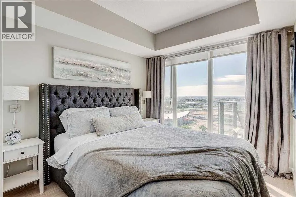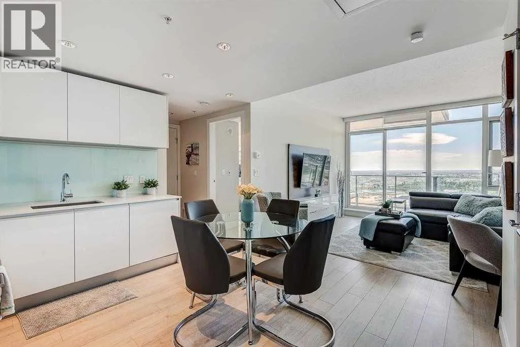 Spectacular South Views in this 1-Bedroom Layout . Luxury Living in The Guardian.Welcome to your sky-high sanctuary in The GuardianâCalgaryâs tallest residential tower. This stunning one-bedroom condo boasts south unobstructed, panoramic views of the Rocky Mountains, Calgary skyline, and breathtaking sunsets through floor-to-ceiling west-facing windows.Offering the largest 1-bedroom floor plan in the building, this unit includes a built-in desk and bookshelf, kitchen island, and a spacious 110 sq ft balconyâperfect for working from home or entertaining guests.The modern kitchen features sleek cabinetry, integrated appliances, and undercabinet lighting, creating a clean, contemporary aesthetic. Wake up to sunrises over the Calgary Tower, and enjoy the comfort of central A/C during summer months.Enjoy five-star amenities including:j24-hour concierge service, Secure titled underground parking. Fully equipped fitness centre, Workshop, Party room, Assigned storage lockerWith a Walk Score of 94, you're steps from everything: Stampede LRT Station, Pixel Park, Sunterra Market, Music Mile & East Village Restaurants, cafés, and bike paths, The Elbow River and Stampede GroundsWhether you're a working professional, an investor, or seeking a vibrant urban lifestyle, this home checks every box. Come book your private showing today! (id:27476)