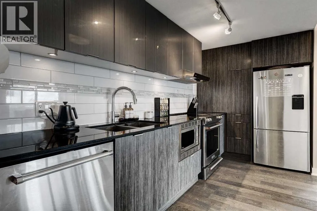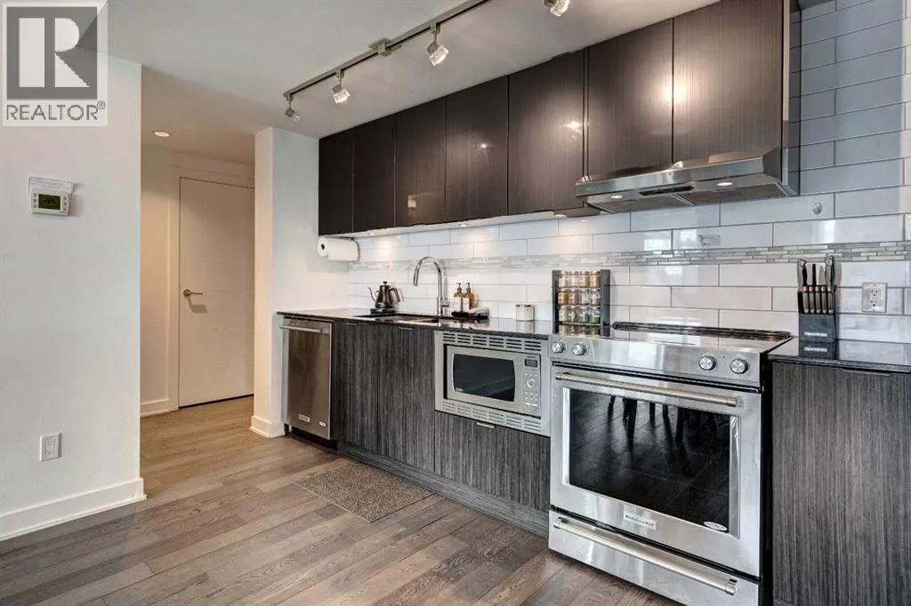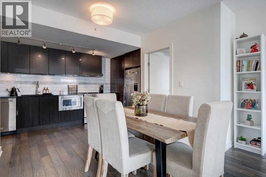 Welcome to Vogue, where luxurious downtown living meets convenience and comfort. This beautiful 2 bed/2bath unit offers a large living room with floor to ceiling windows to allow lots of natural light to beam in with hardwood floors. You will love your beautiful modern kitchen with beautiful cabinets, stainless steel appliances and quartz countertops. Enjoy your lifestyle with modern amenities and breathtaking VIEWS. This unit has been curated to offer the best of functionality, style, and efficiency. The split bedroom layout with 2 full baths allows for privacy while maintaining a light filled open space. In-suite laundry, ample closet space, and a balcony completes the package, while the titled underground parking adds convenience and security. Additionally, residents and guests alike have access to a lot of amenities, including a rooftop sky gym, party room, yoga room, games room, boardroom/business center, and a secure bike room with a pet washing station. central A/C as well as stunning mountain views from the 36th floor Sky lounge. Visitor parking and concierge service 7 days a week ensures a seamless and enjoyable living experience. Situated just a block away from the C-Train station, commuting and exploring the city is effortless. You'll find yourself surrounded by an array of shops, restaurants, and entertainment options. also Bow River Pathway is only a few blocks away. Whether you're looking for luxurious living spaces, or breathtaking views, Vogue is your best choice. (id:27476)