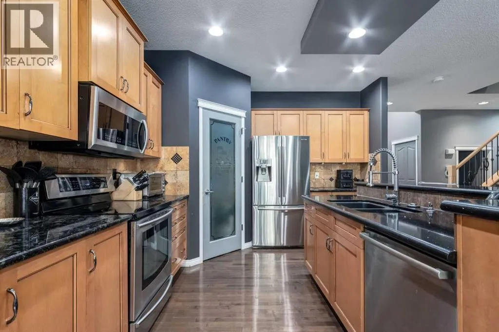 Welcome to this stunning custom-built Jayman 2-storey home located in the desirable community of Lake Chaparral showcasing exceptional design, quality, and comfort throughout. The open and modern floor plan features 9â ceilings, massive windows that flood the space with natural light, and a versatile flex roomâperfect for a home office or study. The gourmet kitchen is a chefâs dream with granite countertops, stainless steel appliances, a corner pantry, and a massive island with an undermount sinkâideal for meal prep and entertaining. Upstairs, the spacious primary suite offers a spa-like 5-piece ensuite and walk-in closet. Two additional generous bedrooms share a beautifully designed 5-piece bathroom with dual sinksâperfect for a growing family. A large bonus room completes the upper level, offering the perfect space for relaxing movie nights or family time. The developed basement adds even more living space with a 4th bedroom, recreation room, new plush carpet and plenty of storage. Step outside to your private backyard oasis featuring multiple outdoor entertaining areas including a deck, patio, firepit, and plenty of green space for kids and pets to play. This home exudes outstanding curb appeal with its stone and stucco exterior and is loaded with upgrades including air conditioning, a sprinkler system, Colorado Vnet AV system, built-in speakers, and more. Truly a must-see propertyâbook your private viewing today! (id:27476)