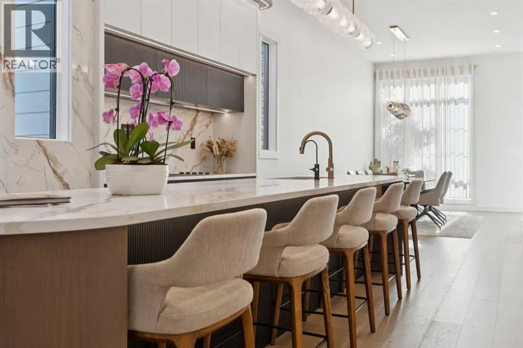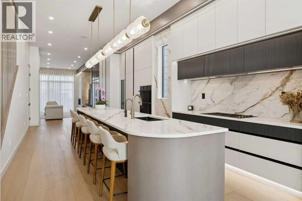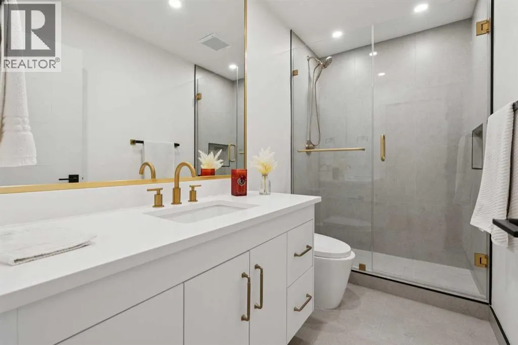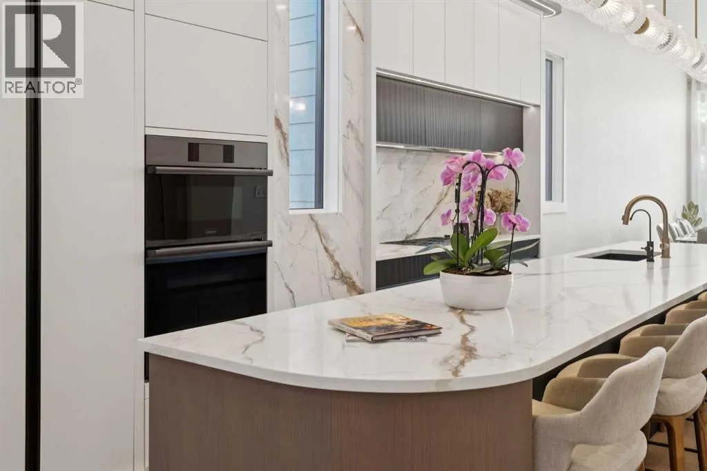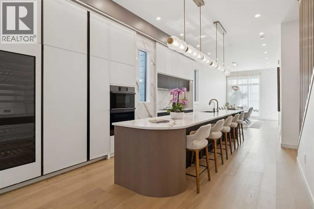 Modern Luxury Meets Urban Living in InglewoodWelcome to this stunning brand-new detached home in one of Calgaryâs most sought-after inner-city communities â Inglewood. Thoughtfully designed and originally built by the owner for his own family, this residence showcases an extraordinary level of craftsmanship and detail rarely found in new construction.Step inside to a bright, open-concept main floor featuring 11-foot ceilings, large-plank white oak engineered hardwood, and floor-to-ceiling custom storage. The inviting front patio sets the tone for urban living, perfect for morning coffee or evening conversation. The chef-inspired kitchen is an entertainerâs dream, complete with an oversized island, Fisher & Paykel built-in refrigerator, Cove/Sub-Zero dishwasher, 6-foot wine fridge, and elegant glass-enclosed lighted shelving. A cozy gas fireplace, natural stone powder room with smart bidet toilet, and functional side entrance mudroom with built-in seating complete the main floor.Upstairs, natural light floods the space through expansive windows. A flex/bonus area offers versatility for an office or reading nook. The primary retreat is a true sanctuary featuring a freestanding soaker tub, dual vanities, glass-enclosed steam shower with heated floors, and a custom walk-in closet with floor-to-ceiling built-ins, lighted glass drawers, and cupboards. Enjoy breathtaking views of the Bow River and nearby park â a rare find in urban living. Two additional bedrooms, each with their own 3-piece ensuite and custom walk-in closets, provide exceptional comfort and privacy. The laundry room with extra storage and sink adds convenience to the upper level.The fully developed basement offers incredible flexibility with two bedrooms (one with a private ensuite), an additional 3-piece bath, full kitchen with Samsung stainless steel appliances, separate laundry, and roughed-in in-floor heating. While currently set up as an illegal suite, it includes a dedicated side entrance and al l the essentials should a future owner wish to pursue legal secondary suite status.Outside, the backyard oasis features a large vinyl deck, low-maintenance landscaping with exposed concrete, and a detached double garage equipped with a dedicated electrical panel and dual overhead doors â ideal for entertaining or practical use.Additional features include a high-end New York lighting package, $9,000 water softener and filtration system, and separate Nu-Air HRV systems for both upper and lower levels.Ideally located in vibrant Inglewood, youâll enjoy easy access to parks, pathways, shops, restaurants, and downtown Calgary â all while embracing the best of inner-city living. (id:27476)